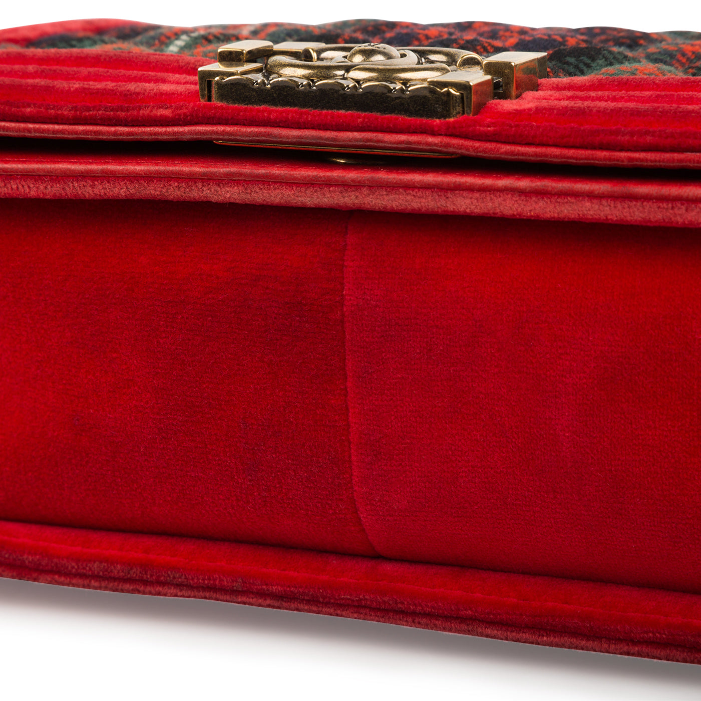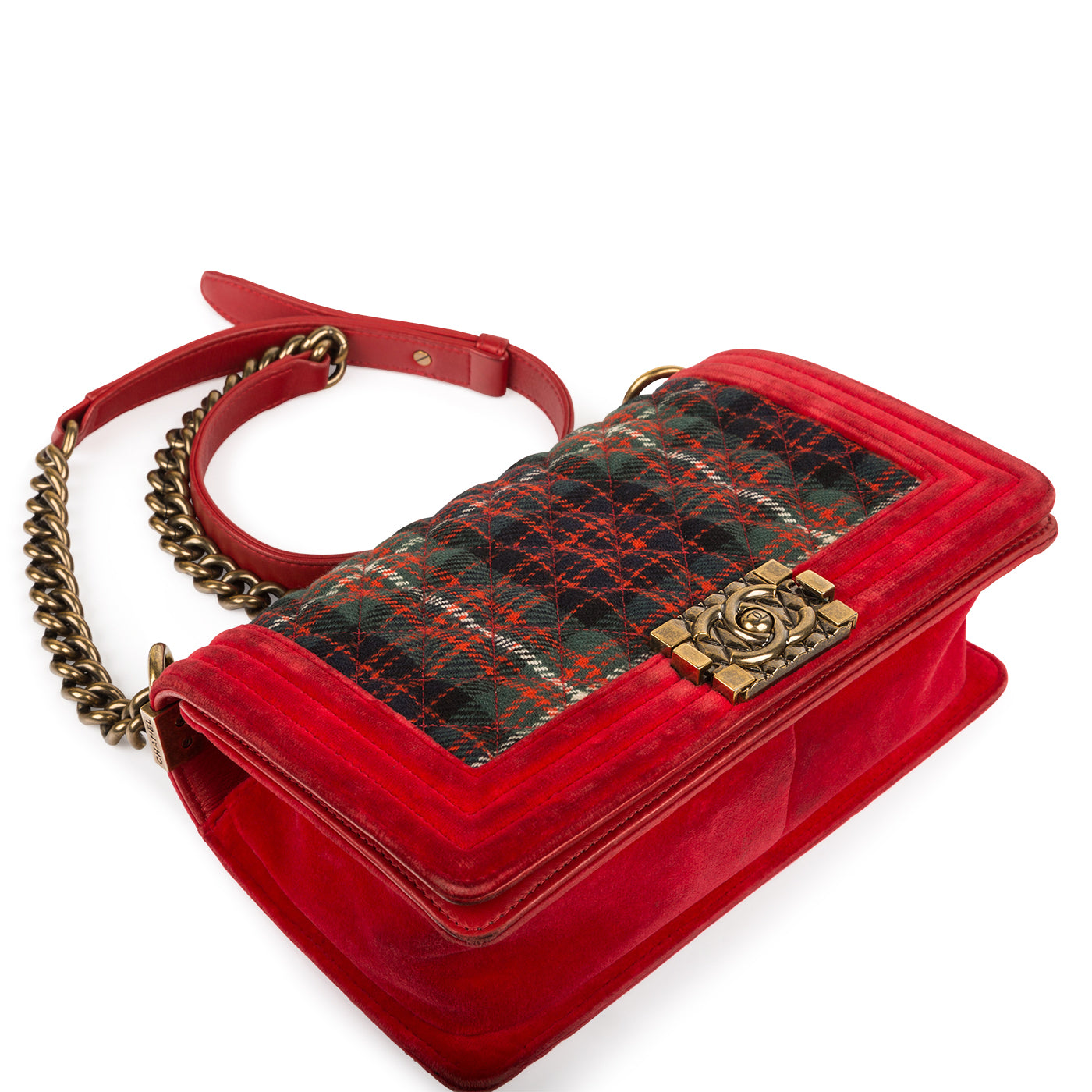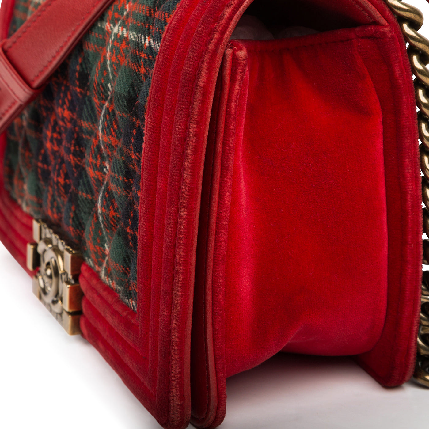 Karl Lagerfield’s vision of the renowned Boy Bag takes a beautiful turn with the Chanel Paris-Edinburgh Tartan Boy Bag. Crafted from magnificent velvet and quilted plaid tweed, the handbag is nothing short of ravishing. With its tartan pattern and antique gold hardware, the Chanel Tartan Boy Bag oozes decadence and astonishing charm. Its flap opens up to the Boy Bag’s characteristic compact interior paired with a slip pocket. Perfect for both the day and night, this Boy Bag is worn best when paired with elegant attire such as long-flowing dresses and trousers.