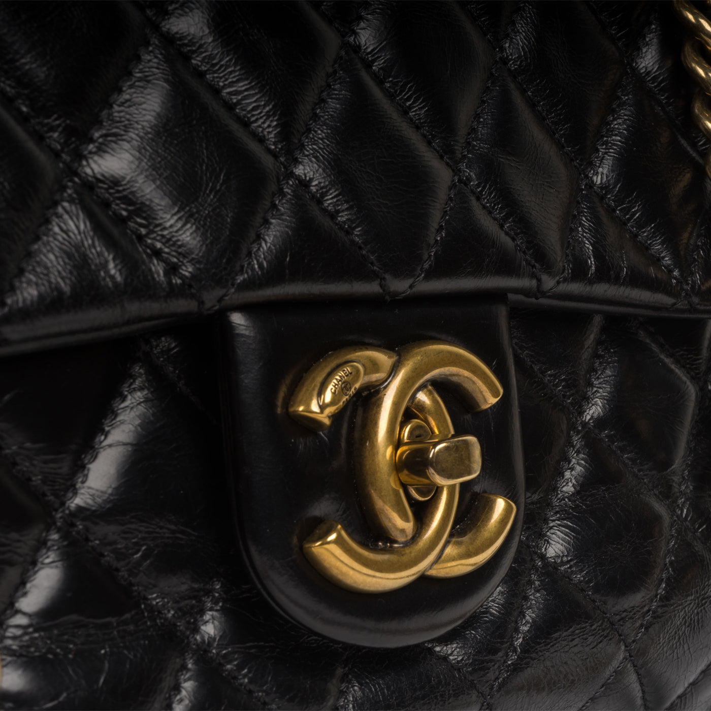 Crafted from aged goatskin leather, this stunning bag from Chanel is the perfect balance between fashion and function, style and practicality, and youthfulness and sophistication. Designed for hand held use or for over-the-shoulder wear with the additional chain straps, this Chanel is the perfect compliment to any outfit you may have in your wardrobe. Whether you're dressing it down with a basic pair of jeans and a tee, or dressing it up with a smart business suit for work, this gorgeous Chanel is the ideal companion no matter the occasion. Sleek, stylish and sophisticated this gorgeous Chanel is a timeless classic that won't go out of style. A bag you won't fall out of love with, this piece is a well-worthy investment that you wont regret.
