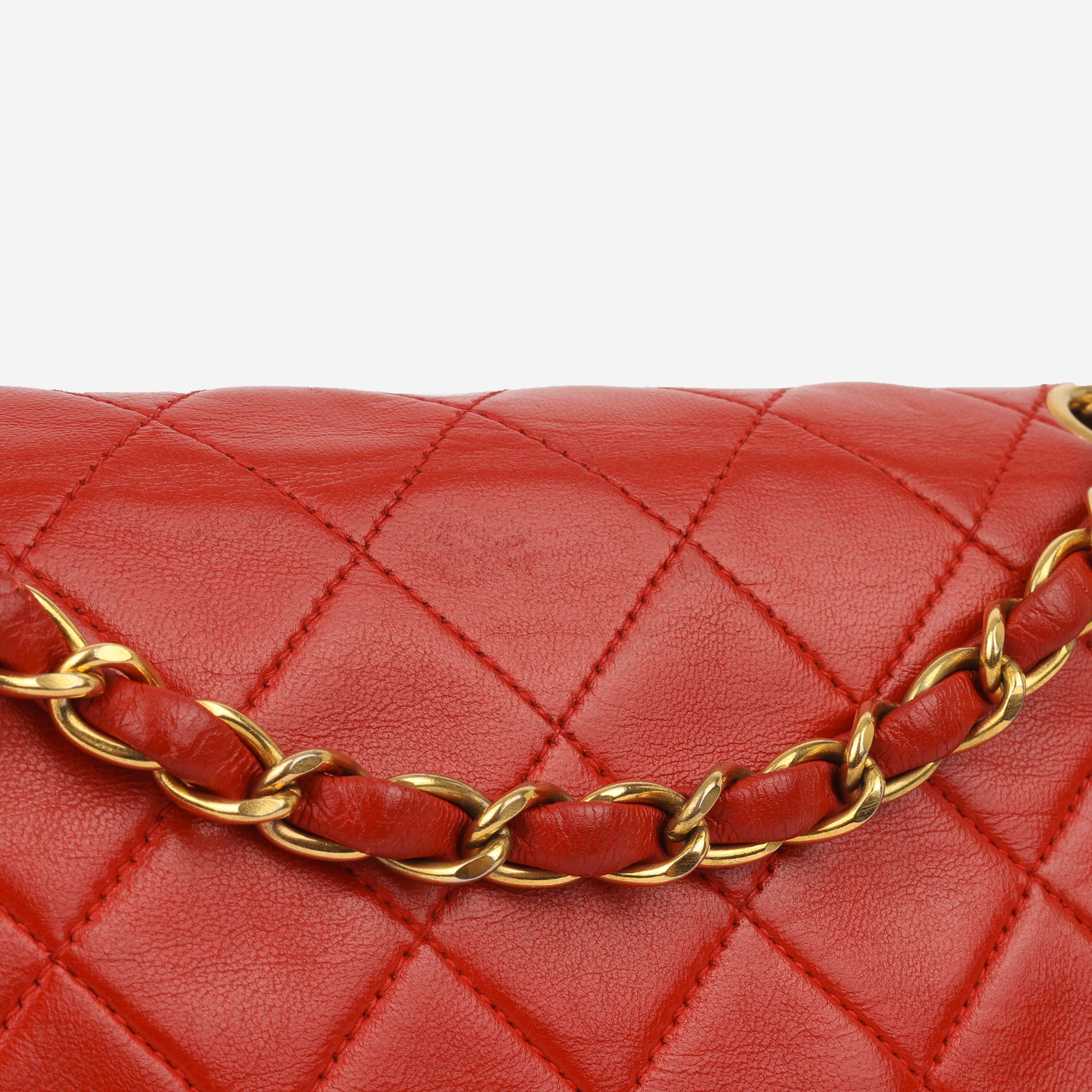 Crafted from Chanel's signature smooth lambskin leather and featuring an interwoven chain / leather shoulder strap, double flap, and gold plated hardware, this classic bag is the perfect balance between fashion and function. Practical as well as stylish, this bag is a timeless piece that will remain in your wardrobe forever. The ideal accessory to take you from day to night, there's not much this bag won't go with.