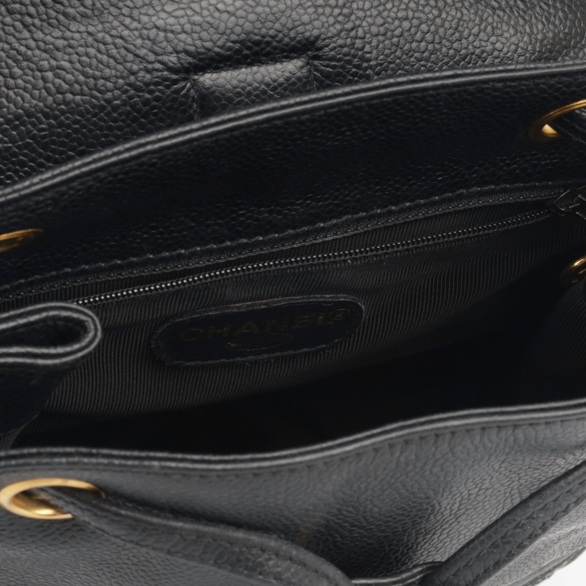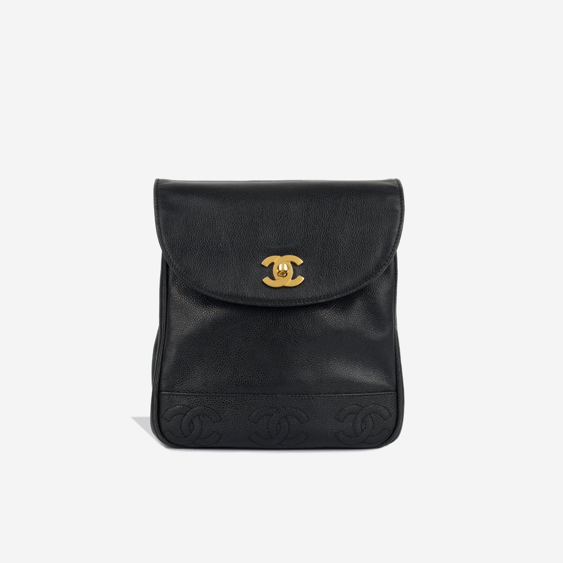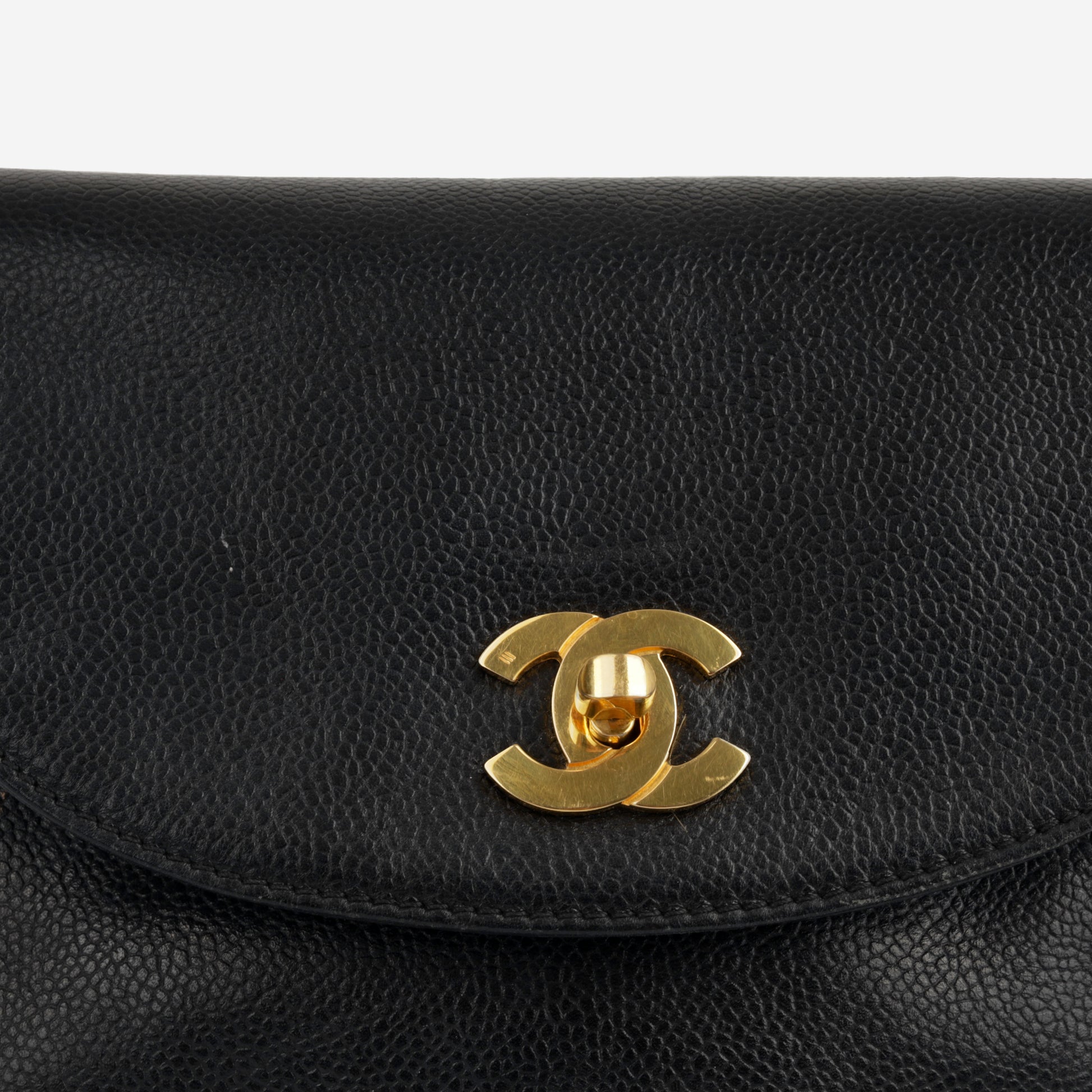 Carefully created in black caviar leather and featuring gold plated hardware. This gorgeous vintage piece is the perfect balance between fashion and function. Spacious enough to hold all your every day necessities comfortably inside.