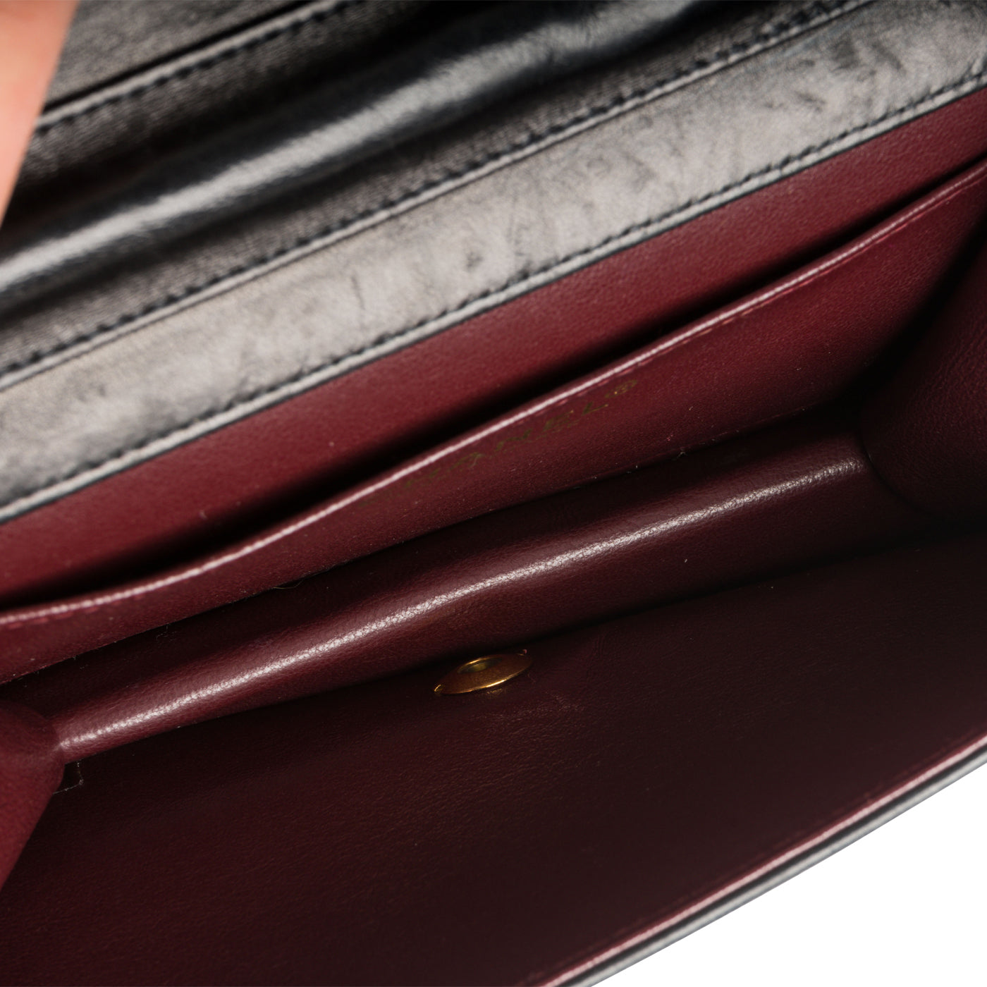 - Chanel embossed leather logo