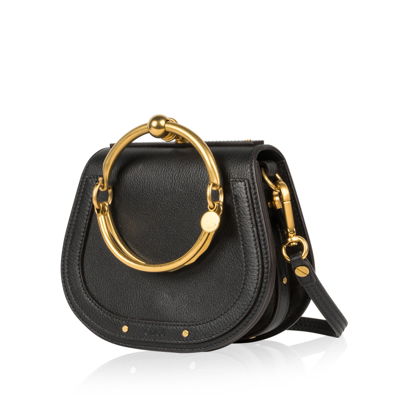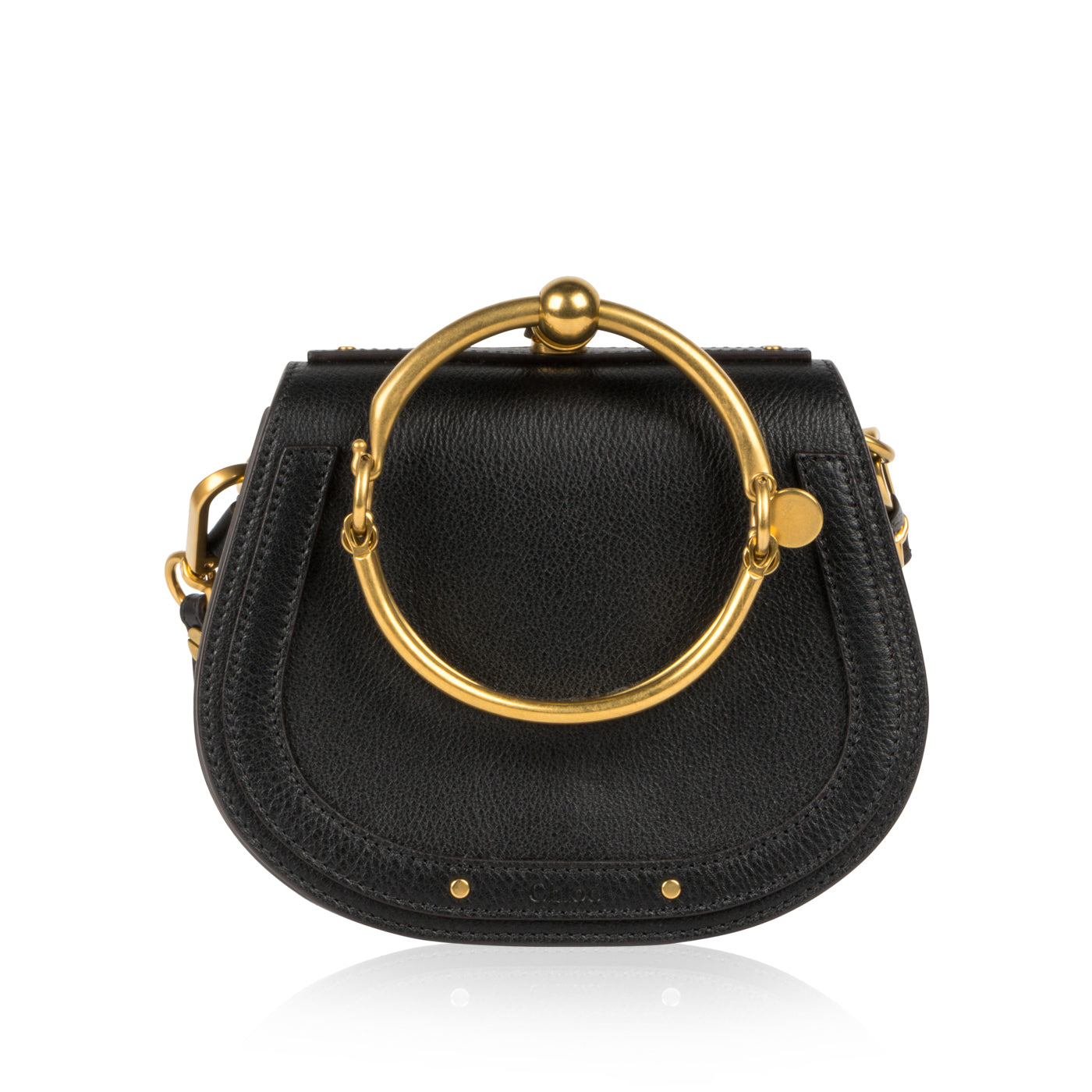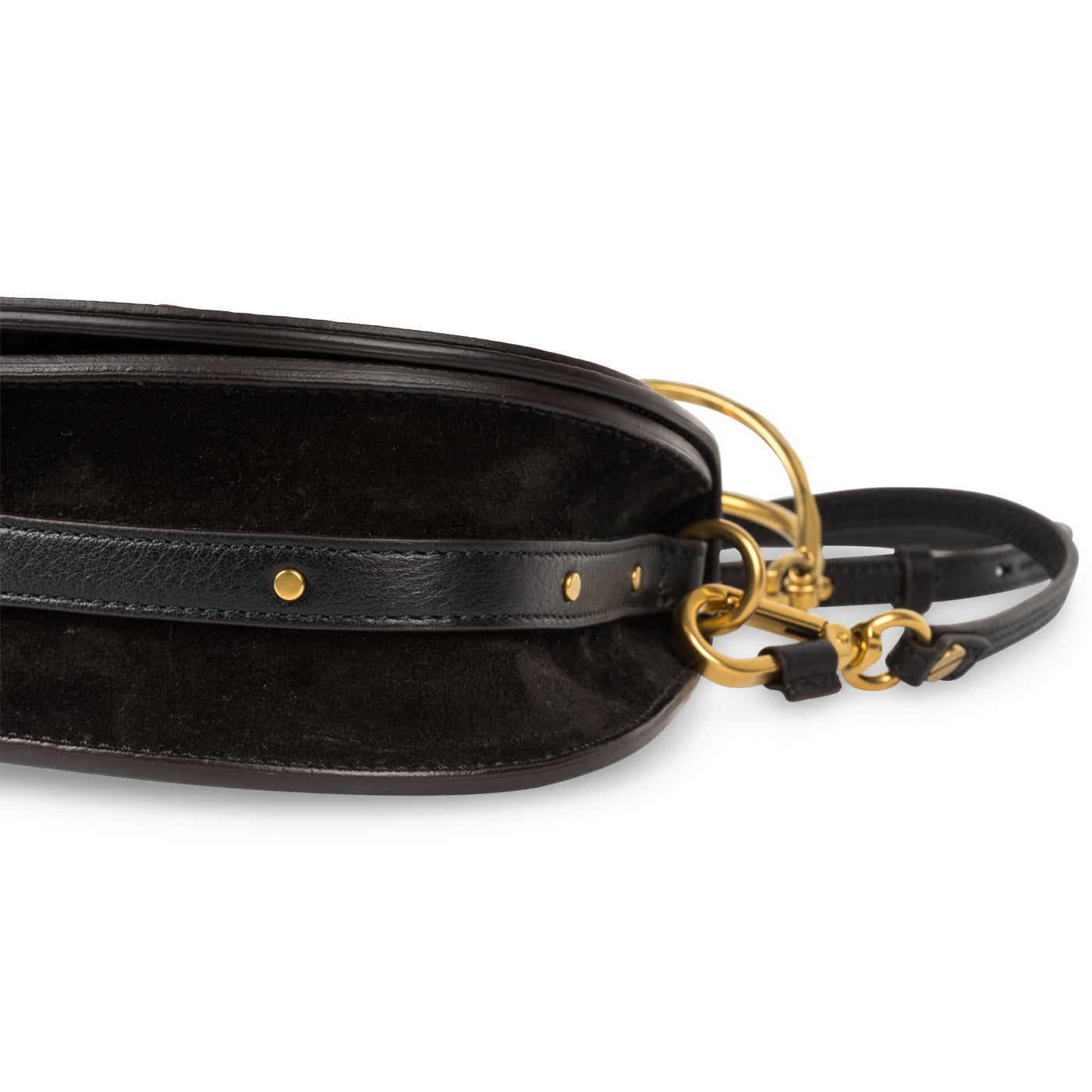 The Chloé Nile became an instant house signature when it took the fashion world by storm upon its debut in 2017. Chloé is acclaimed for their delicate and feminine designs ideal for the contemporary woman - and the Nile is no exception. With the ring bracelet feature which adds a glamorous touch to this remarkable piece, the Nile is the ideal bag to take you from day to night. The saddle shape is crafted from smooth calfskin and the deep black hue is complimented by gold tone hardware. It can be worn cross-body with the removable shoulder strap for handsfree usage. Sleek, stylish and sophisticated, this Chloé classic is an absolute must-have for any woman with a love for understated luxury.