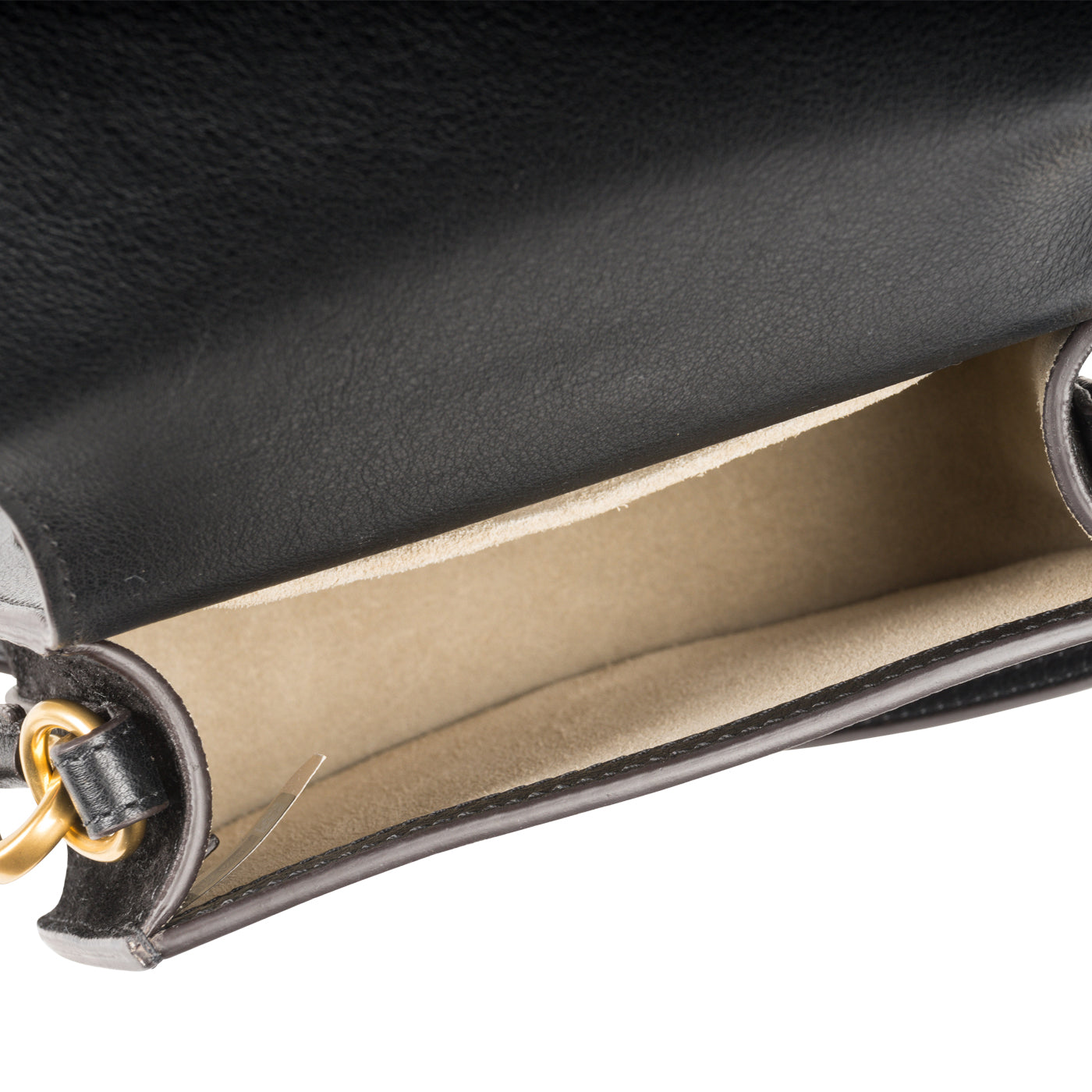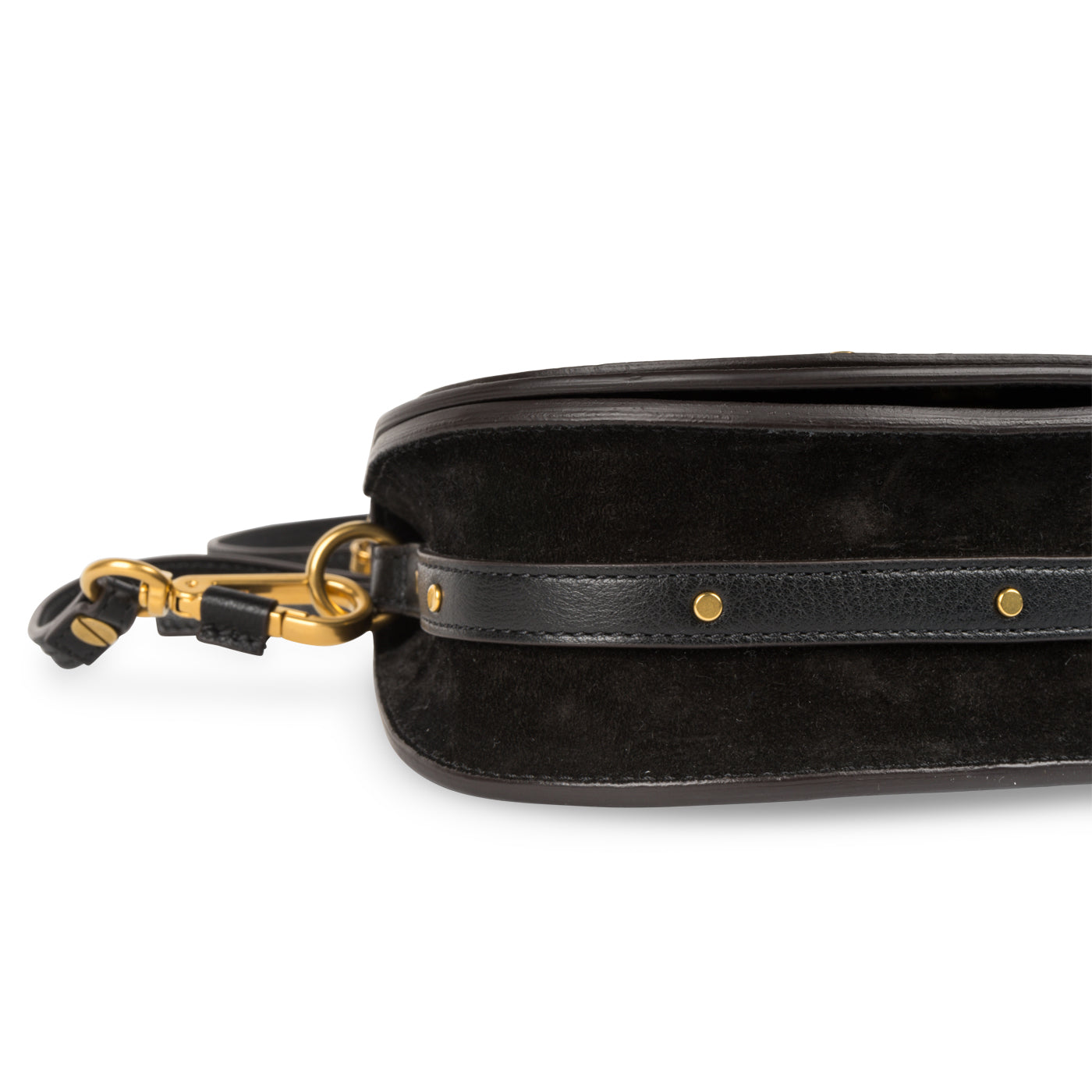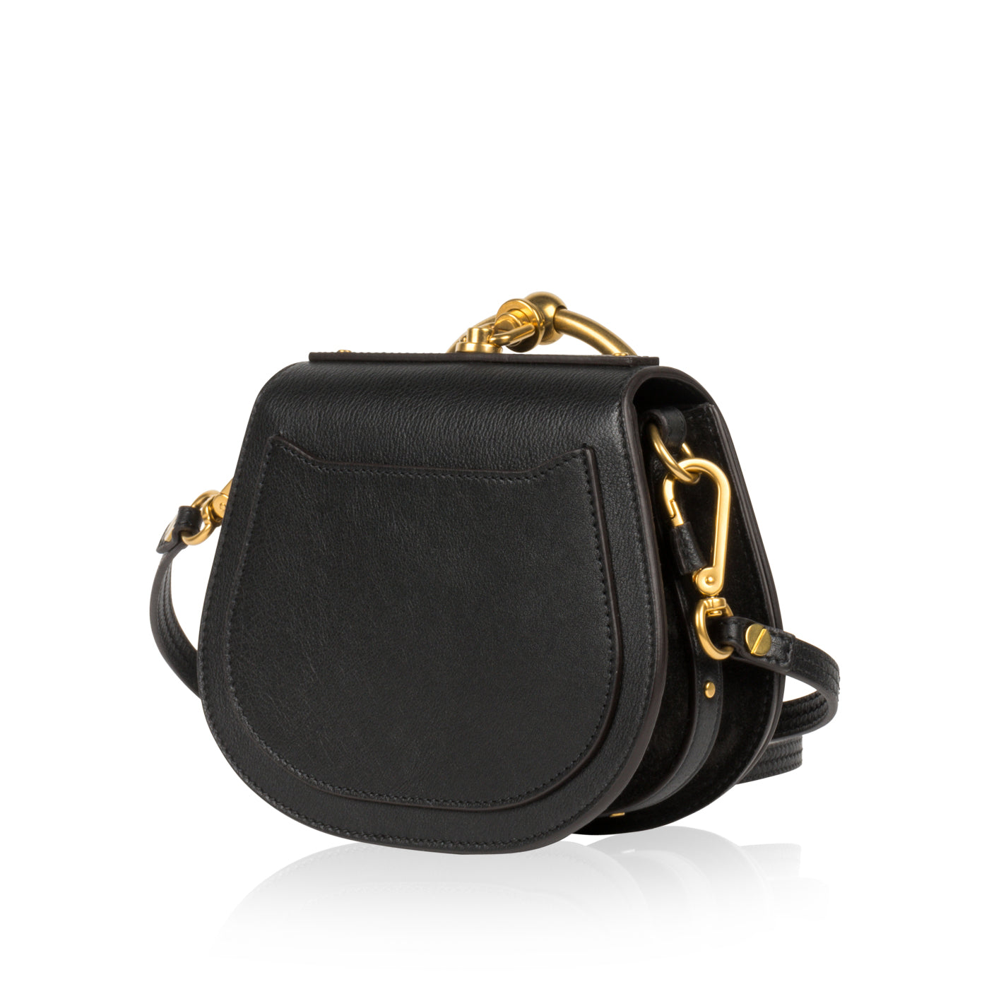 The Chloé Nile became an instant house signature when it took the fashion world by storm upon its debut in 2017. Chloé is acclaimed for their delicate and feminine designs ideal for the contemporary woman - and the Nile is no exception. With the ring bracelet feature which adds a glamorous touch to this remarkable piece, the Nile is the ideal bag to take you from day to night. The saddle shape is crafted from smooth calfskin and the deep black hue is complimented by gold tone hardware. It can be worn cross-body with the removable shoulder strap for handsfree usage. Sleek, stylish and sophisticated, this Chloé classic is an absolute must-have for any woman with a love for understated luxury.