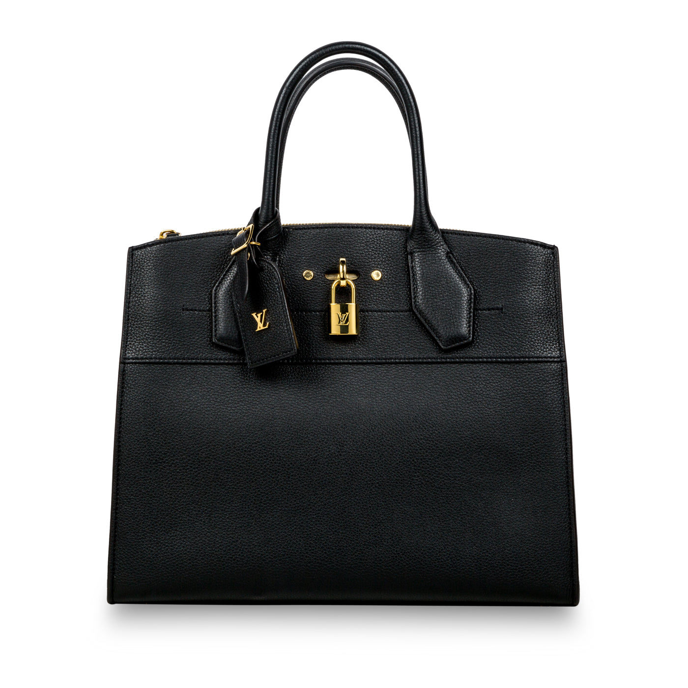Sophisticated and feminine, Louis Vuitton presents their ever-popular City Steamer tote. Inspired by historic House luggage by Vuitton and restyled for contemporary living by Creative Head, Nicolas Ghesquière. This particular City Steamer MM handbag is crafted from rich grained calfskin. The marvellous piece features distinctive handle mounts, an engraved padlock at front and centre of the bag, discreet LV emblems - all in a discreet and ultra-luxury form.