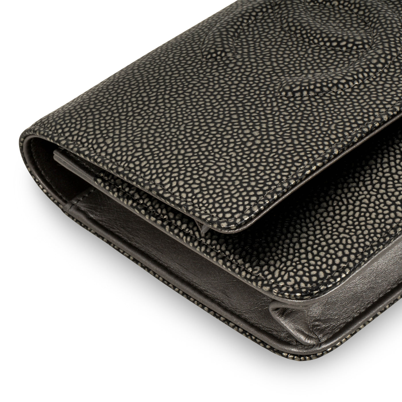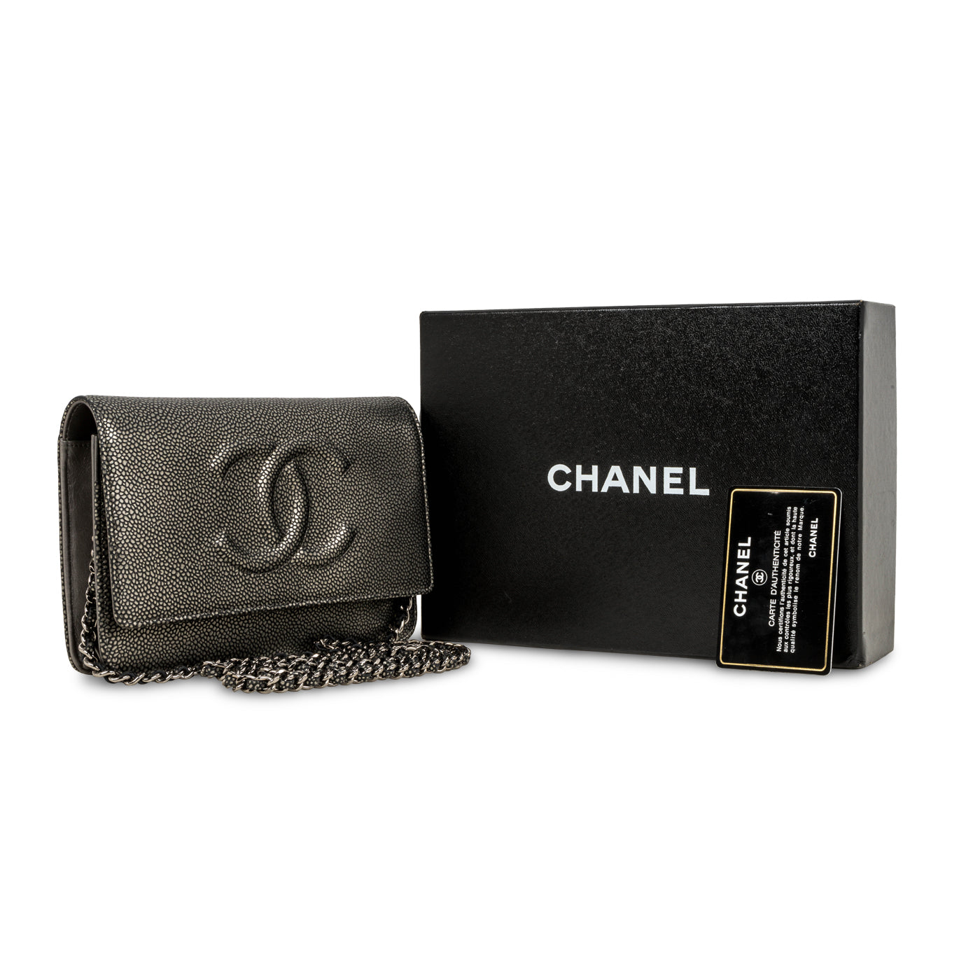 Ahh…is there anything not to love about the Chanel Wallet-On-Chain? It’s small but practical, elegant but effortlessly edgy and timeless but ideal for the modern woman all at the same time. This particular WOC crafted in the brand’s signature caviar leather and presented in a unique Grey/Silver Metallic hue is one of the most coveted accessories from Chanel. Sleek, stylish and sophisticated the WOC is a classic piece that you will have forever. With a prominent CC stitched logo displayed on the front flap, this bag is the epitome of luxury without being overly glamorous or in-your-face.