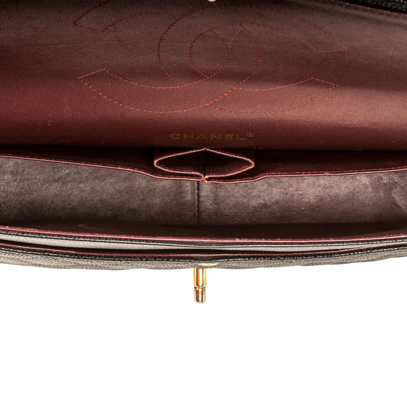 - Chanel embossed leather logo
