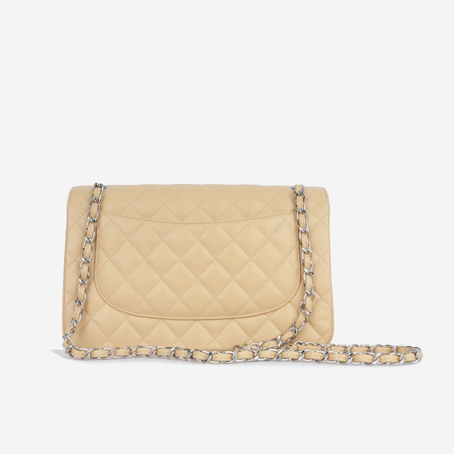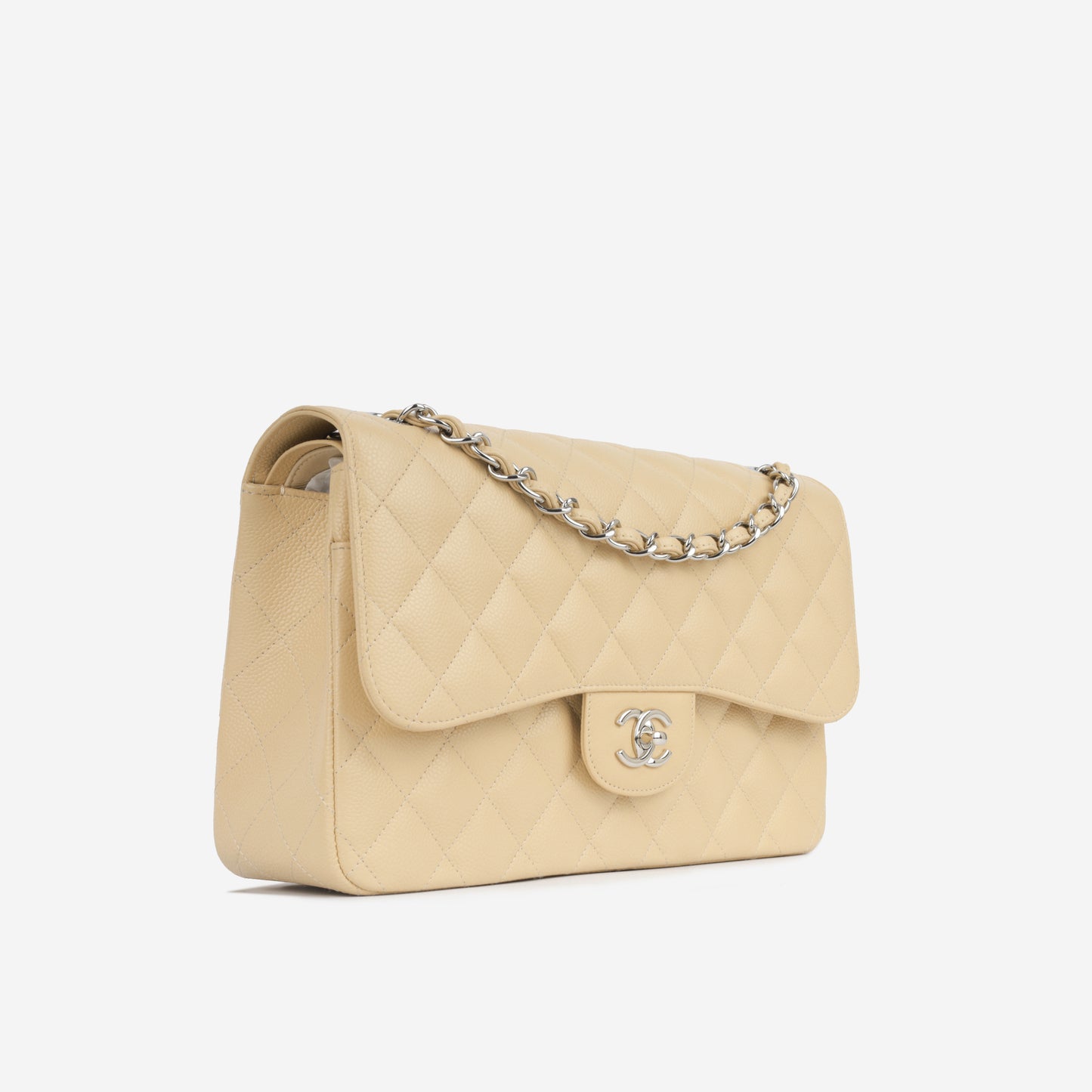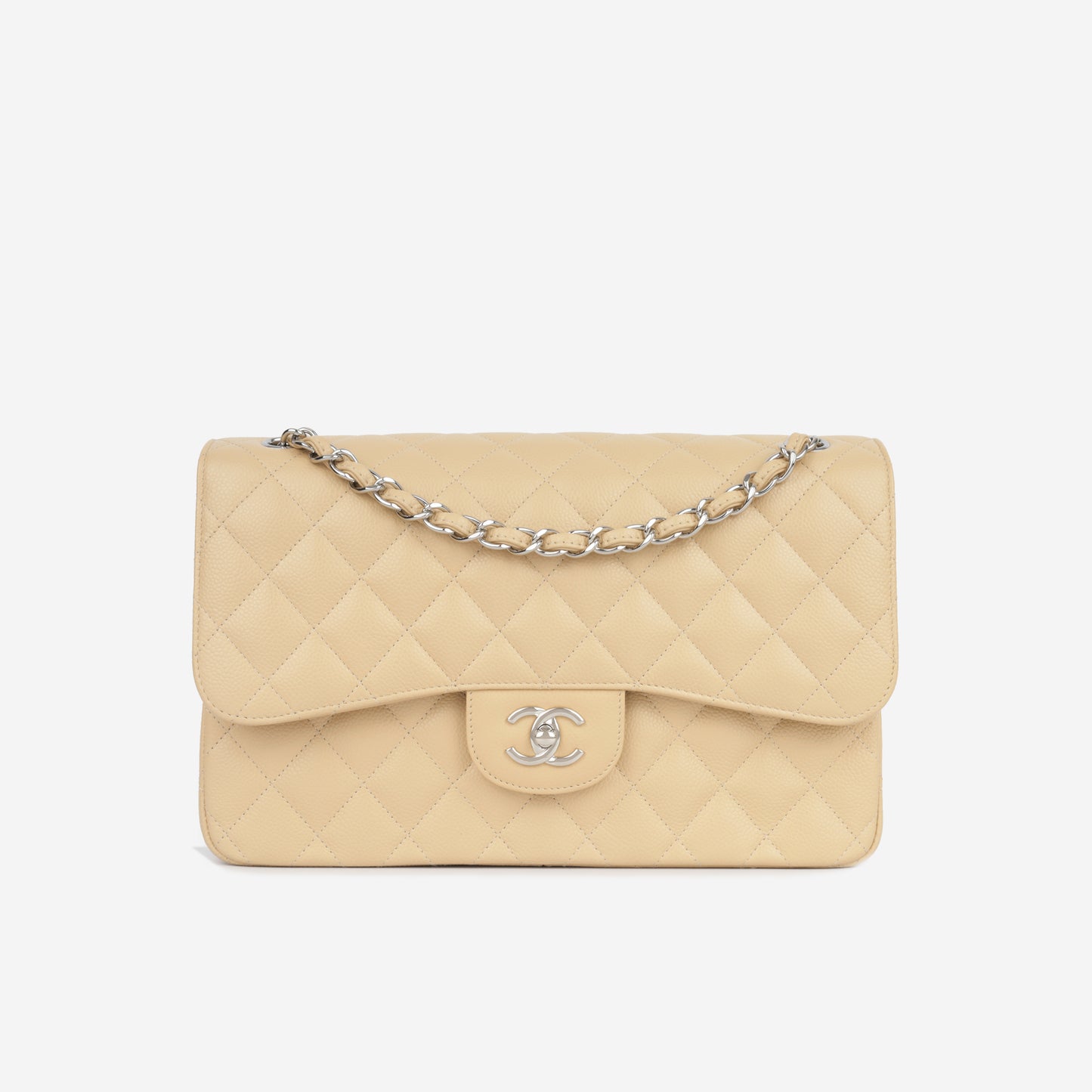Chanel continues to present its signature line of Classic Flap bags. Under the creative direction of Karl Lagerfeld, the Classic Flap is perhaps the most acclaimed bag in all of fashion history. Timeless, elegant and sophisticated, it's no wonder the Classic Flap is, well, a classic. Featuring its infamous quilted caviar leather and interwoven chain / leather strap, the Jumbo is an absolute must-have in any luxury handbag collection.