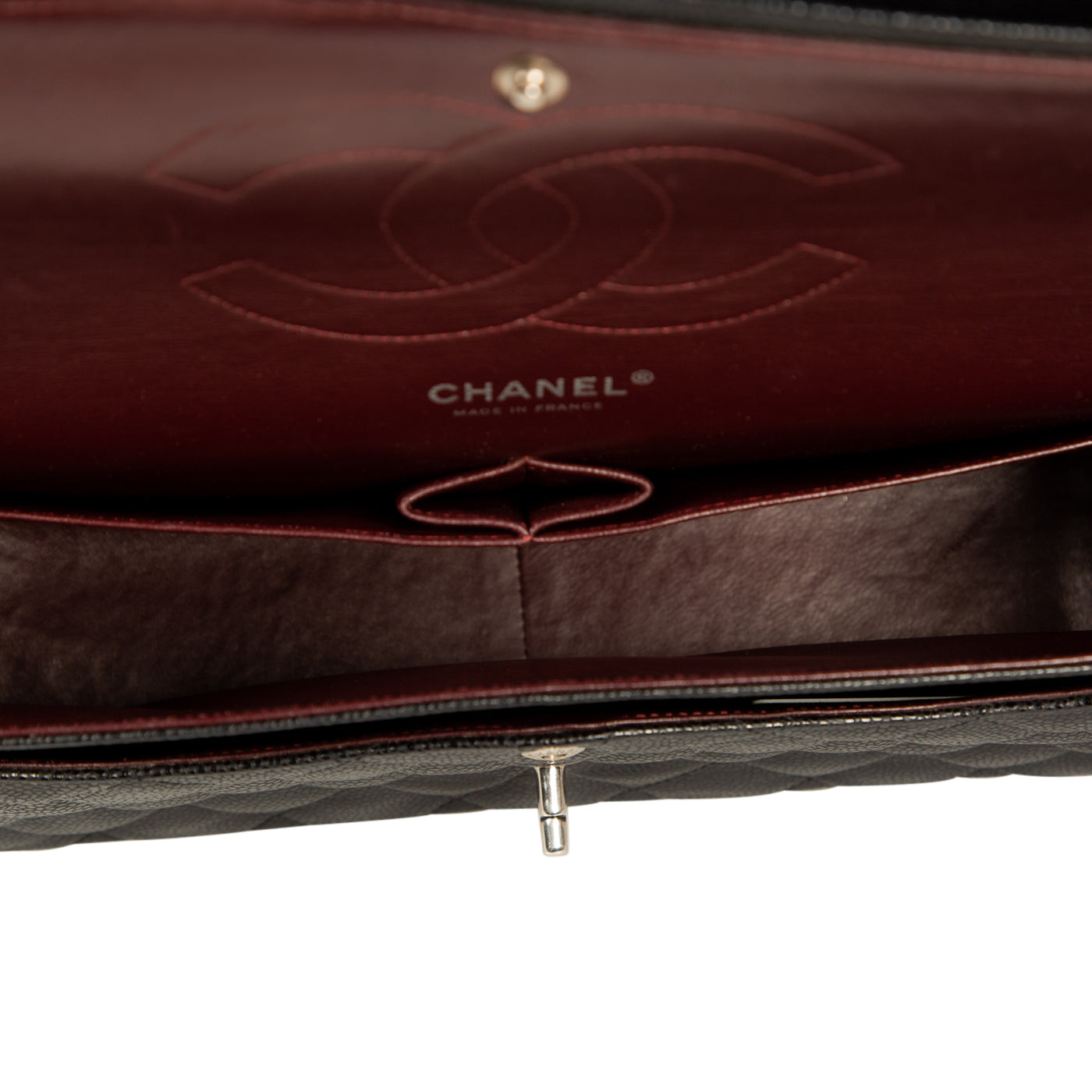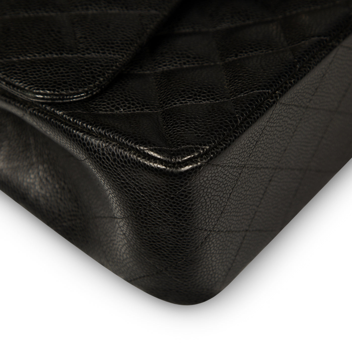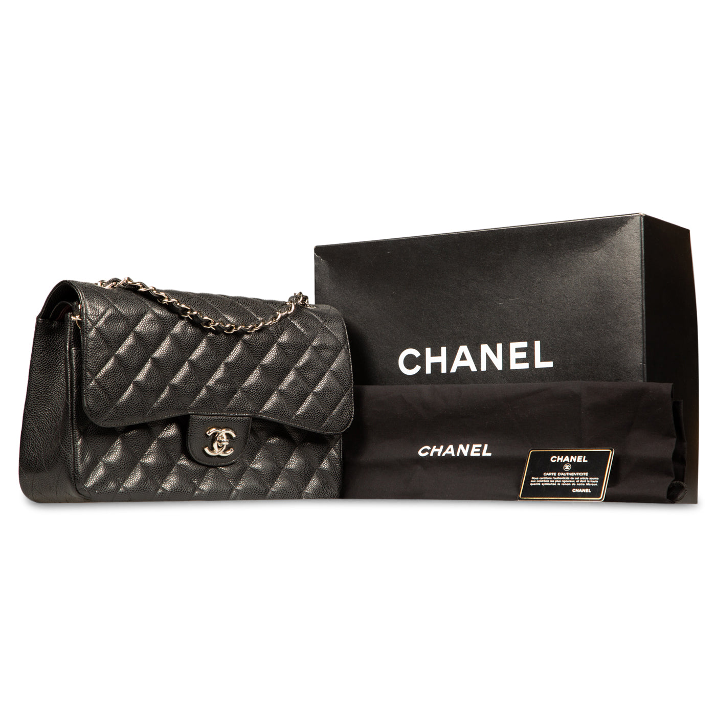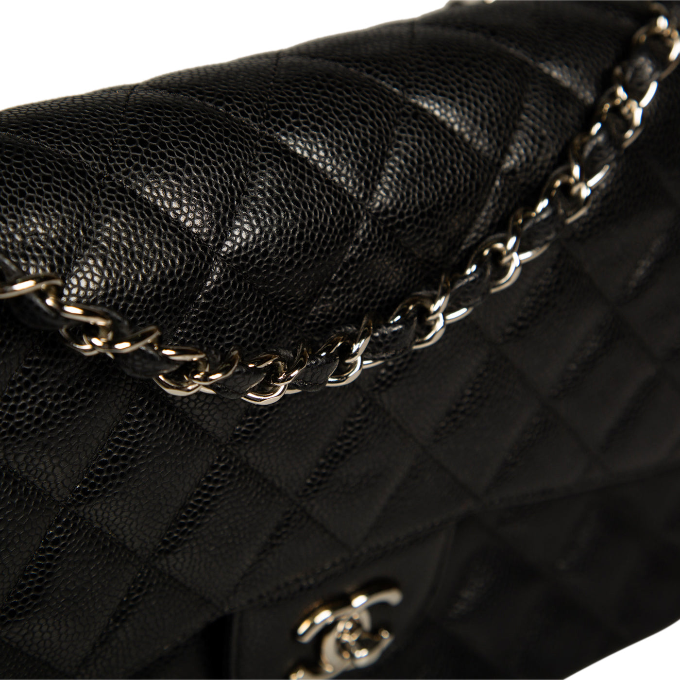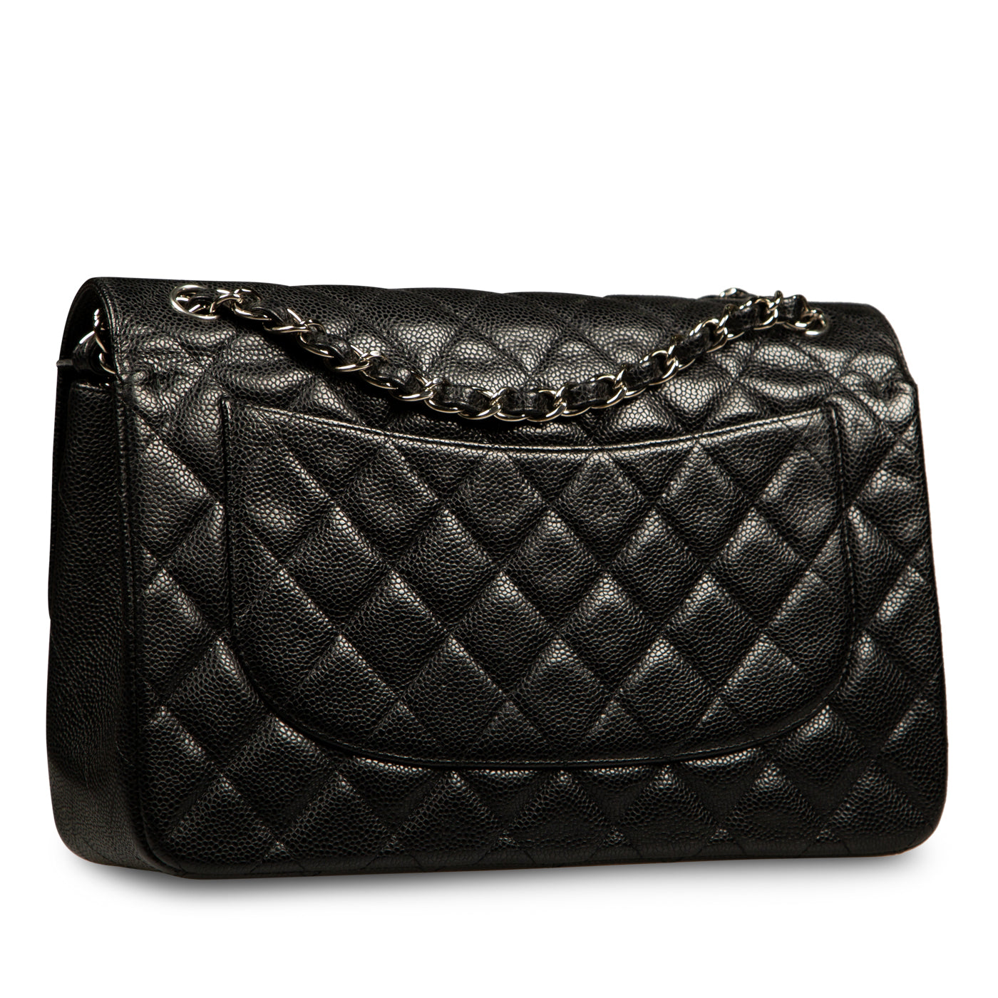 Chanel continues to present its signature line of Classic Flap bags. Under the creative direction of Karl Lagerfeld, the Classic Flap is perhaps the most acclaimed bag in all of fashion history. Timeless, elegant and sophisticated, it's no wonder the Classic Flap is, well, a classic. Featuring its infamous quilted caviar leather and interwoven chain / leather strap, the Jumbo is an absolute must-have in any luxury handbag collection. Not only is this highly coveted, stunning black bag the perfect compliment to pretty much anything you have in your wardrobe, but it's also an investment piece that will never lose its value. Embodying elegance and traditional femininity to a T, a Chanel bag is a purchase you won't ever regret.