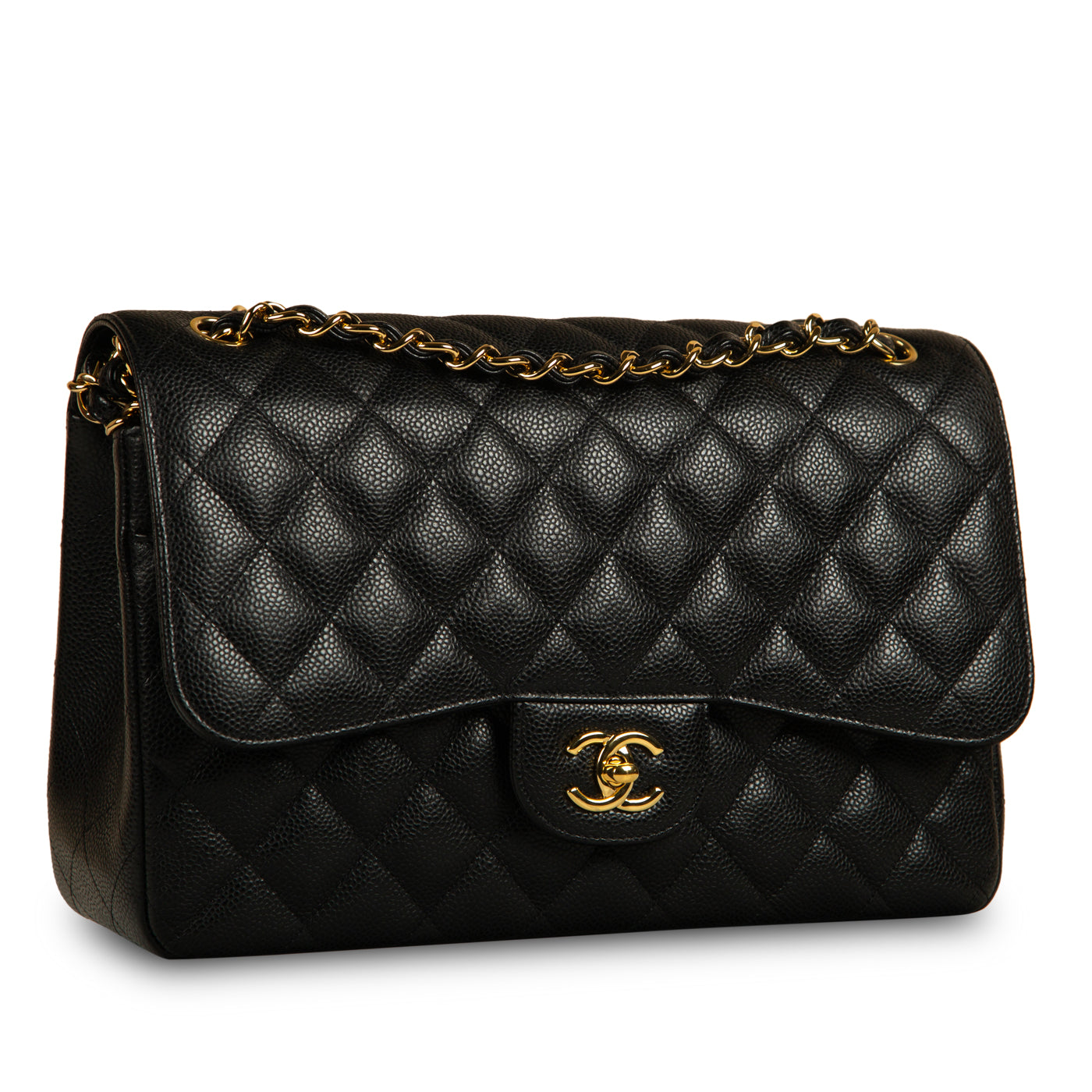 Chanel continues to present its signature line of Classic Flap bags. Under the creative direction of Karl Lagerfeld, the Classic Flap is perhaps the most acclaimed bag in all of fashion history. Timeless, elegant and sophisticated, it's no wonder the Classic Flap is, well, a classic. Featuring its iconic quilted caviar leather and interwoven chain / leather strap, the Jumbo is an absolute must-have in any luxury handbag collection. To top that off, it's also an investment piece that will never lose its value. Embodying elegance and traditional femininity to a T, a Chanel bag is a purchase you won't ever regret.