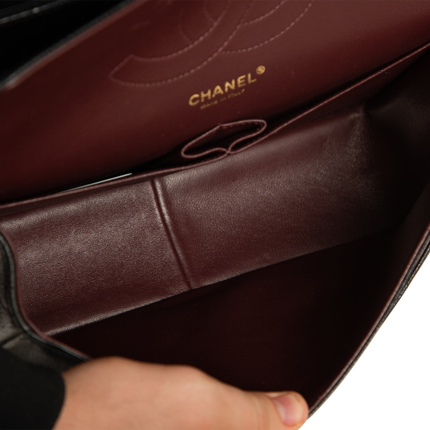 - Chanel embossed leather logo