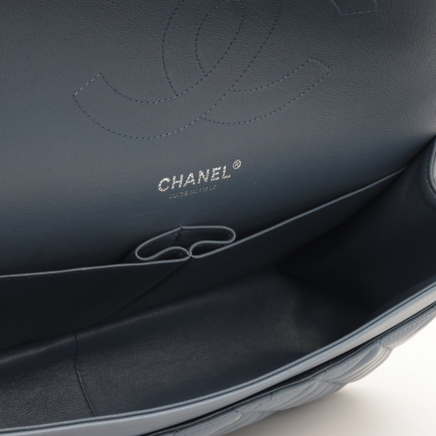 Chanel continues to present its signature line of Classic Flap bags. Under the creative direction of Karl Lagerfeld, the Classic Flap is perhaps the most acclaimed bag in all of fashion history. Timeless, elegant and sophisticated, it's no wonder the Classic Flap is, well, a classic. Featuring its infamous quilted lambskin leather and interwoven chain / leather strap, the Jumbo is an absolute must-have in any luxury handbag collection. Not only is this highly coveted, stunning black bag the perfect compliment to pretty much anything you have in your wardrobe, but it's also an investment piece that will never lose its value.
