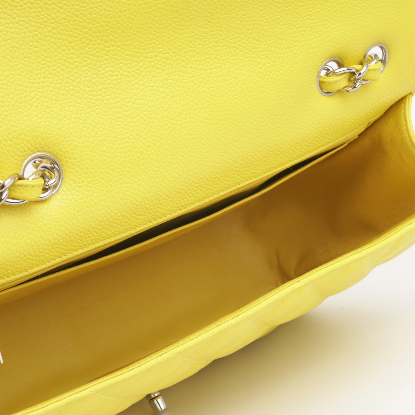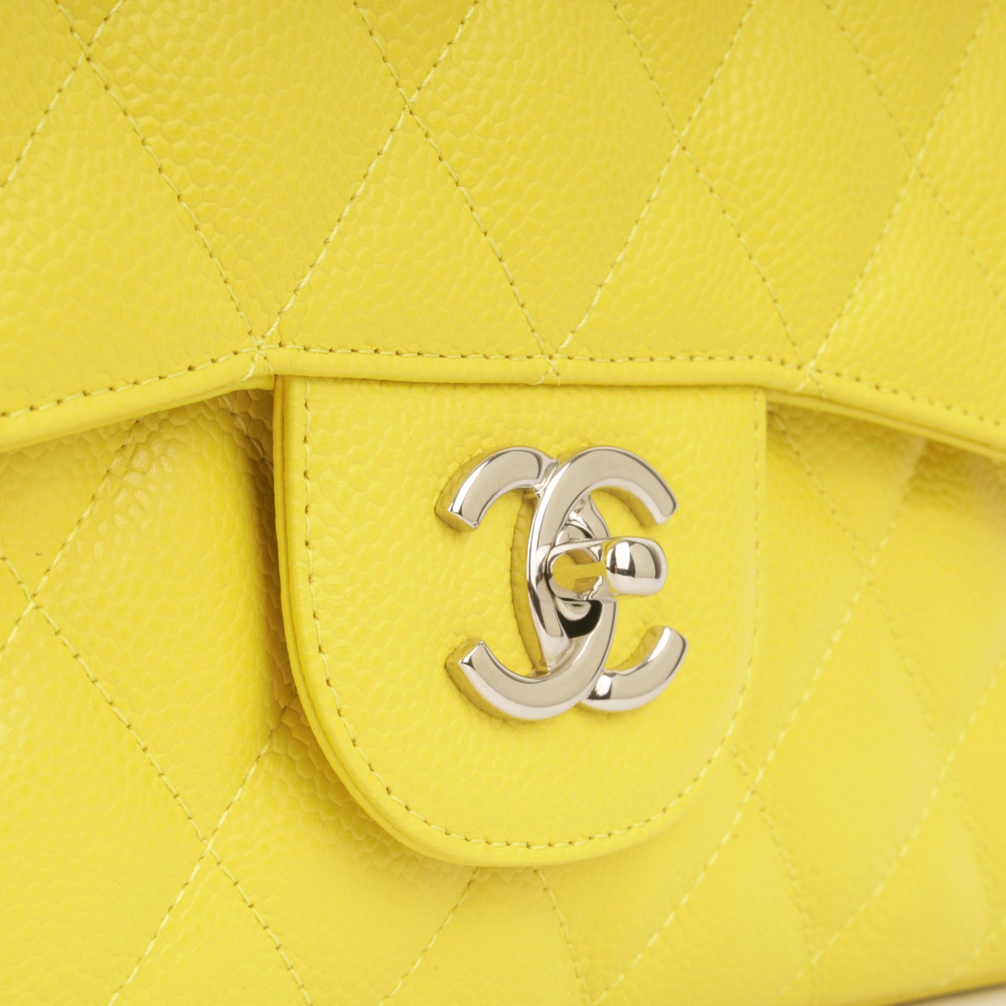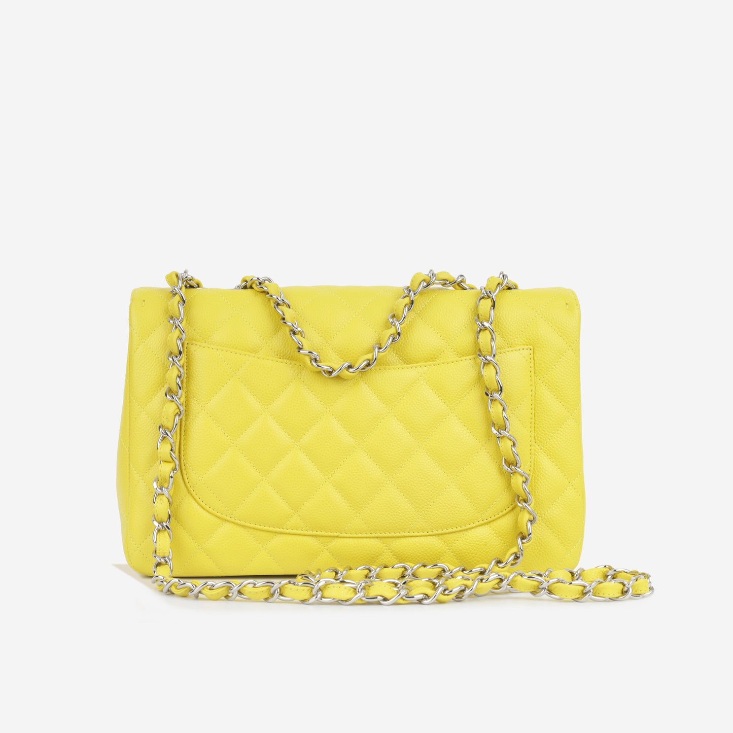 Chanel continues to present its signature line of Classic Flap bags. Under the creative direction of Karl Lagerfeld, the Classic Flap is perhaps the most acclaimed bag in all of fashion history. Timeless, elegant and sophisticated, it's no wonder the Classic Flap is, well, a classic. Featuring its infamous quilted caviar leather and interwoven chain / leather strap, the Jumbo is an absolute must-have in any luxury handbag collection.