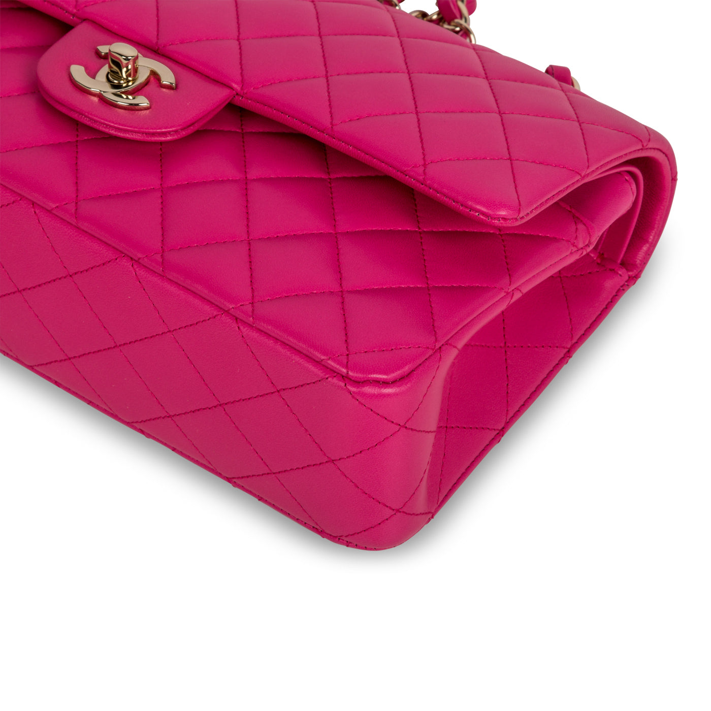 It's true when they say that legends never die, at least in Chanel's case when it comes to their iconic Classic Flap bags. One of the most acclaimed and desired bags in history, the Chanel Classic Flap is the ultimate must-have for any woman with a love for luxury - seriously, no handbag collection is complete without one. Presented in the brand’s signature lambskin leather and complimented by champagne gold tone hardware, the Medium Classic Flap in hot pink embodies the definition of elegance and timeless femininity. A bag that will never go out of style, this investment piece is a purchase you won't regret. The CF is a bag you can pass on to your daughter, who will pass it down to her daughter, and so forth - it's no wonder the Classic Flap is, well, a classic.