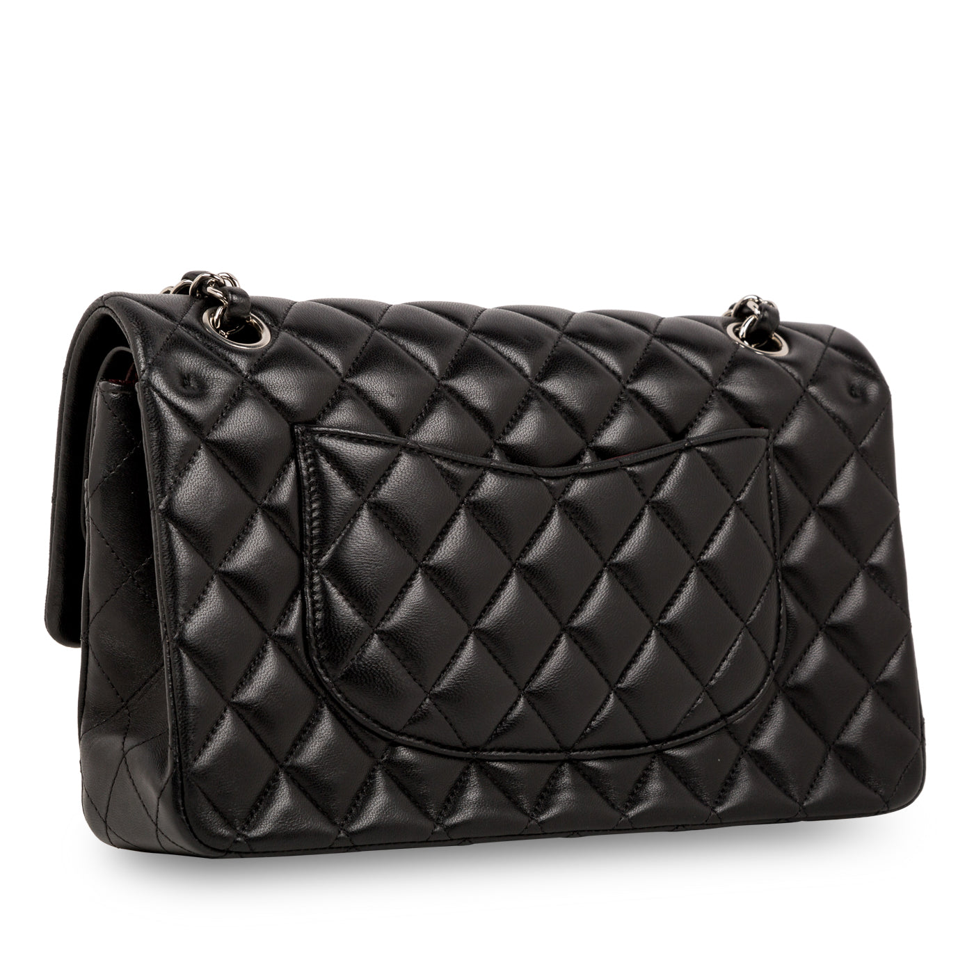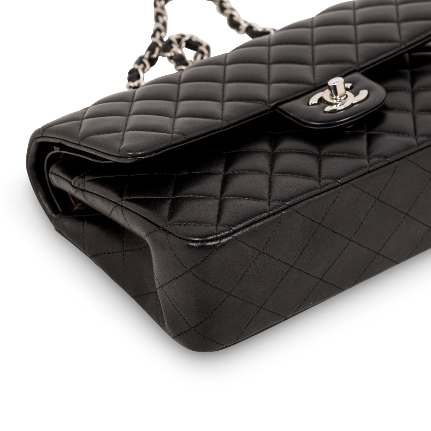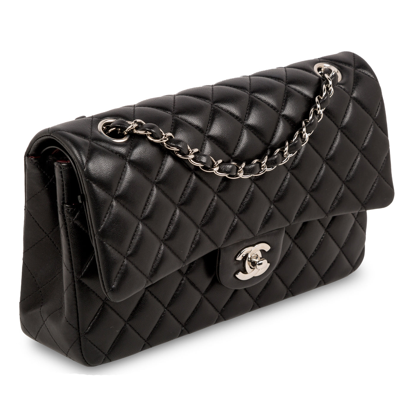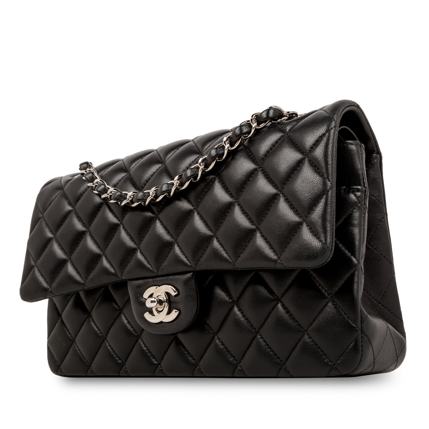Under the creative direction of Karl Lagerfeld, Chanel continues with its line of classic quilted bags. This special bag is a vintage edition to the modern day versions. The enviable Double Flap bag is crafted in buttery soft lambskin leather, and detailed with fine stitching and silver hardware. The chain is interwoven with leather and can be worn on either a single shoulder strap or doubled up. The classic black colour means this bag fits seamlessly into any wardrobe, and it can stay in there forever! The Classic Flap from Chanel is a true investment piece - in the timeless combination of black and silver.