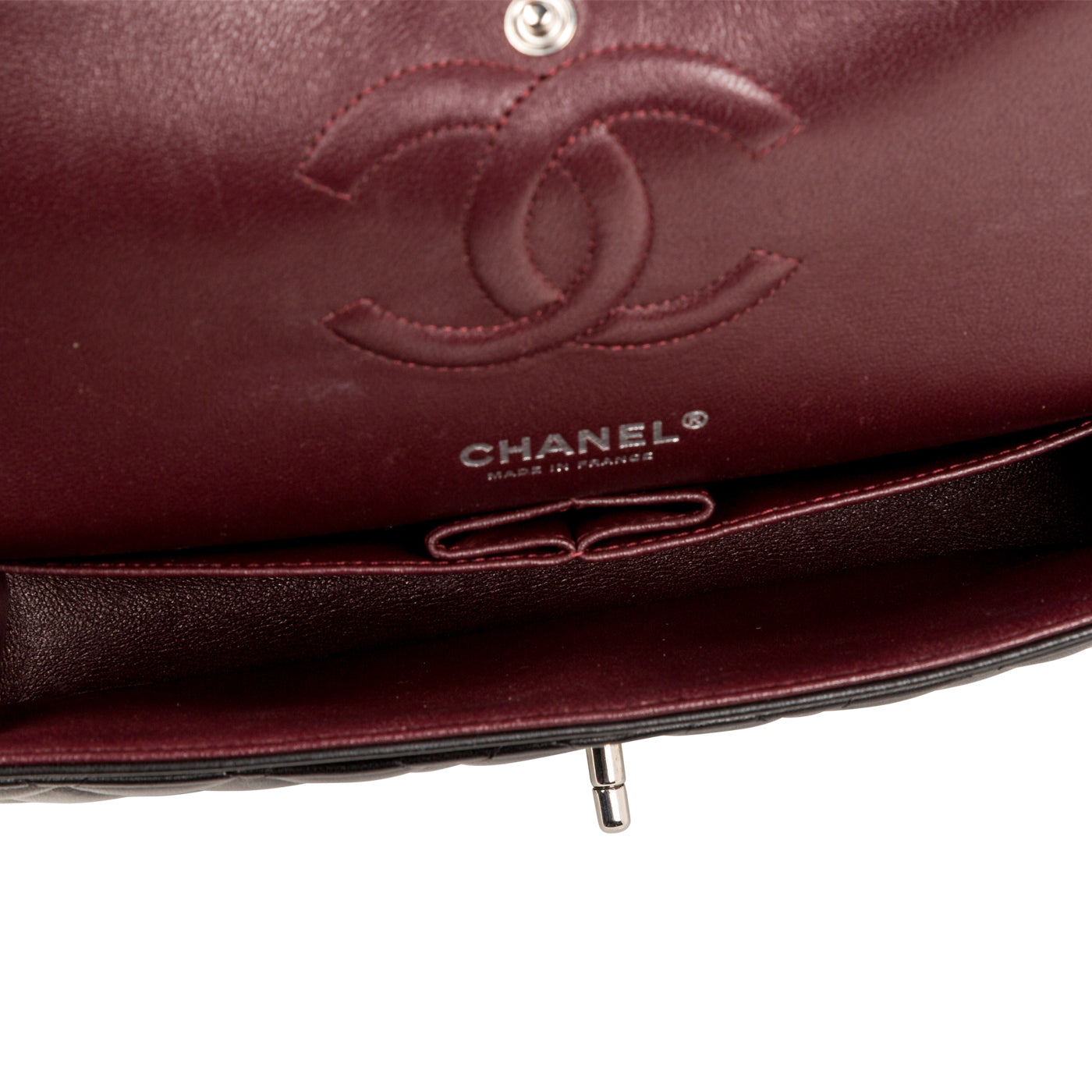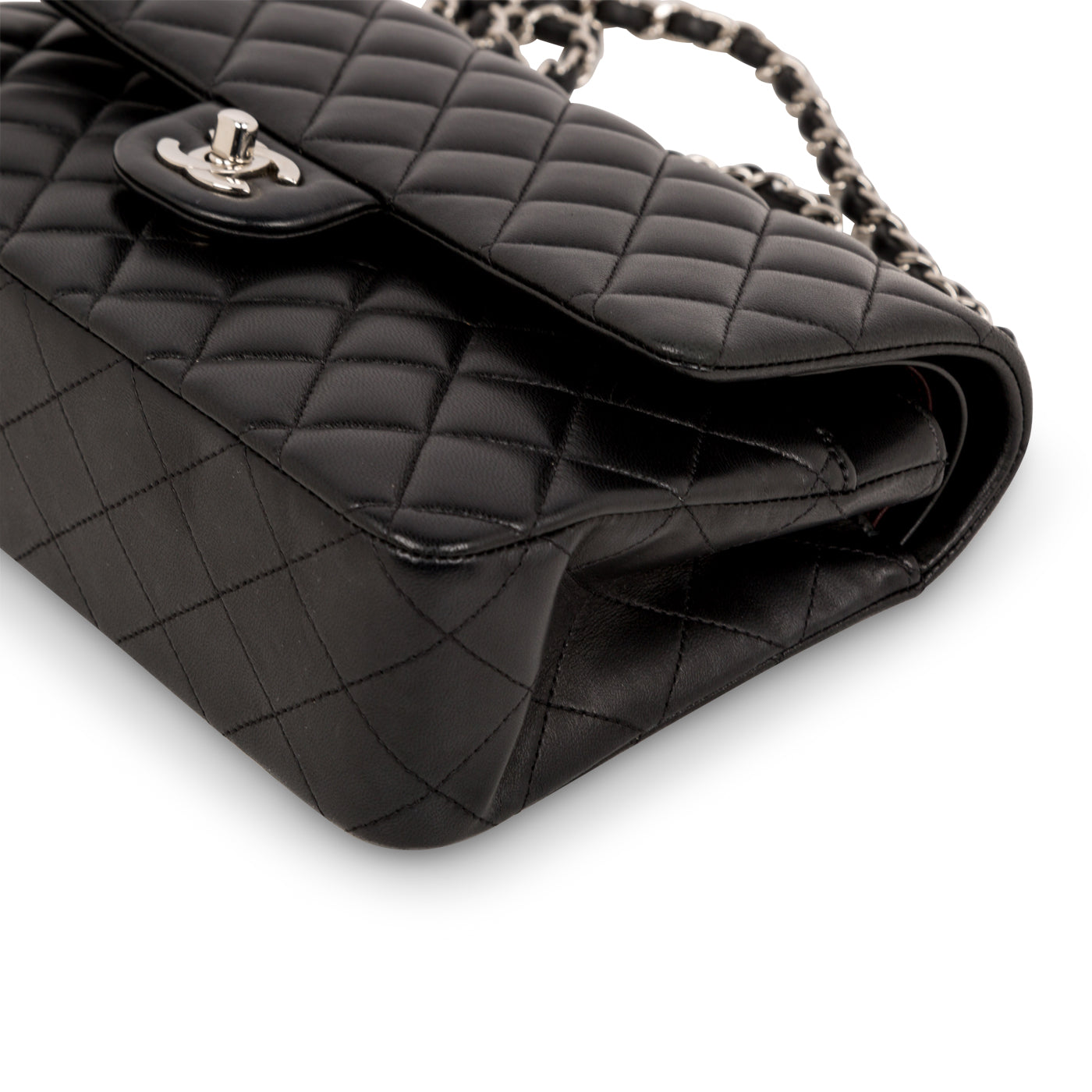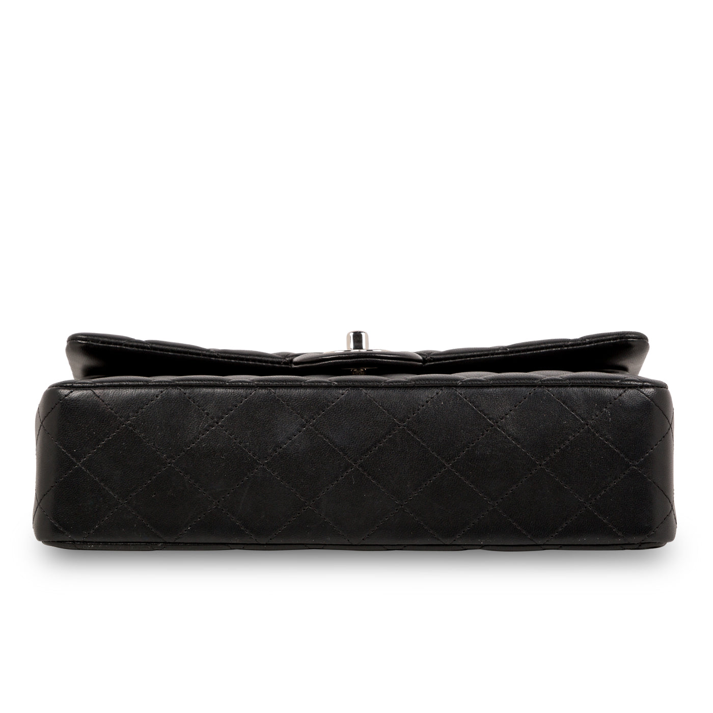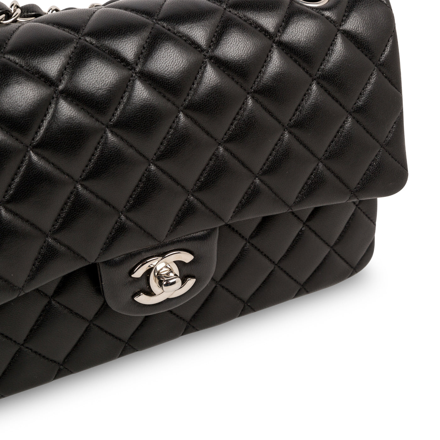 Under the creative direction of Karl Lagerfeld, Chanel continues with its line of classic quilted bags. This special bag is a vintage edition to the modern day versions. The enviable Double Flap bag is crafted in buttery soft lambskin leather, and detailed with fine stitching and silver hardware. The chain is interwoven with leather and can be worn on either a single shoulder strap or doubled up. The classic black colour means this bag fits seamlessly into any wardrobe, and it can stay in there forever! The Classic Flap from Chanel is a true investment piece - in the timeless combination of black and silver.