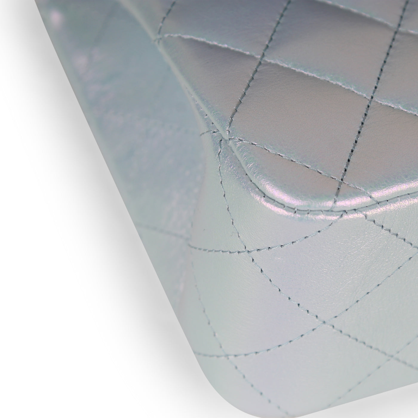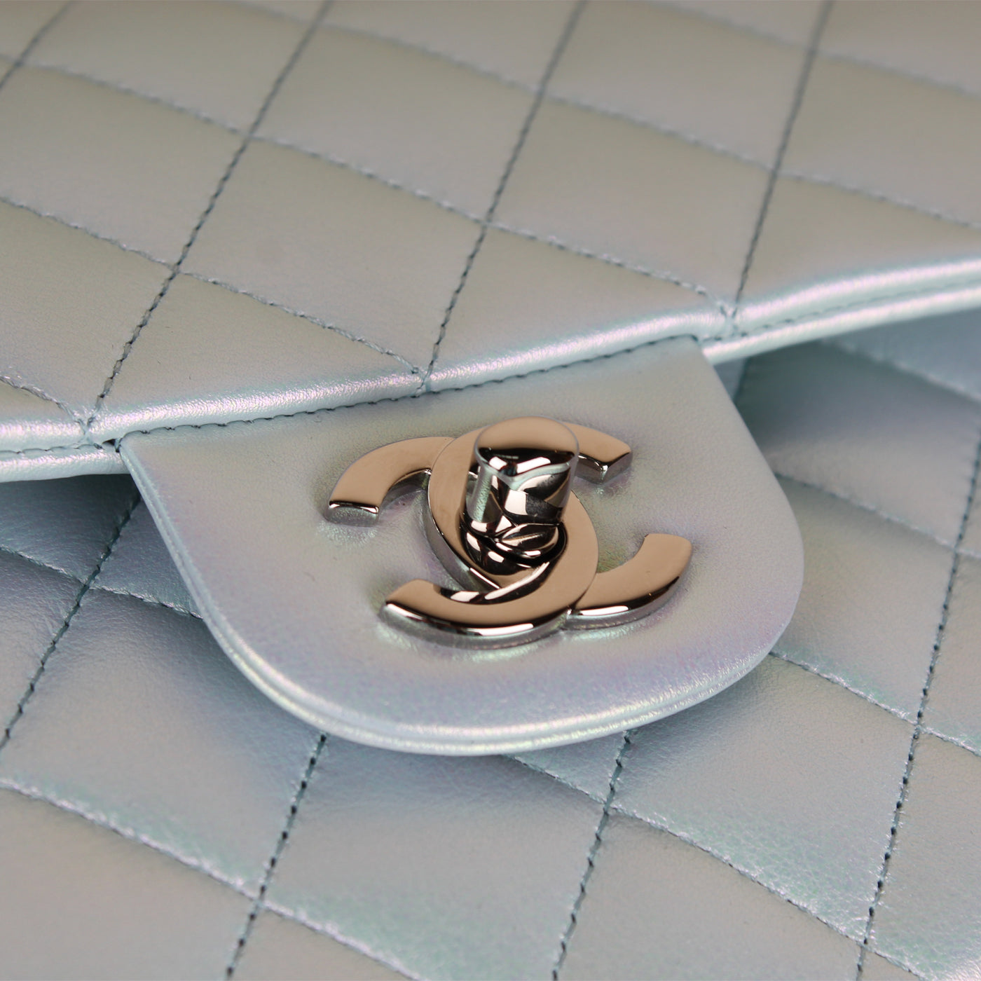 There's nothing quite like a Chanel Classic Flap Bag. Elegant, Sophisticated and Timeless are the words that spring to mind when this beauty is mentioned or seen. Well Chanel have elevated the iconic piece in this year's collection, taking classic silhouettes and introducing the most stunning iridescent hues to their collection. This beautifully designed classic flap comes in a truly eye-catching shiny frozen blue exterior with silver hardware to offset the warm tones. A piece we are sure will become a collector's item, this unicorn is now available here at Bagista.