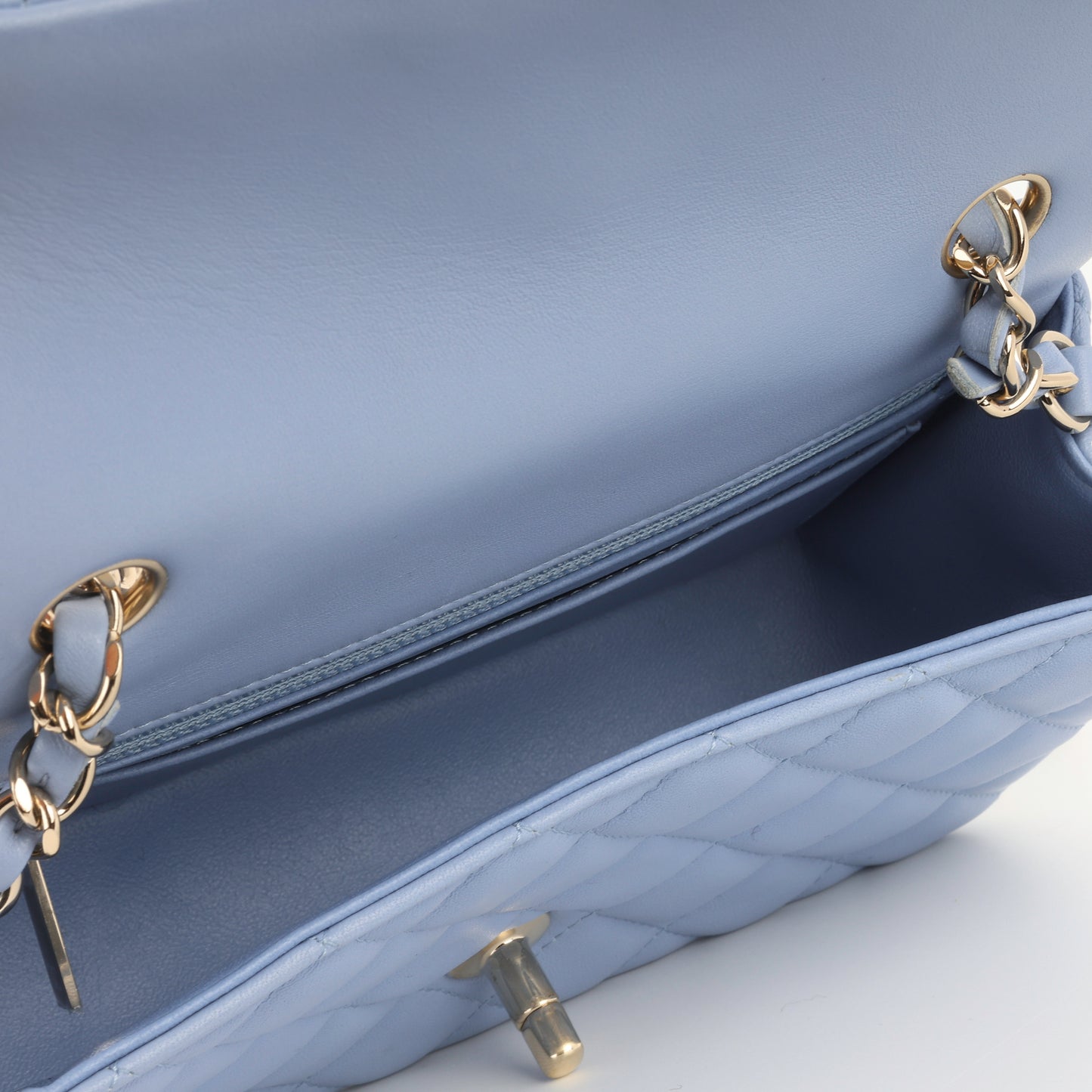 Carefully crafted from lambskin, this little beauty is an absolute necessity in any luxury handbag collection. Investing in a Classic Flap is investing in a piece of history that will never decrease in value and always a great choice to have in your wardrobe.
