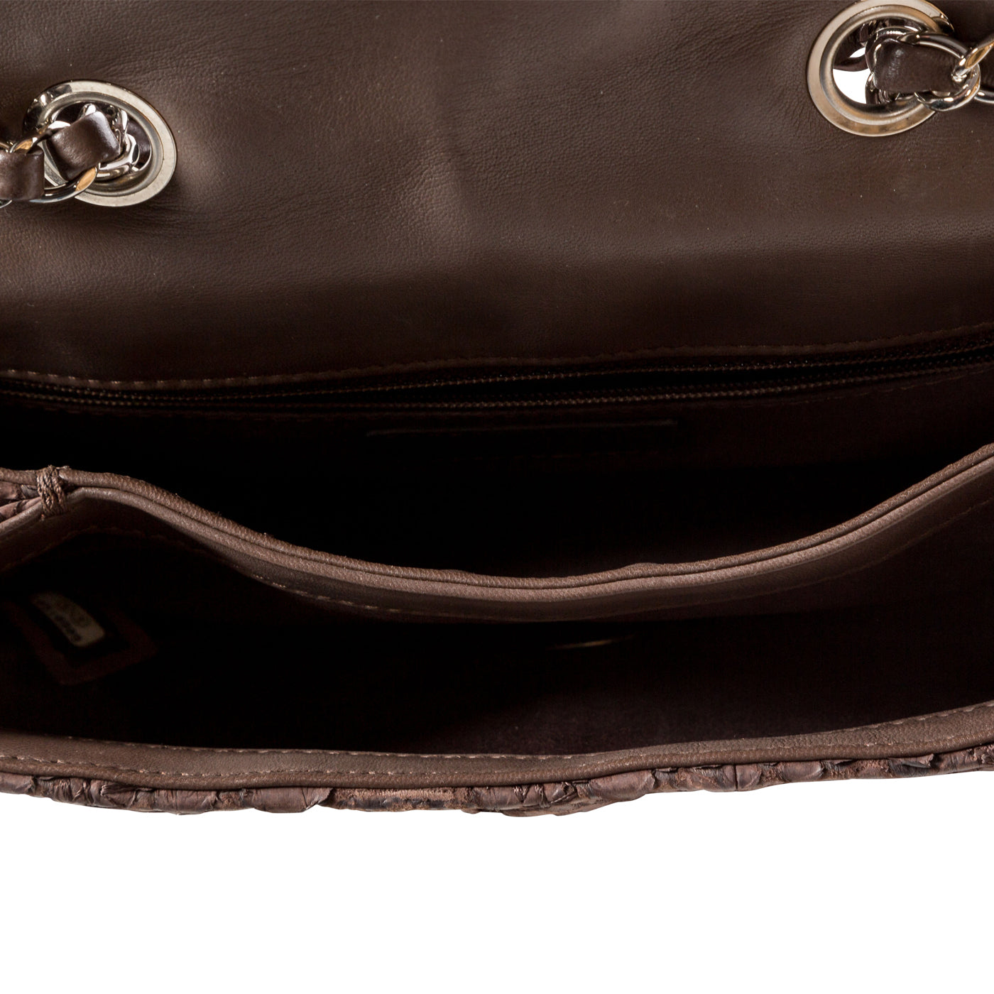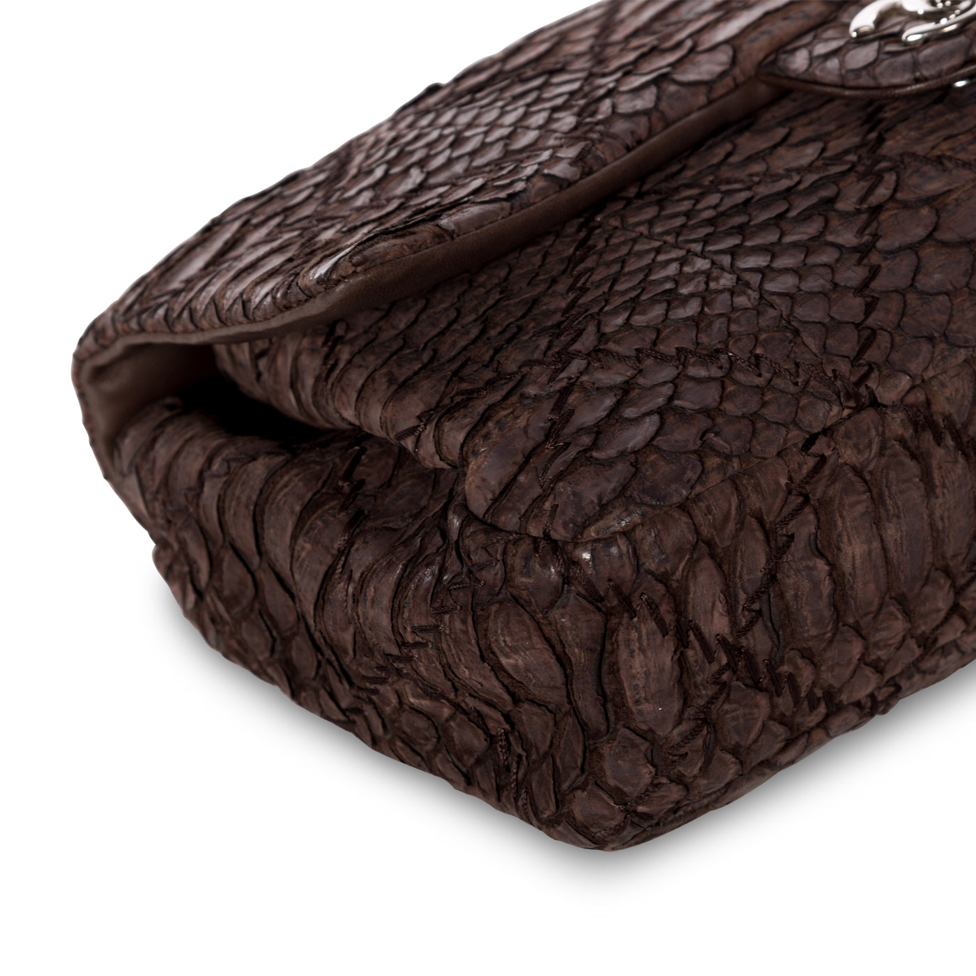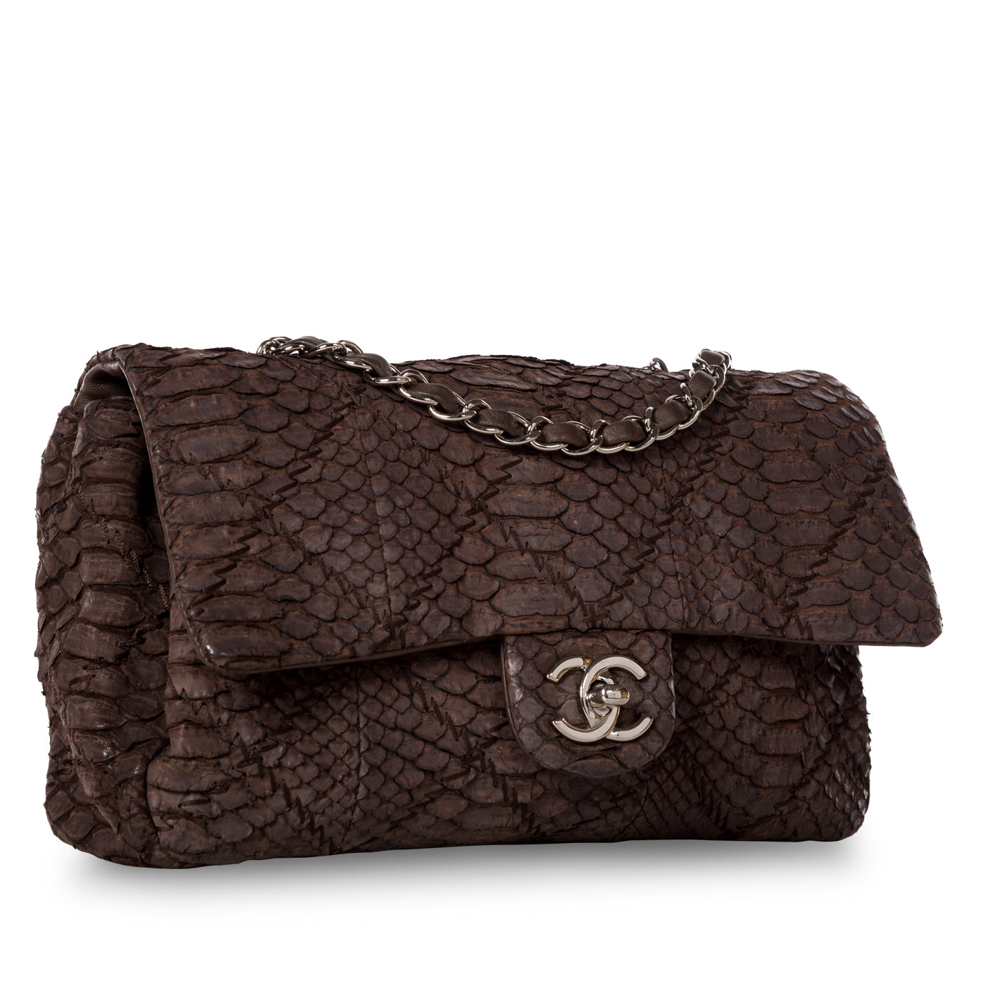 This stunningly feminine Chanel classic flap bag is crafted out of exotic python leather, and is finished with beautiful silver tone hardware. The exterior is soft and truly eye-catching. The flap bags are the most iconic and popular bags by the French fashion house. We are in utter awe of this flap bag from Chanel as it is appealing in a surreal way, bearing its signature label in the leather interior and a lovely chain link just so you can easily parade in. A true Chanel classic with an exotic twist guaranteed to turn heads.