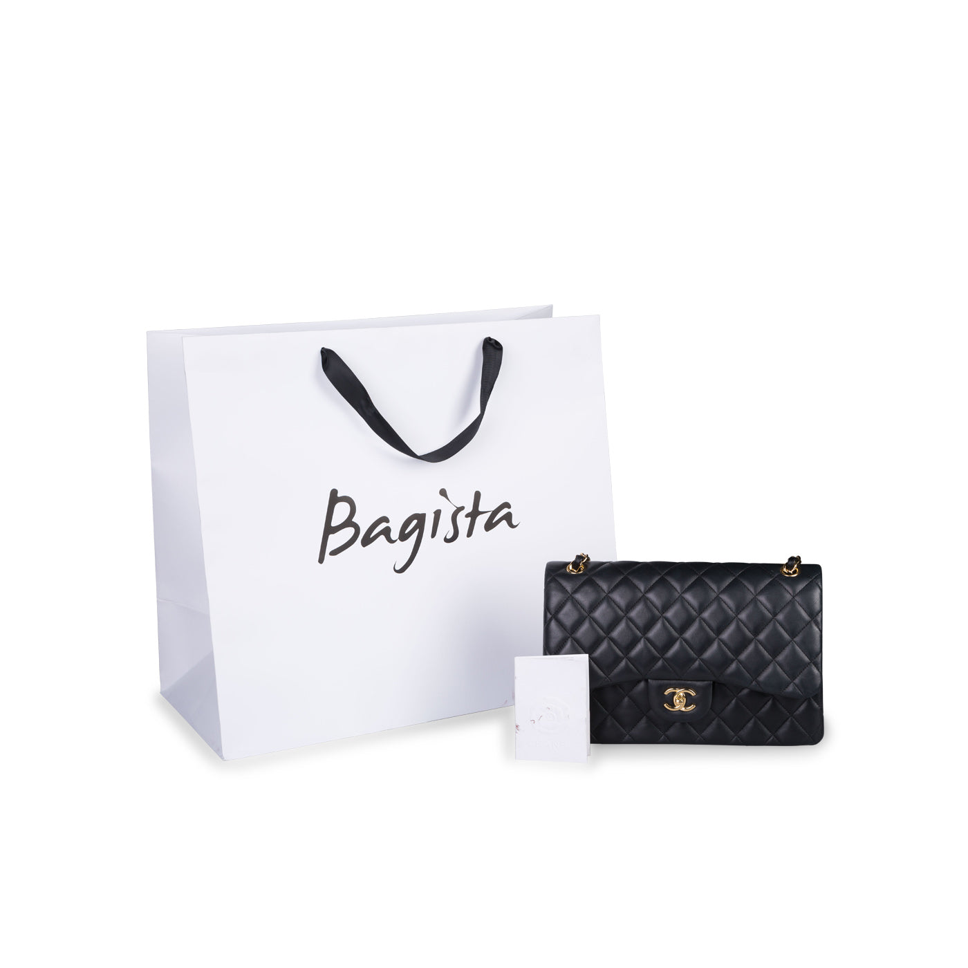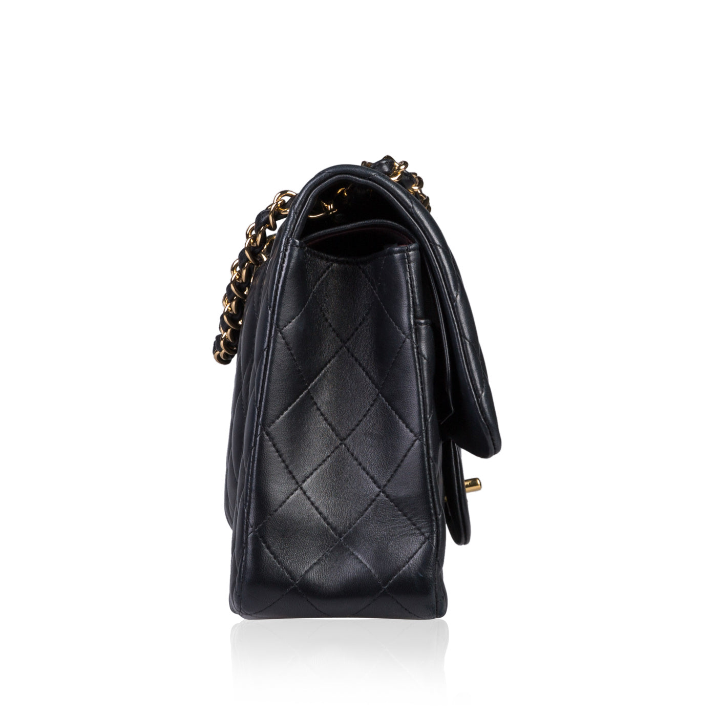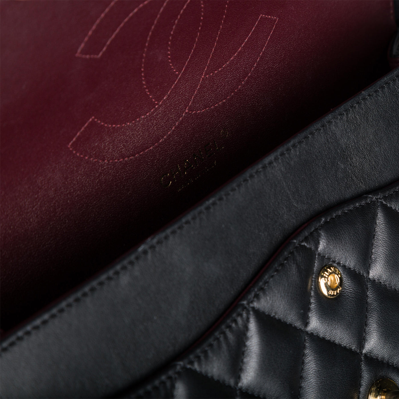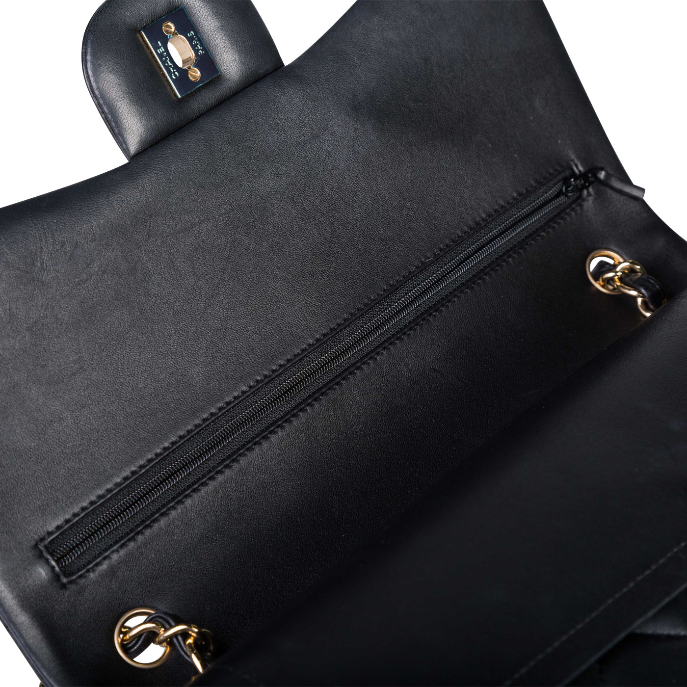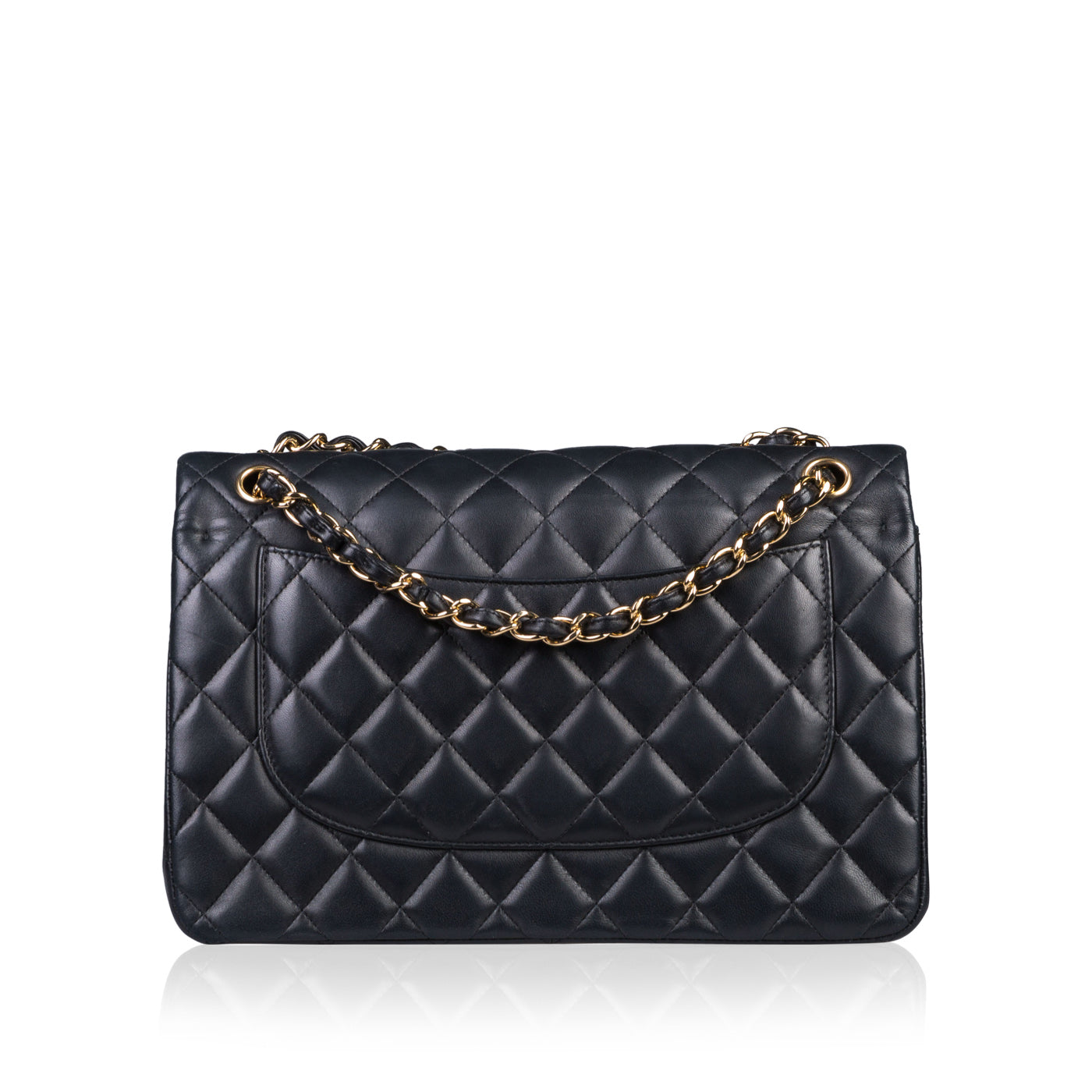 Ah... A classic Chanel bag - always sleek, always sophisticated, and always in style. Karl Lagerfeld continues with Chanel's iconic line of quilted flap bags. This stunning bag crafted in black lambskin leather with gold-tone hardware, is perfect dressed down with trousers and sneakers or dolled up with an elegant dress and heels. Whether you double the chain up or lengthen it for the single shoulder strap, you can be sure you're wearing a piece that not only is rich in history, but that you'll wear forever - because timelessness is always a good look.