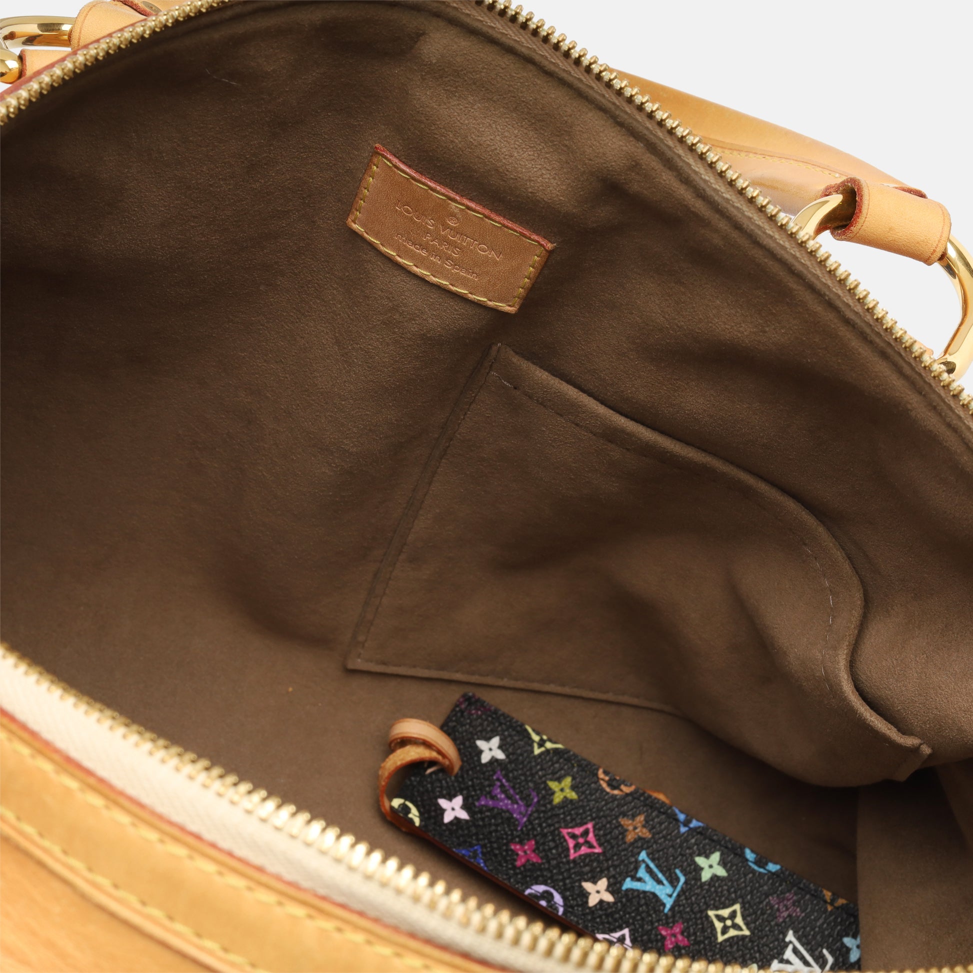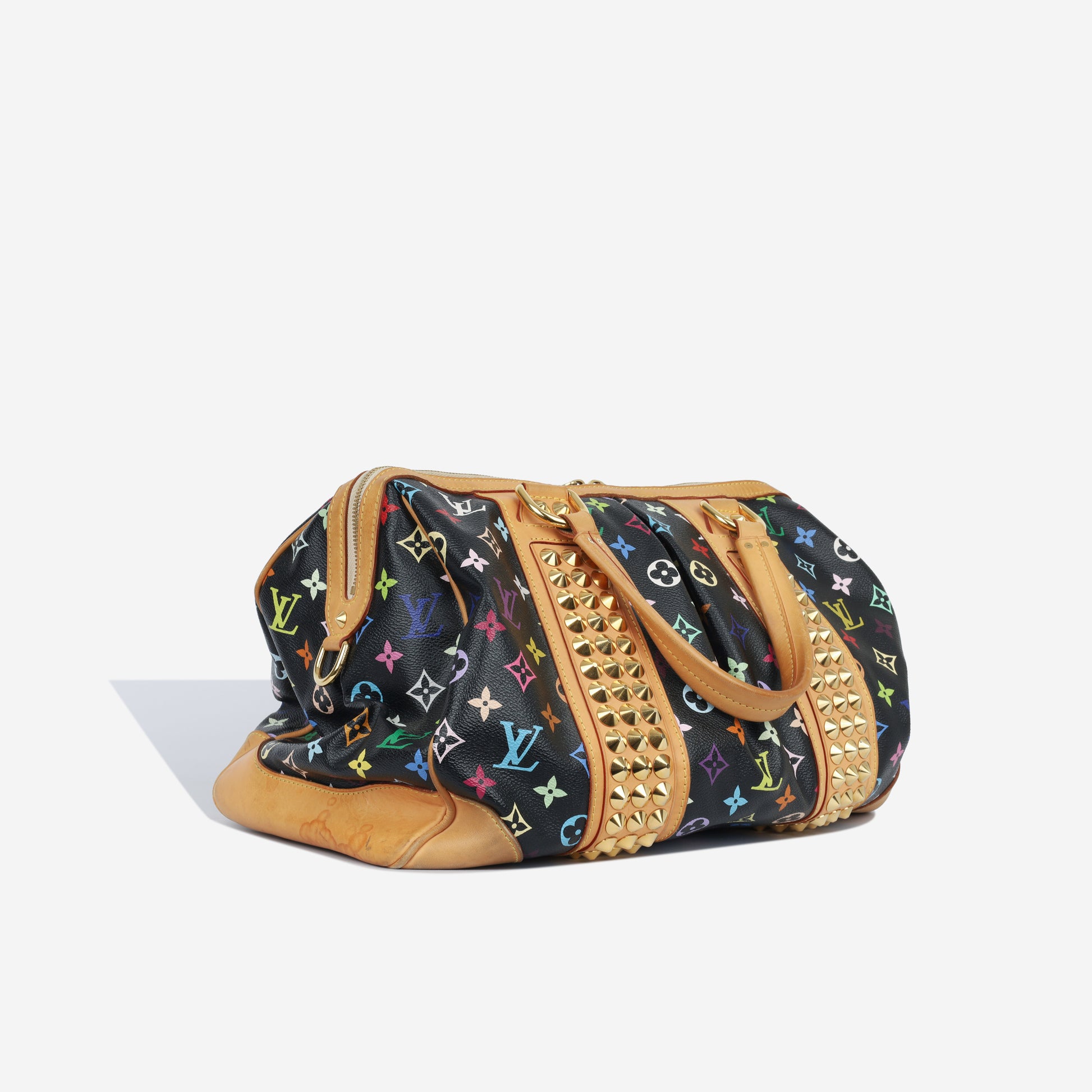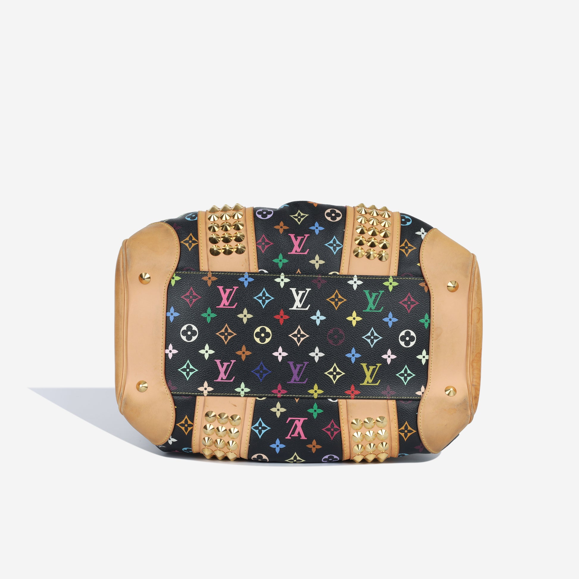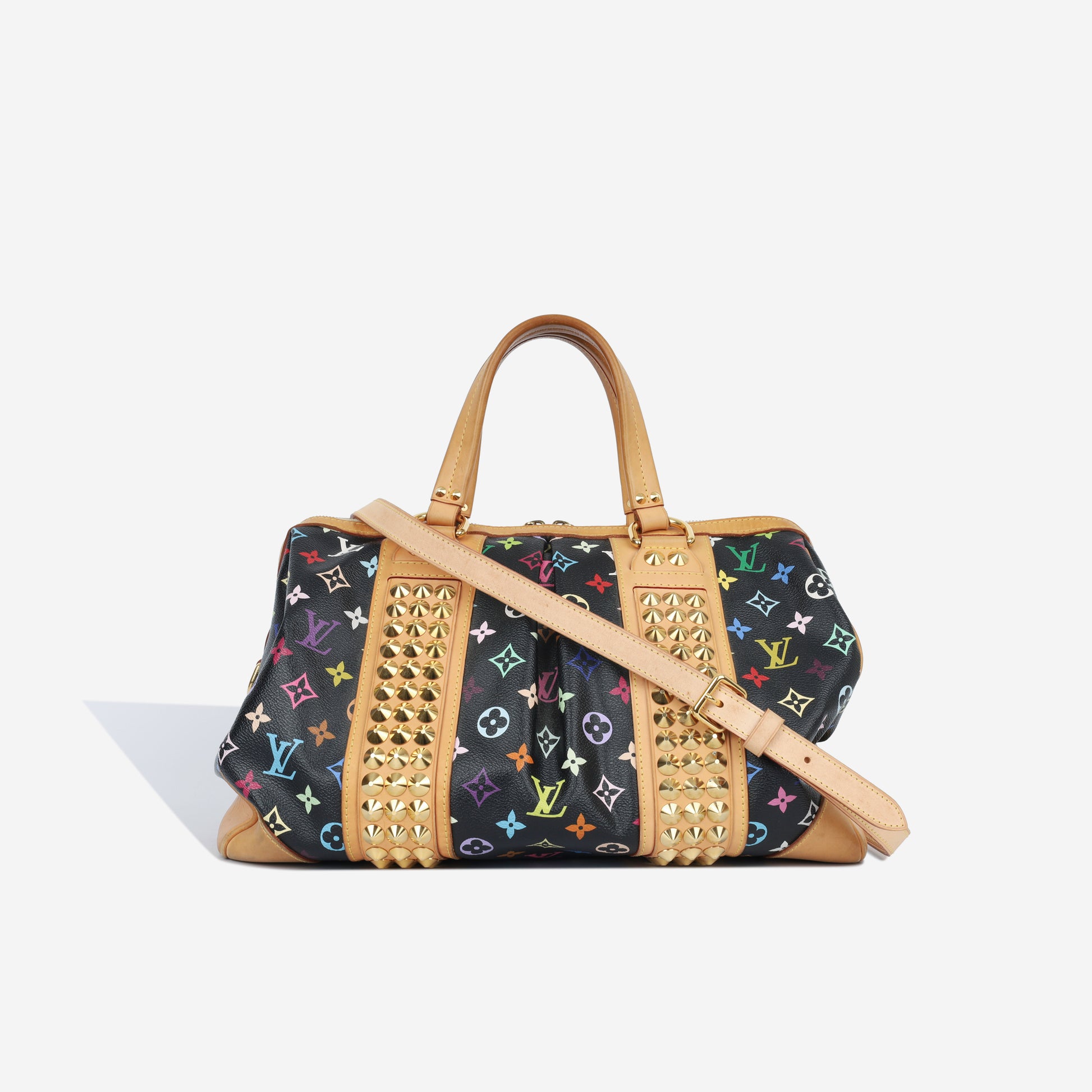 From the limited edition Takashi Murakami x Louis Vuitton collaboration, the Courtney MM is crafted from the iconic Monogram Multicolore canvas, trimmed with the natural Vachetta leather and accentuated with gold stud detailing.