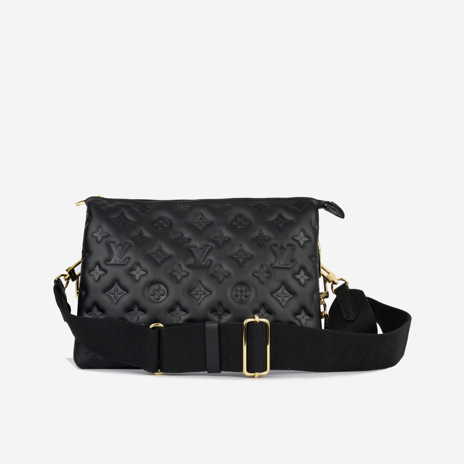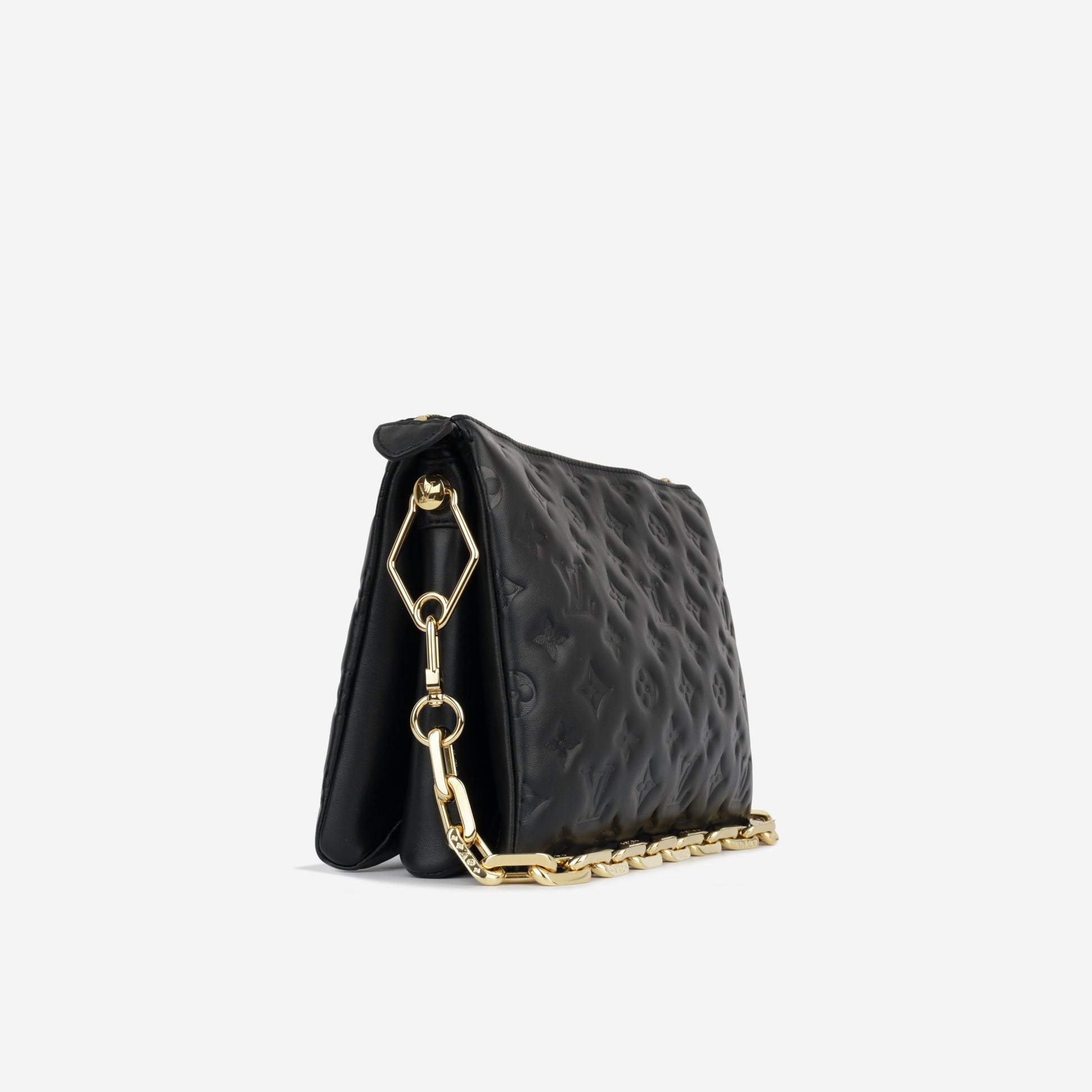Crafted from puffy lambskin leather in monogram empreinte, the Cousin bag is hot off the runway from Fall/Winter collection 2022/2023 collection. It can be worn crossbody with the strap, as a chain baguette or carried under the arm as a clutch.