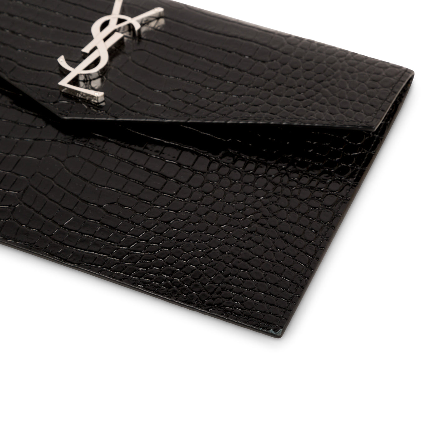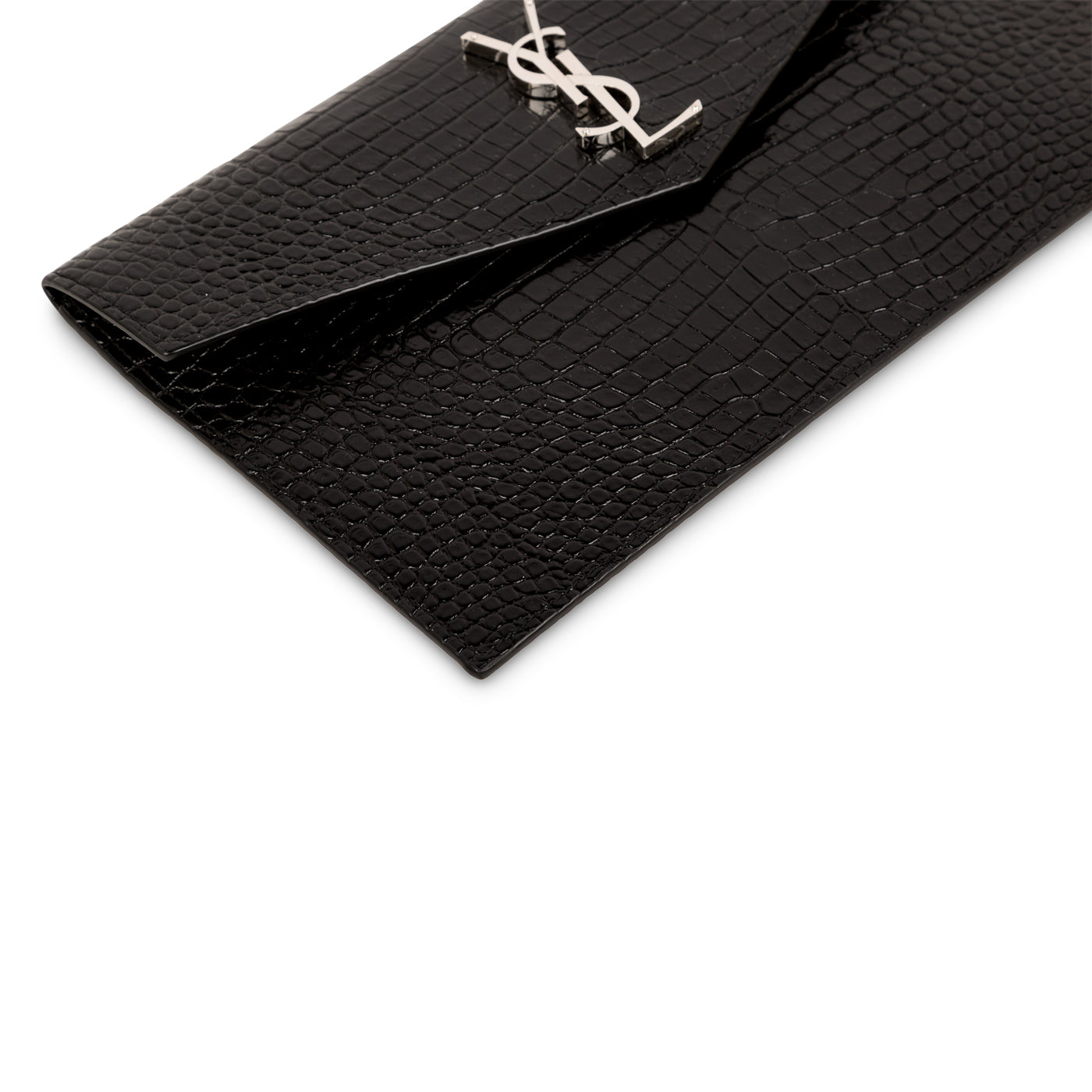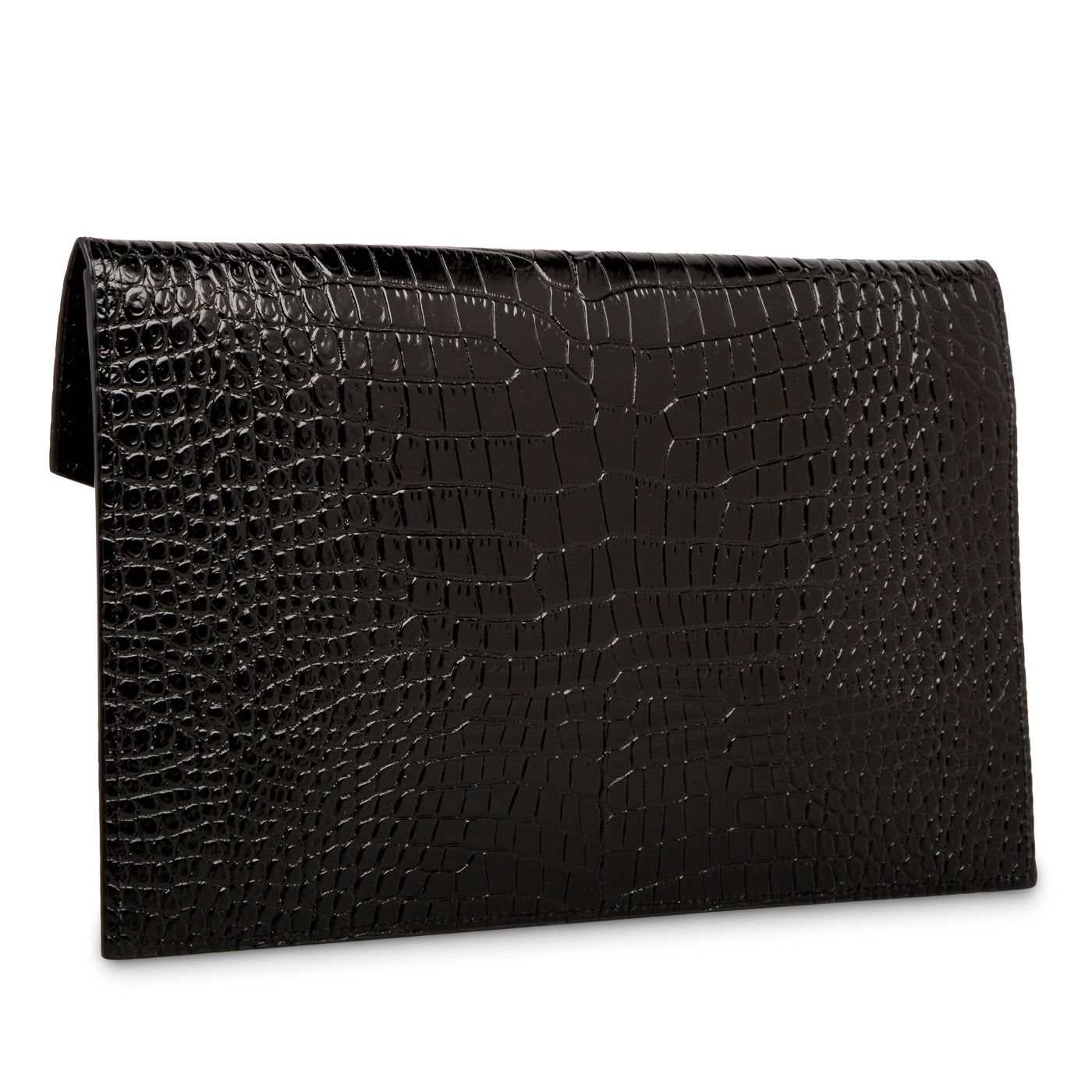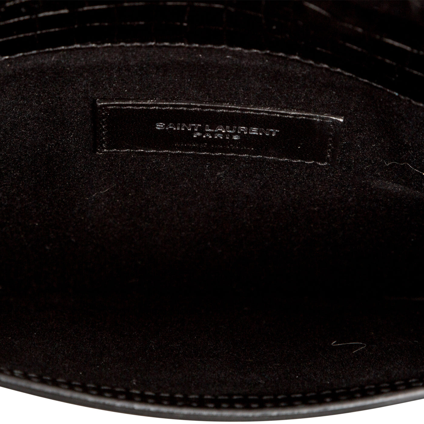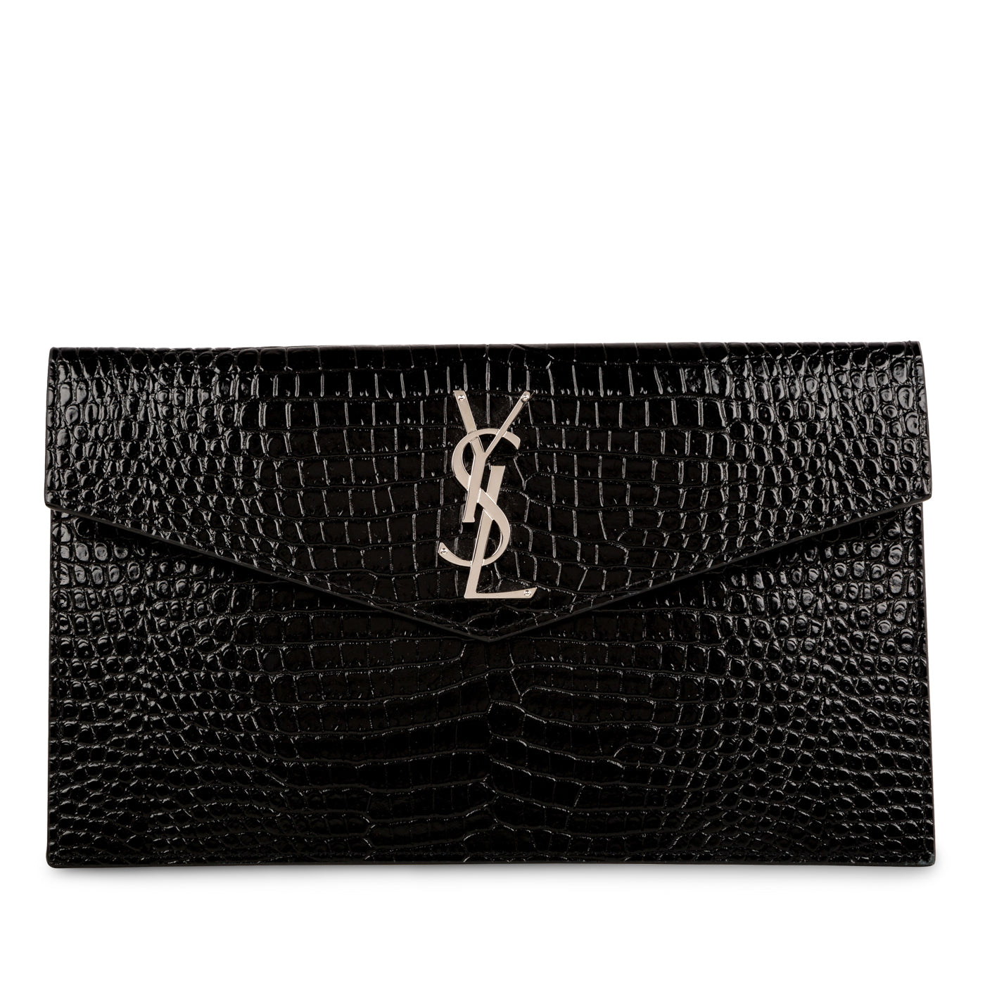Carefully crafted from smooth, black leather, Saint Laurent presents their unique and understated chevron stitched clutch. With its simplistic design and luxurious craftsmanship, this clutch is the ideal accessory for any night out. Featuring gold hardware and YSL logo, boxy silhouette, this simple piece is the perfect compliment to any formal outfit you have in your wardrobe. Sleek, elegant and sophisticated, a timeless piece that will remain in your wardrobe forever.