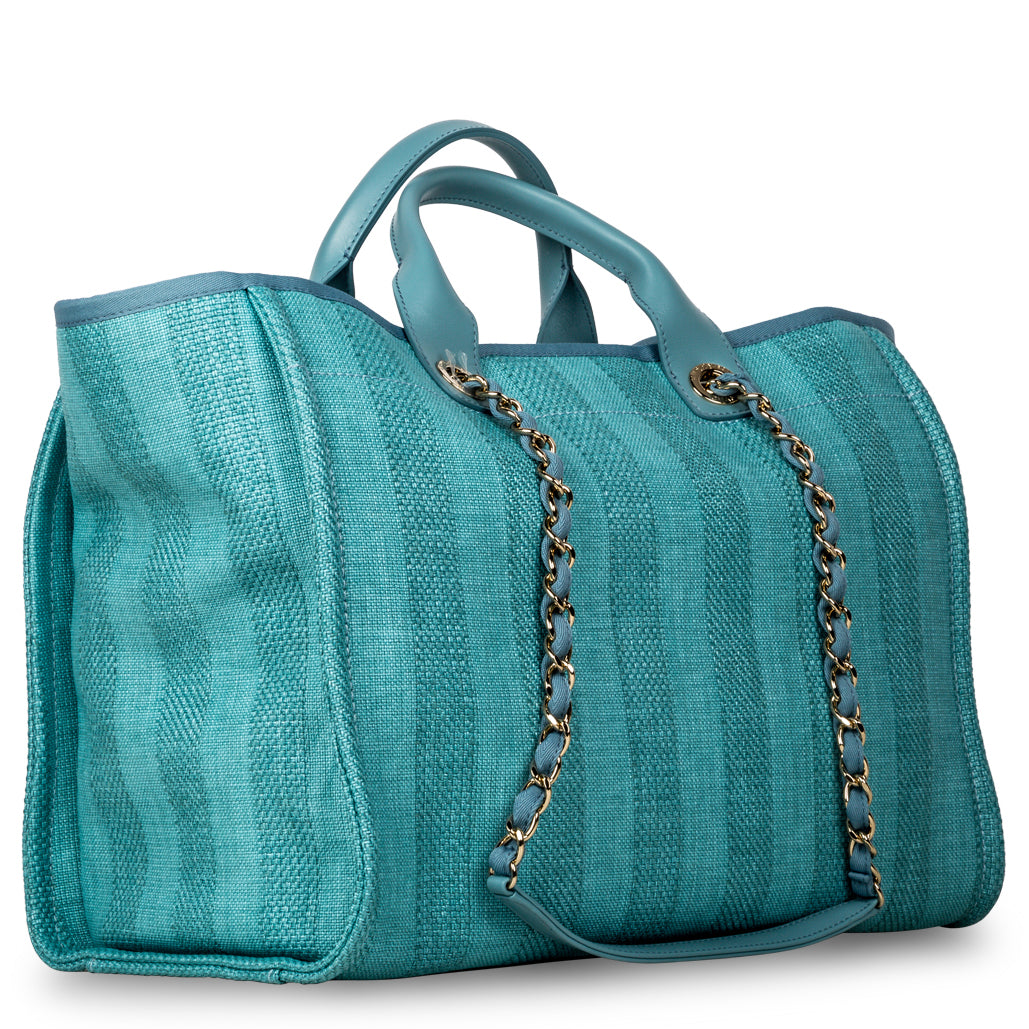 Don't worry girls, we had the same reaction in case you're wondering if you're the only one with their jaw on the floor. Yes, this bag is real and yes, it is for sale - and to say we're obsessed would be an understatement. Carefully crafted from mixed luxurious turquoise fabrics and eye catching champagne gold hardware, the Chanel Deauville handbag is just...beyond stunning, to say the very least. The Deauville is undoubtedly the holy grail of luxury totes. Spacious enough to hold literally everything one would need throughout their day, the Deauville is suitable for travelling, a day at the beach or just basic daily usage. Need to carry your laptop and papers with you to work? The Deauville can easily hold it. Your textbooks for all you international students? No problem. Your dog? Your toddler? Your husband when you don't feel like dealing with him anymore? Girl, go ahead. Jokes aside, the Deauville is an absolute must-have for any woman with a love for luxury and a lot to carry.