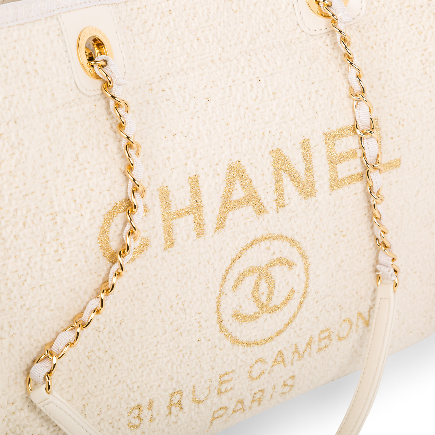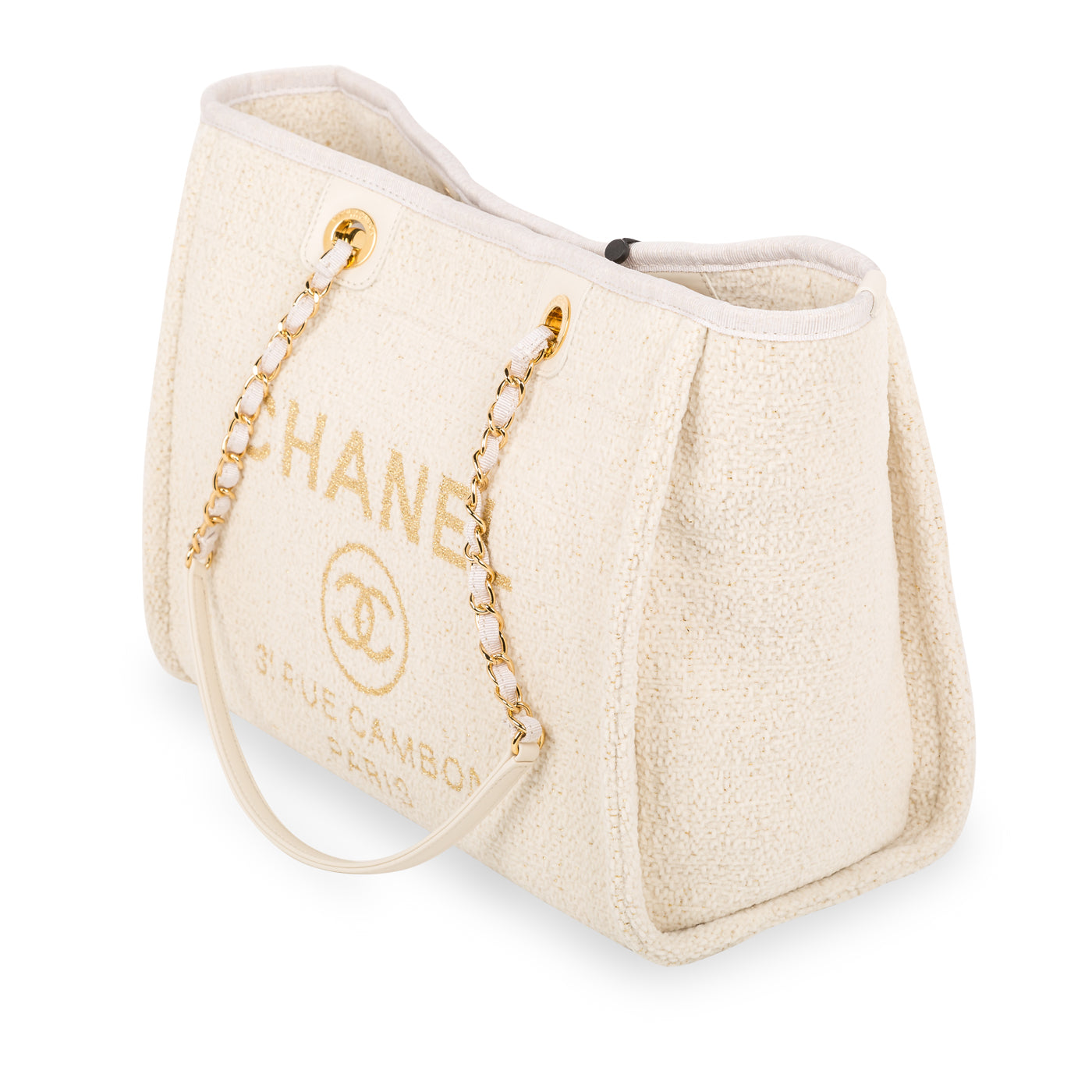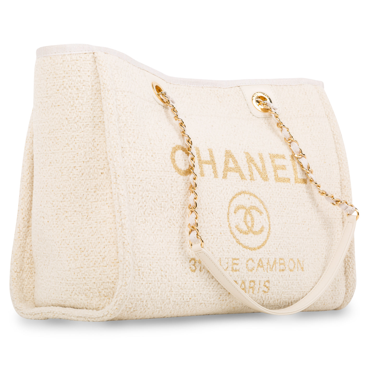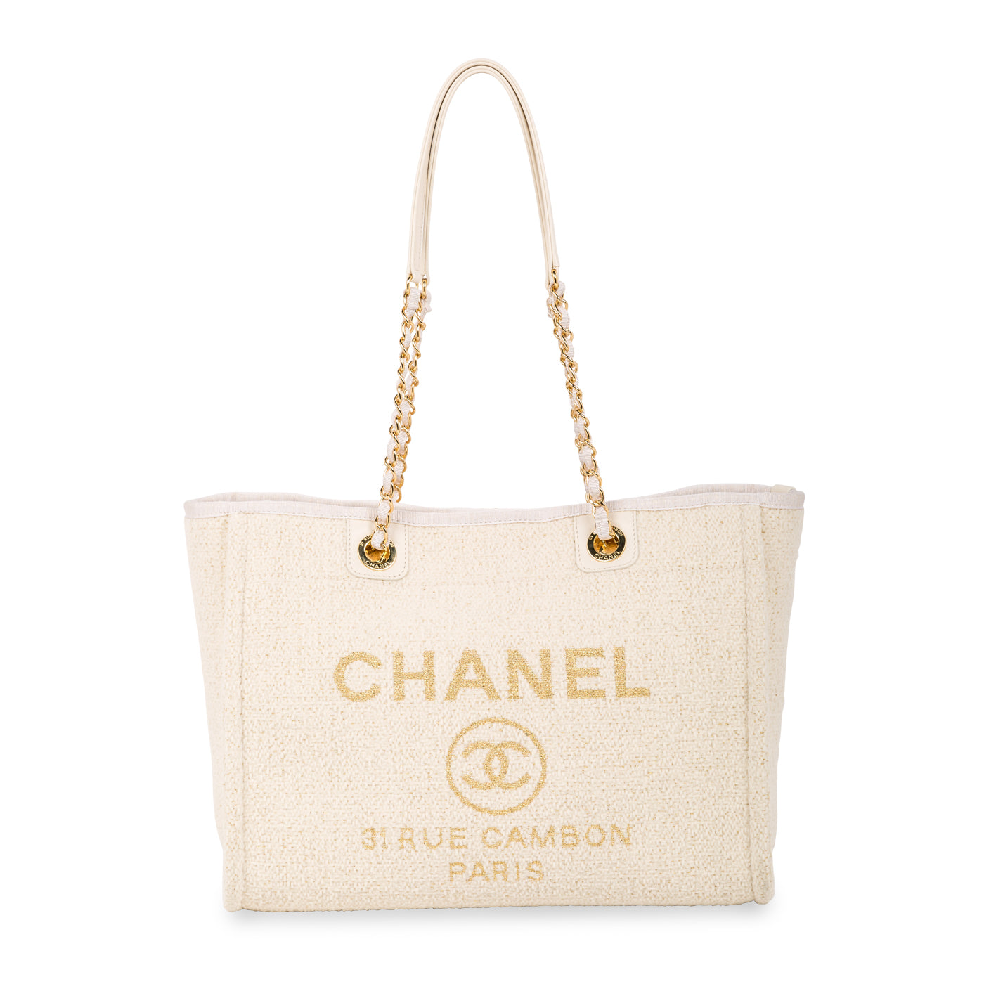 Don't worry girls, we had the same reaction in case you're wondering if you're the only one with their jaw on the floor. Yes, this bag is real and yes, it is for sale - and to say we're obsessed would be an understatement. Carefully crafted from luxurious grey and white tweed with black leather details, the Chanel Deauville handbag is just...beyond stunning, to say the very least. Accentuated by silver tone hardware and prominent glittery charcoal writing, this iconic bag is basically the holy grail of luxury totes. Spacious enough to hold literally everything one would need throughout their day, the Deauville is suitable for travelling, a day at the beach or just basic daily usage. Need to carry your laptop and papers with you to work? The Deauville can easily hold it. Your textbooks for all you international students? No problem. Your dog? Your toddler? Your husband when you don't feel like dealing with him anymore? Girl, go ahead. Jokes aside, the Deauville is an absolute must-have for any woman with a love for luxury and a lot to carry. Always sleek, always stylish and always glamorous, invest in the Chanel Deauville now.