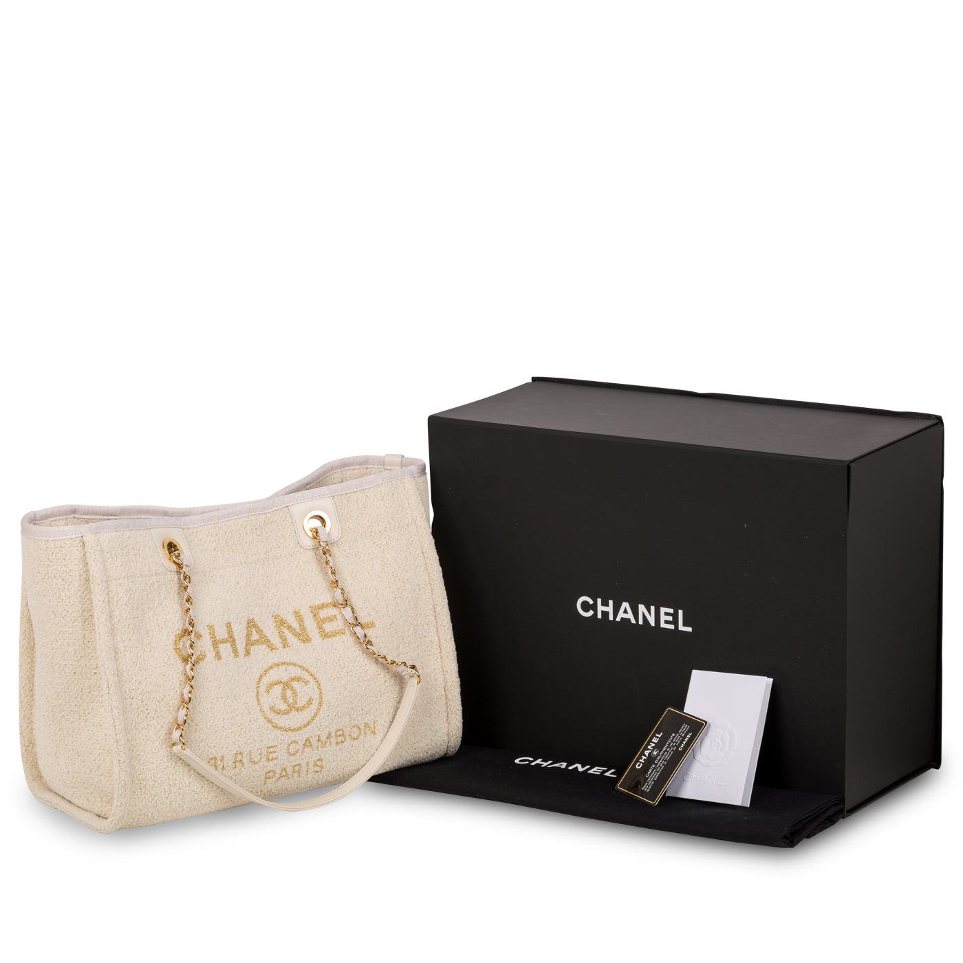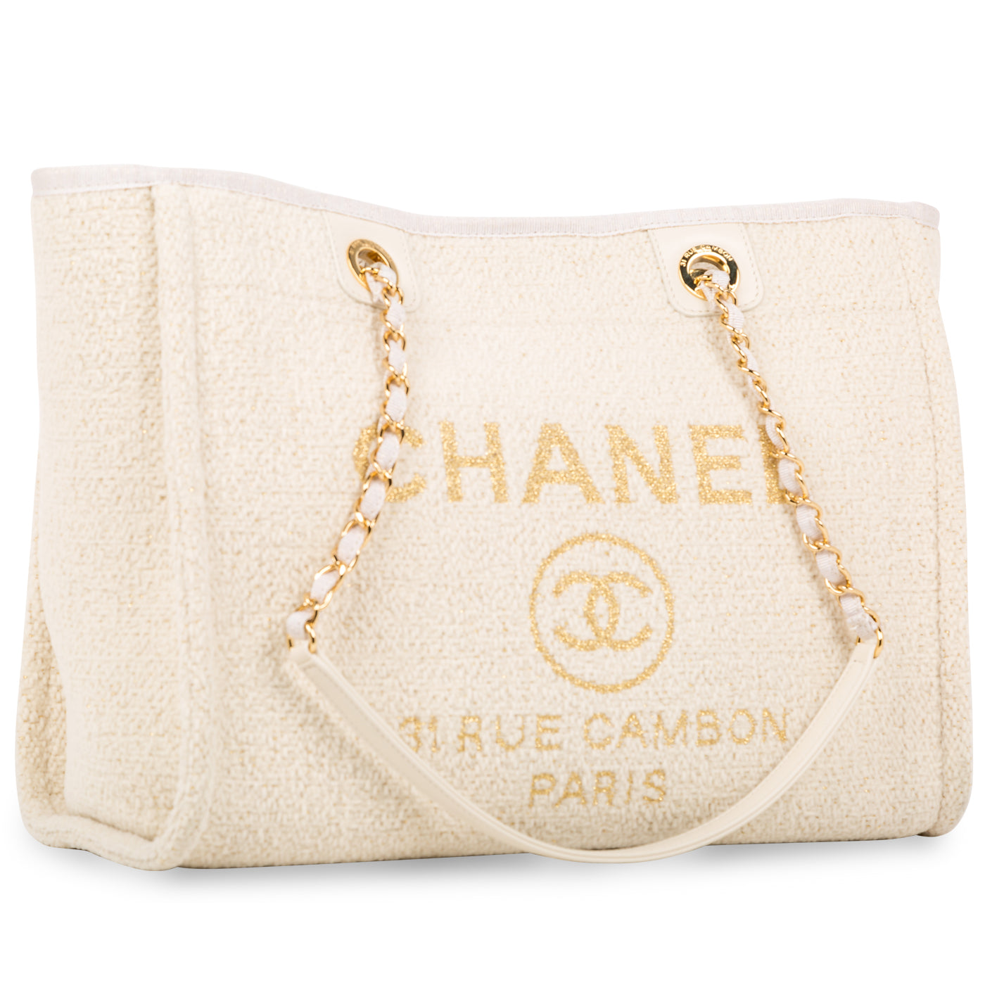 - "Chanel", "Rue Cambon Paris" and CC logo in Gold Glitter Material