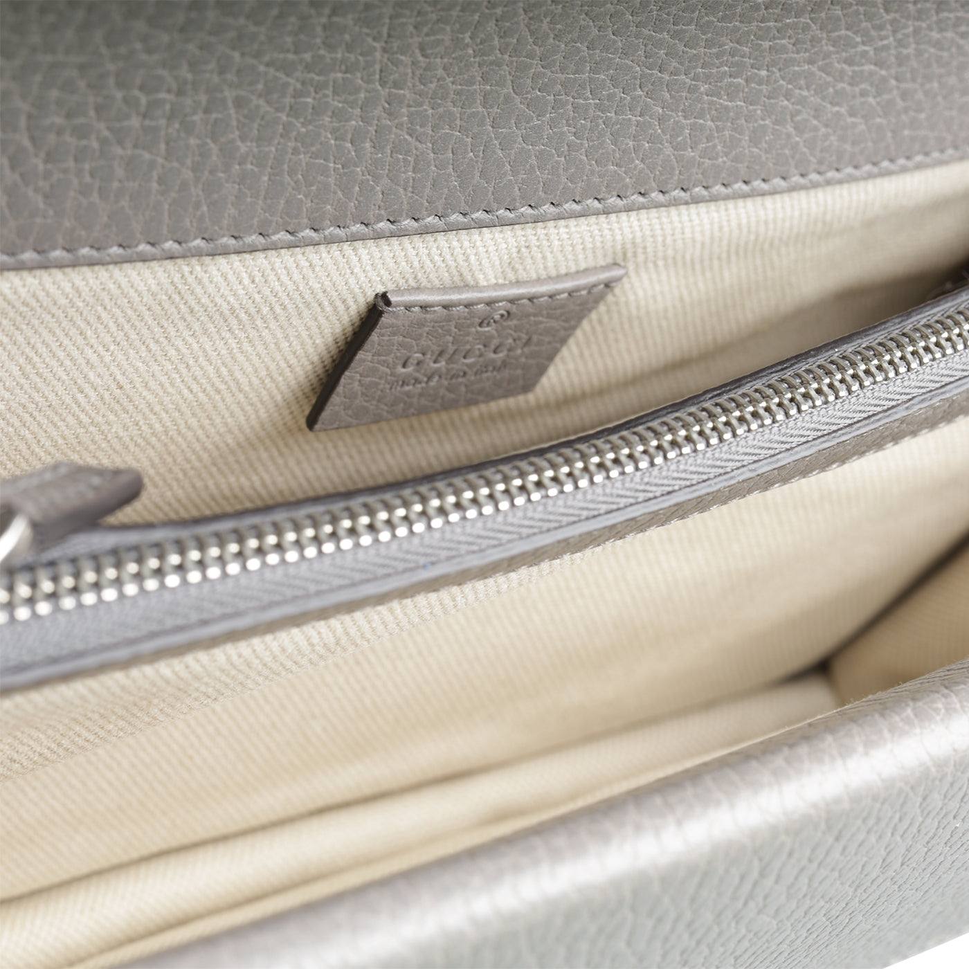 Inspired by the Greek God of wine and celebration, the Gucci Dionysus is an absolute must have for any woman with a love for luxury and a special spot for monograms. An instant classic, the Dionysus has become one of the most coveted bags of the past five years. This particular piece is decorated in grey grained leather and the signature tiger clasp, this shoulder bag can easily fit all your every day essentials comfortably inside.