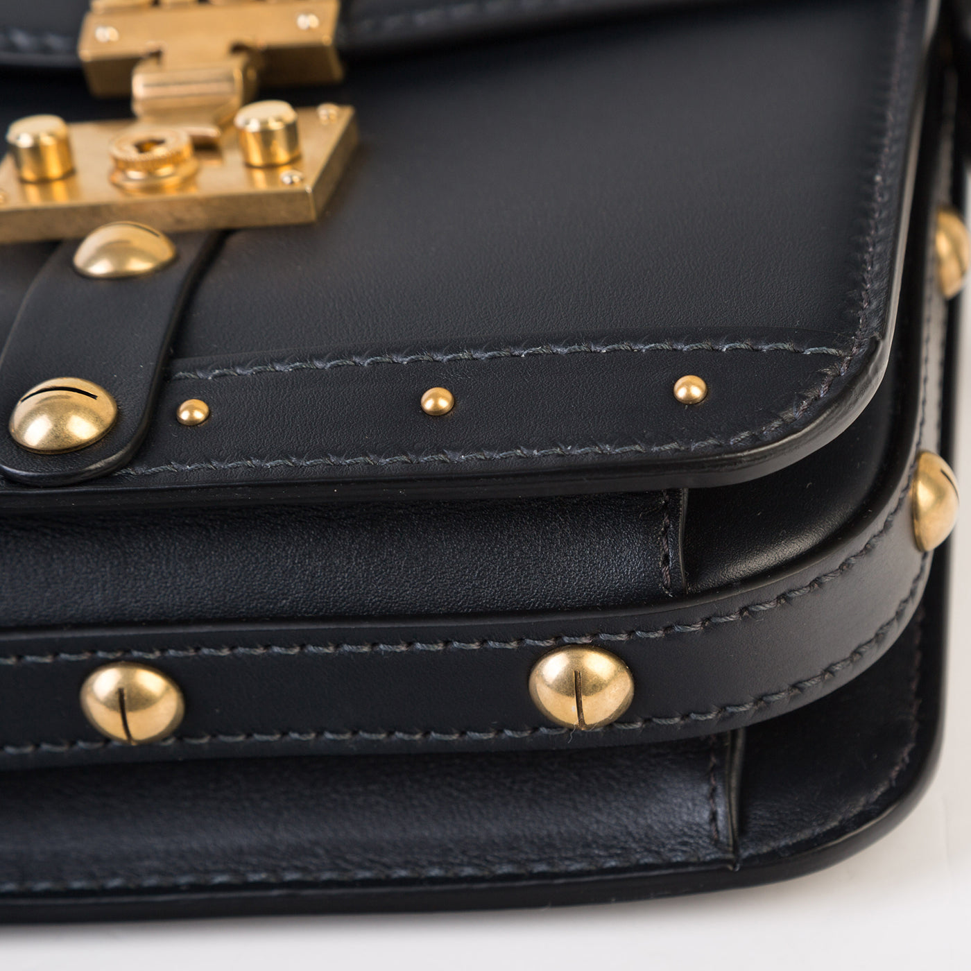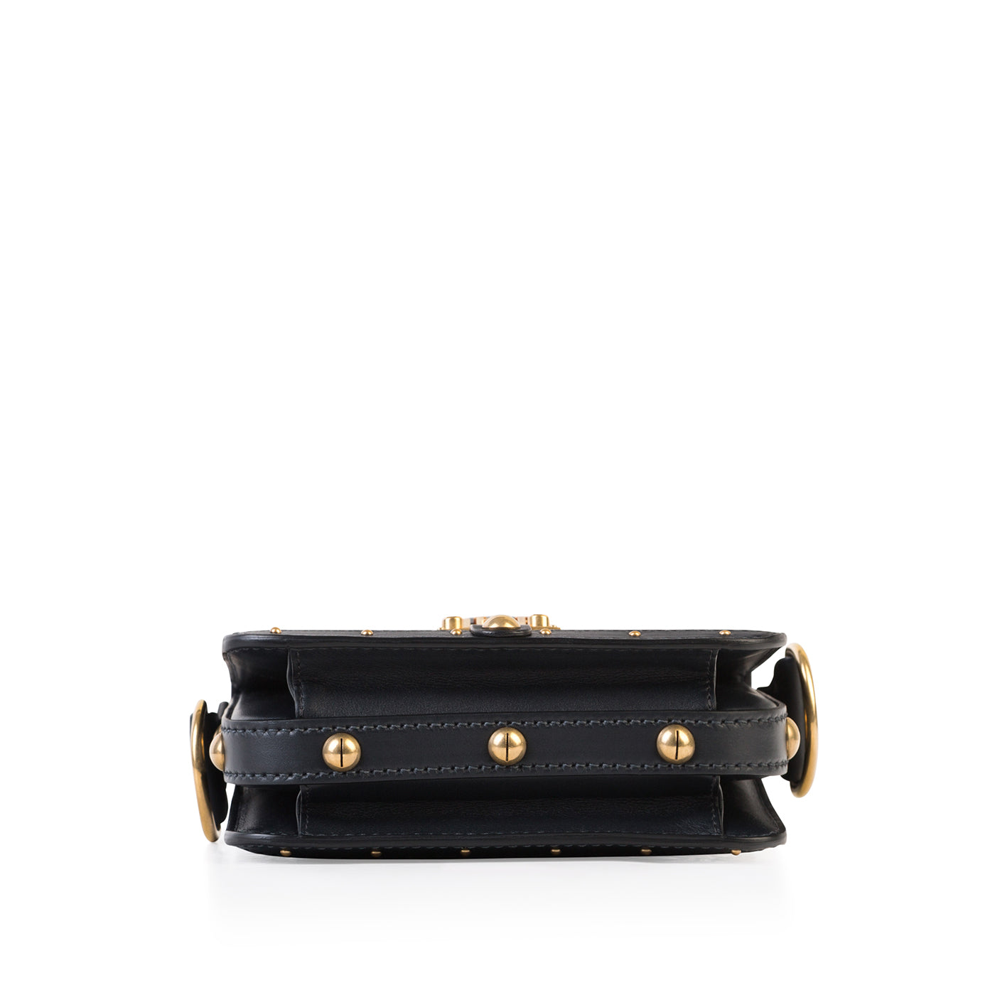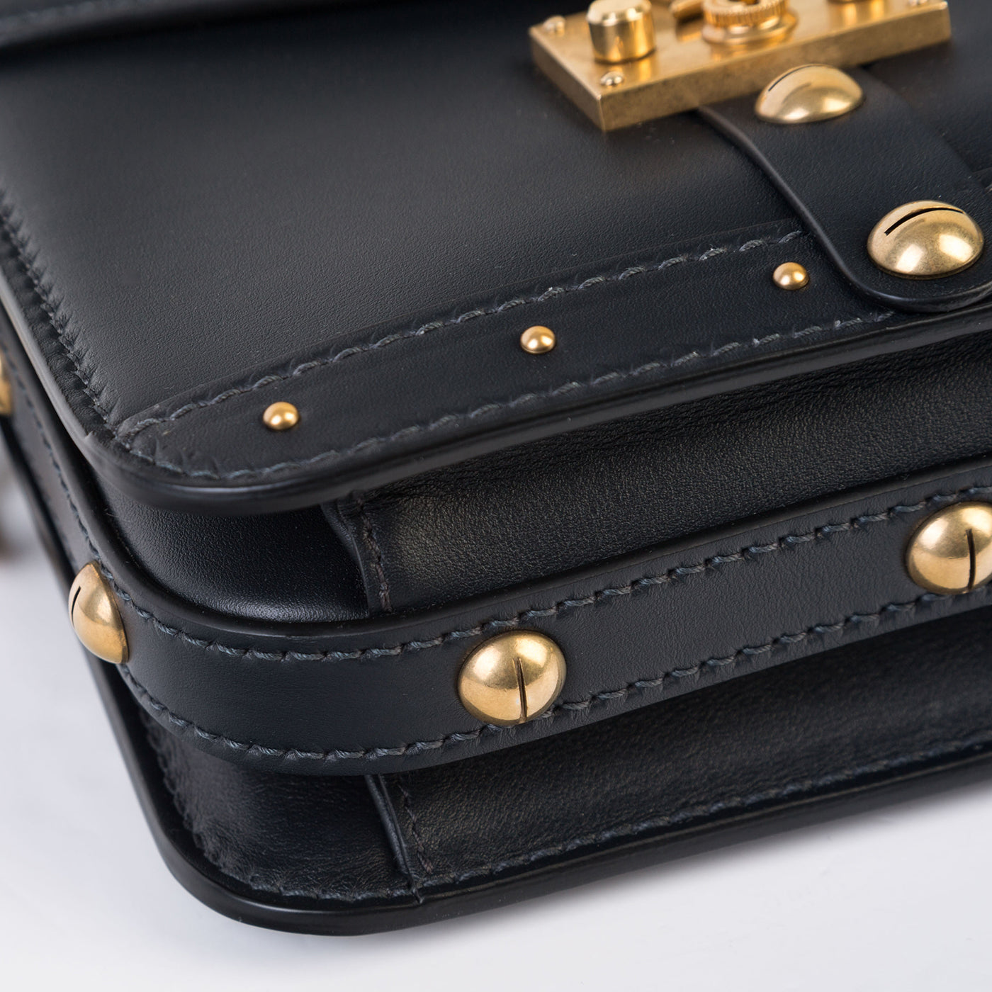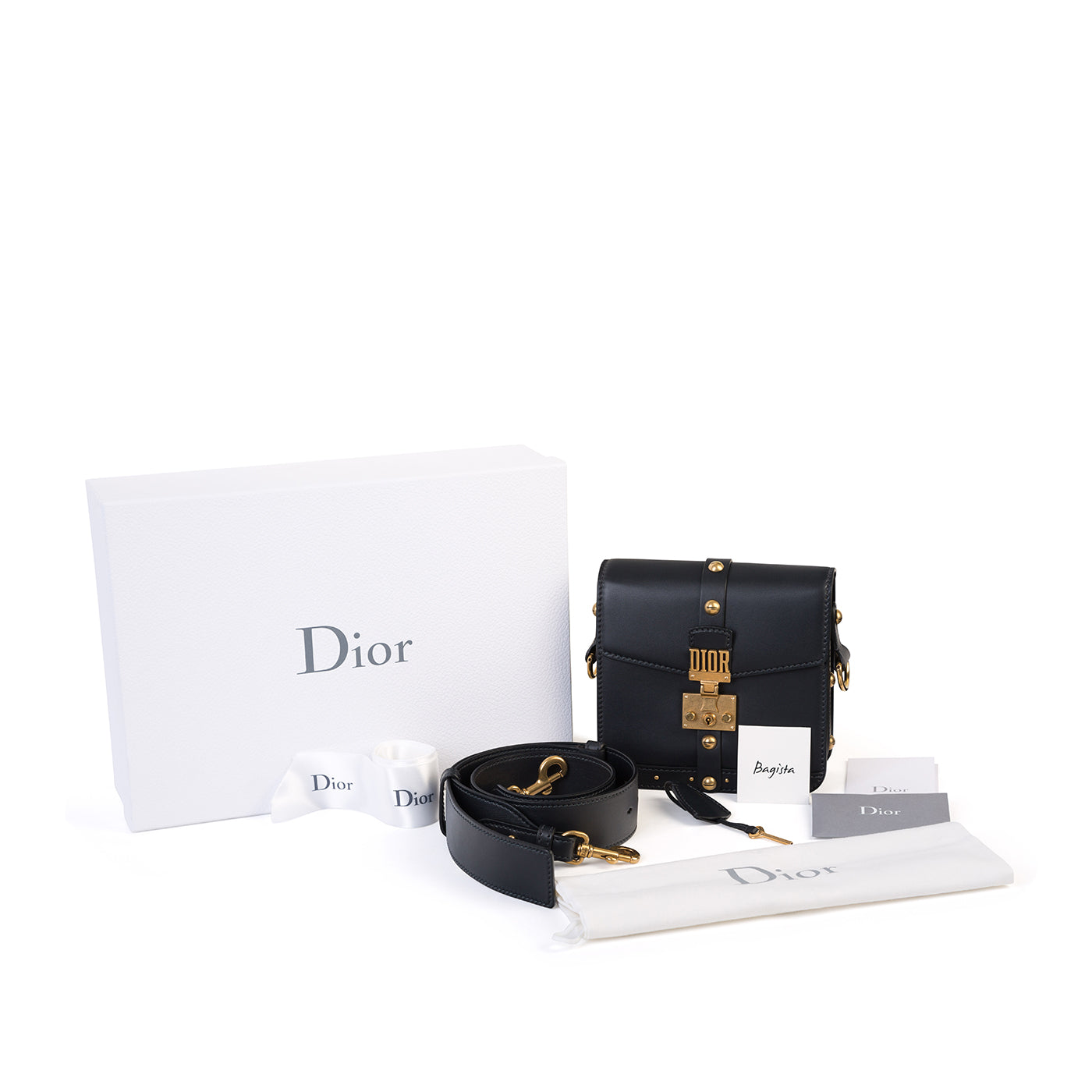 Under the creative direction of Maria Grazia Chiuri, Dior launched their new It-Bag in 2017, the DiorAddict Square Flap. Carefully crafted from smooth black leather featuring gold tone hardware and studs and prominent Dior logo, the Square Flap is made for the modern young woman with a fashion forward sense of style. Innovative and contemporary, the Square Flap also gives us major vintage vibes with its messenger-like silhouette. Edgy, playful and effortlessly chic, this bag is the ideal compliment to any casual look. Whether you're running errands or grabbing coffee with your girlfriends, the DiorAddict Square Flap is the perfect companion.