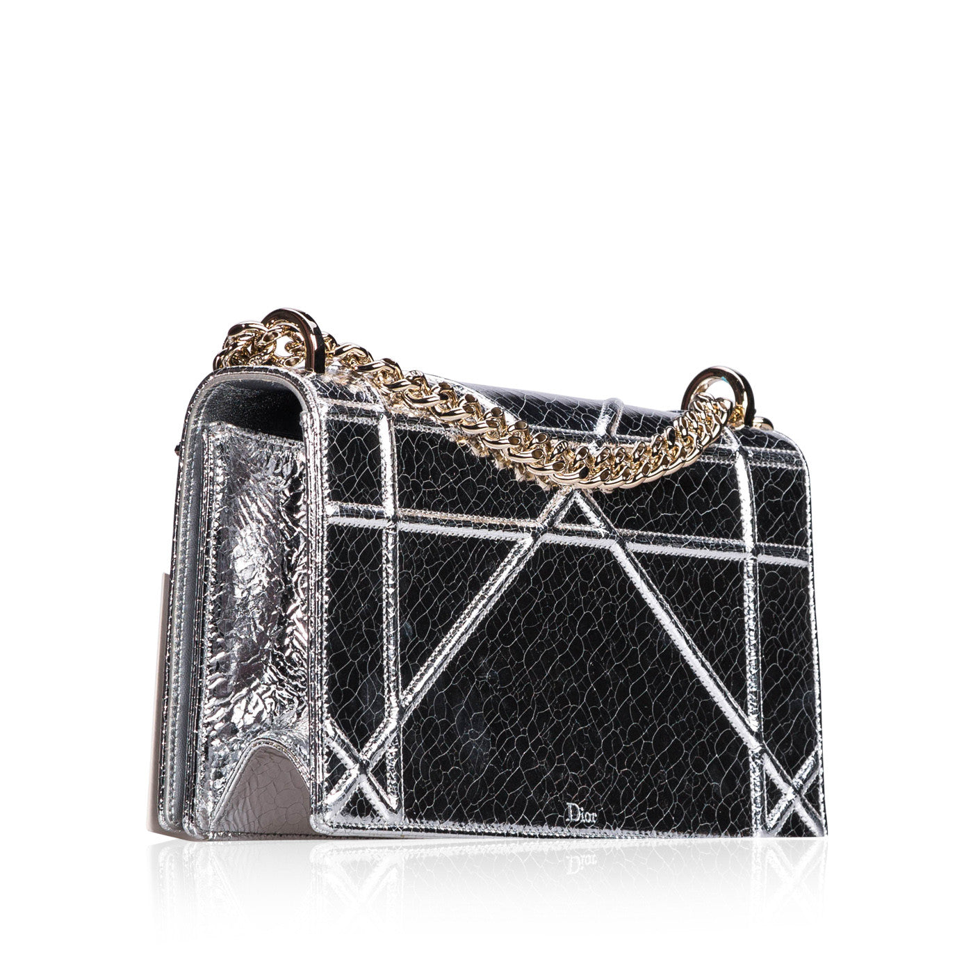 This Diorama bag is from the Fall/Winter 2016 collection and is a unique and stunning piece. The exterior is canvas and covered in a velvet monogram. The striking blue stitching stands out behind the black velvet and is perfectly complimented by the gold chain strap and gold closure. This bag is glamorous and perfect to wear for a formal evening or dinner with friends. As this bag is no longer available, don’t miss your chance to own it!