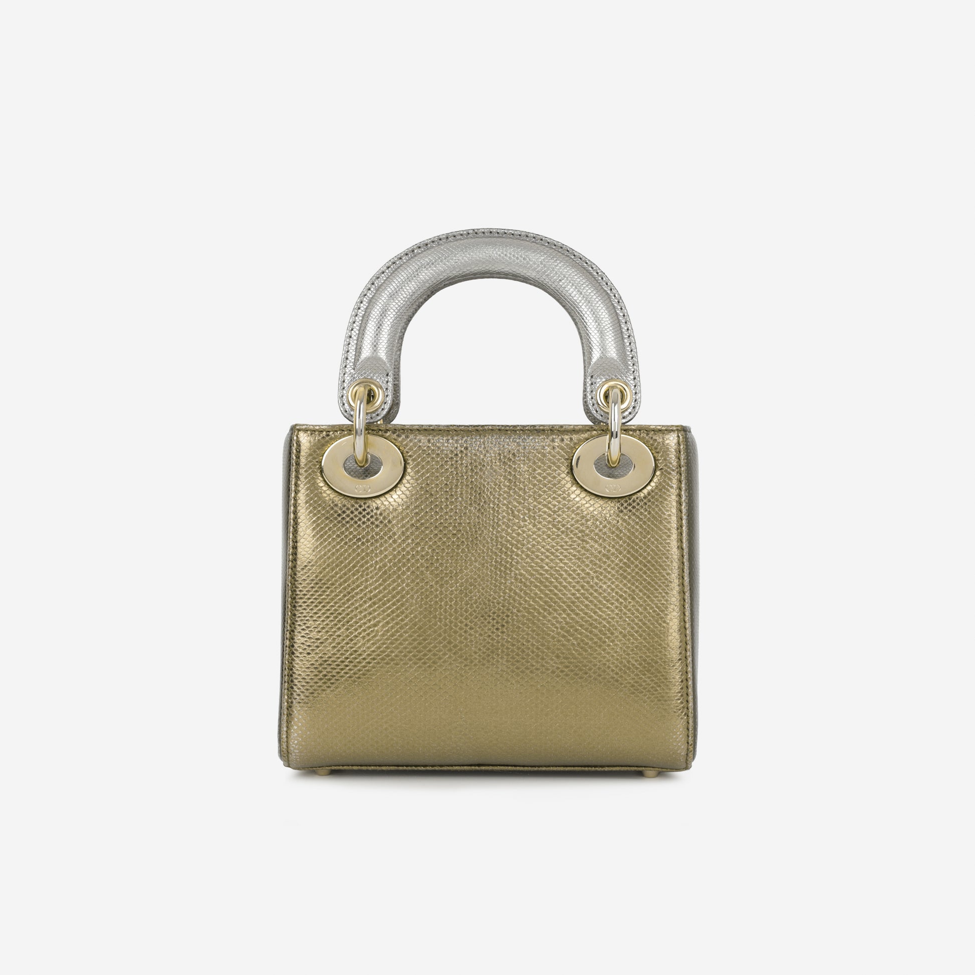 Dior Mini Lady Dior - Silver / Gold Metallic Karung Snake| Champagne Gold Hardware