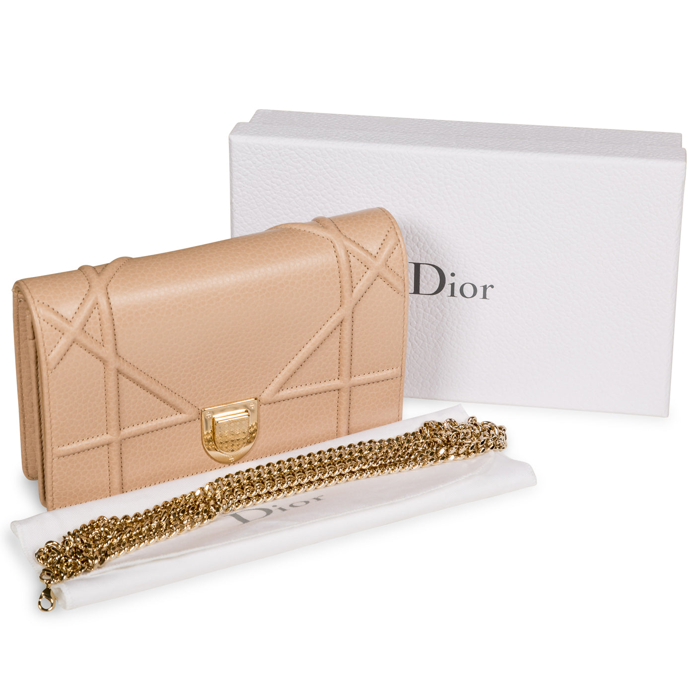 The Diorama debuted in Dior's Spring / Summer 2015 collection and to say it took the fashion lovers of the world by storm would be an understatement. The smallest from the beloved line, this Diorama Wallet-On-Chain is one of the cutest, prettiest bags we’ve seen in a while. Carefully crafted in nude/beige, textured leather and accentuated by gold tone hardware, this piece is truly special and well worthy of any luxury handbag collection. Colourful but neutral, the rich hue allows you to pair this bag with absolutely anything you may have in your wardrobe. The perfect balance between fashion and function, this Diorama WOC is sleek and stylish, but compact and practical at the same time. A timeless classic from the French fashion house, the Diorama WOC is a true must-have for any woman with a love for luxury and all-things Dior.