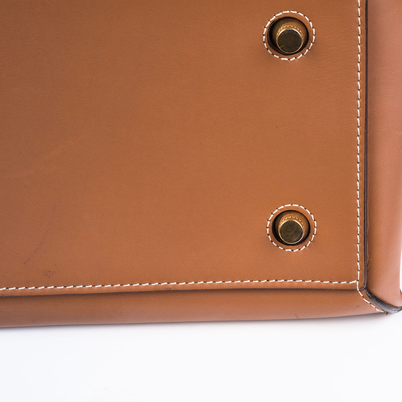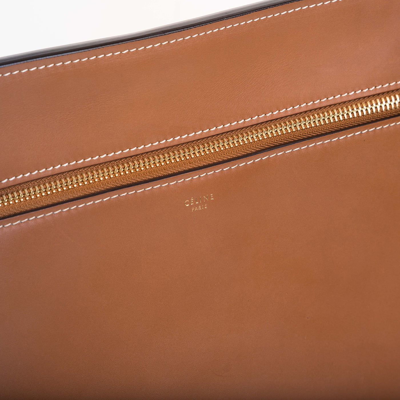 Introduced in Céline's Spring / Summer 2013 collection, the Edge bag is the ideal every day bag for the modern woman. With its smooth, tan leather and boxy, square silhouette, the Edge bag is understated and elegant. Céline is acclaimed for its low-key aesthetic and this bag is no exception. Tasteful and discreet, the Edge bag is a prime example of "if you know, you know." Spacious and lightweight, this bag is perfect for any woman on-the-go with a simple sense of style. Suitable for a professional work environment, but also an easy compliment to any casual look. The Edge is sleek, sophisticated and stylish and a true must-have for any Céline lover!