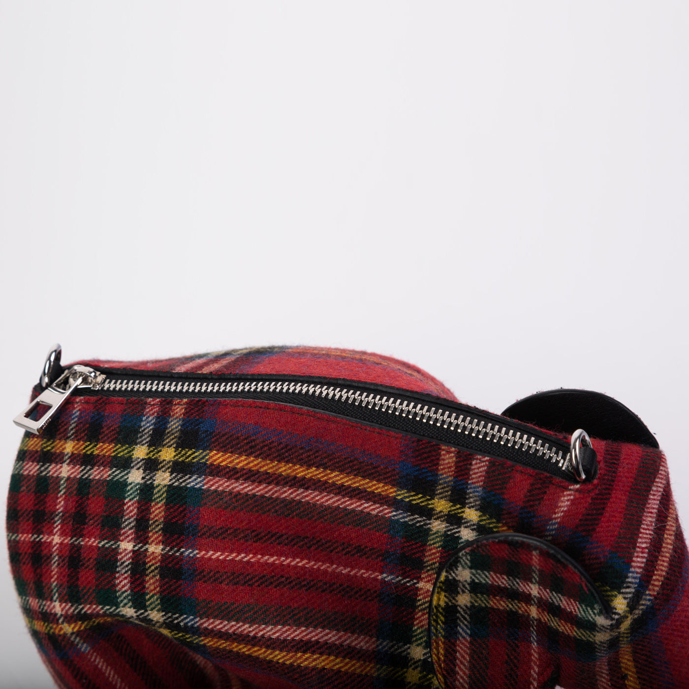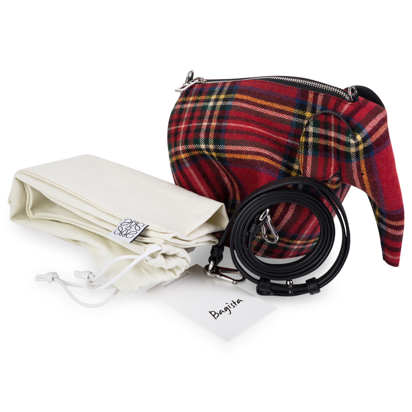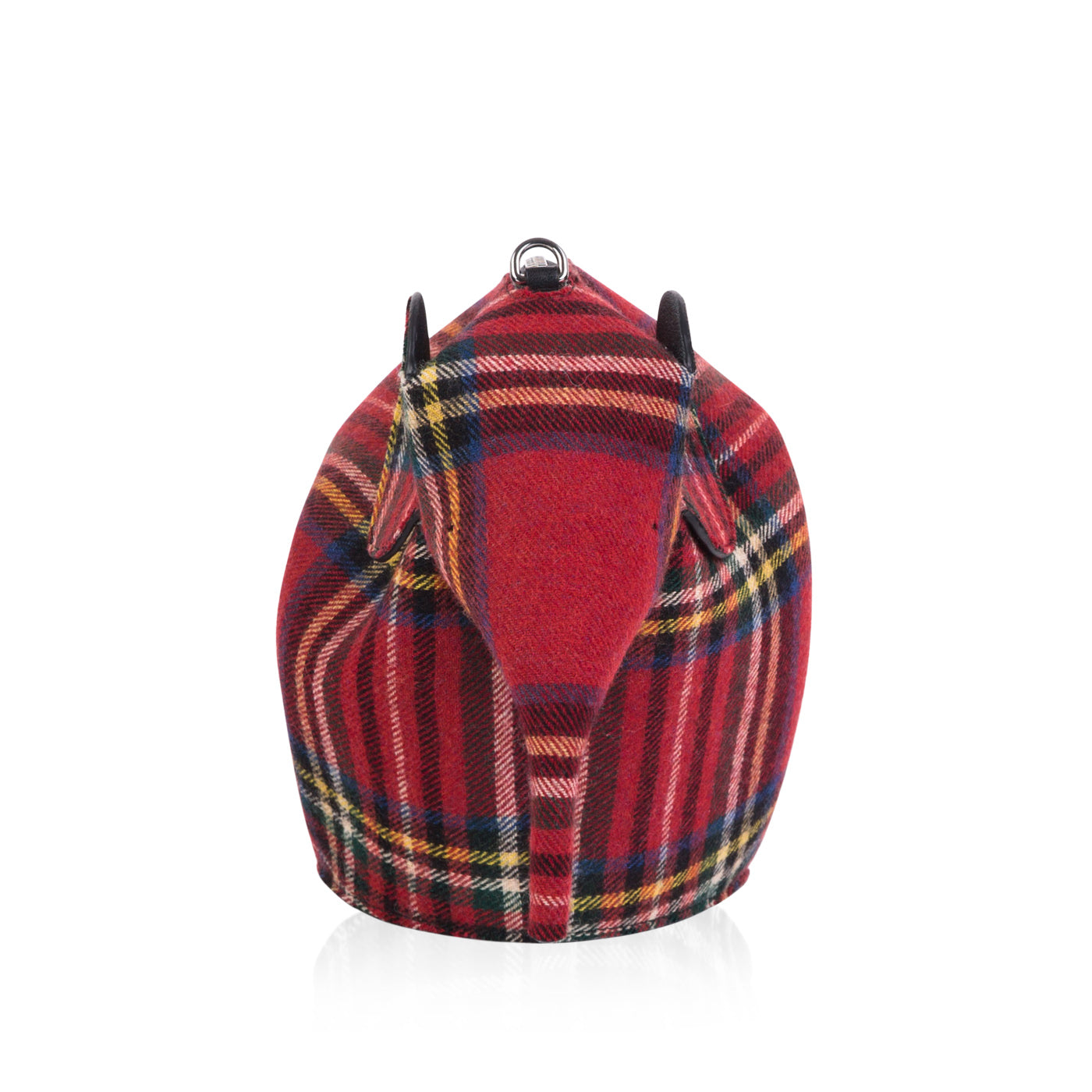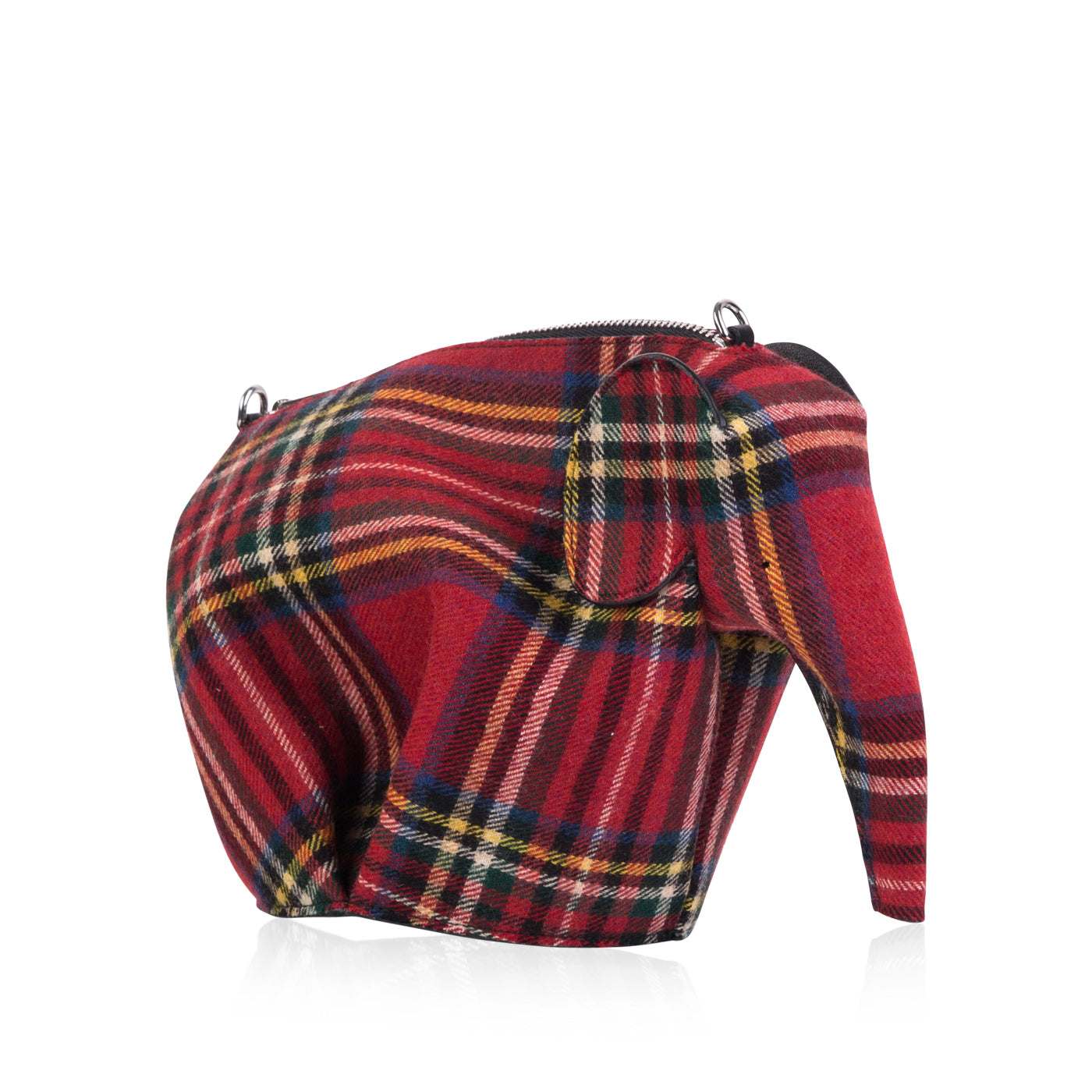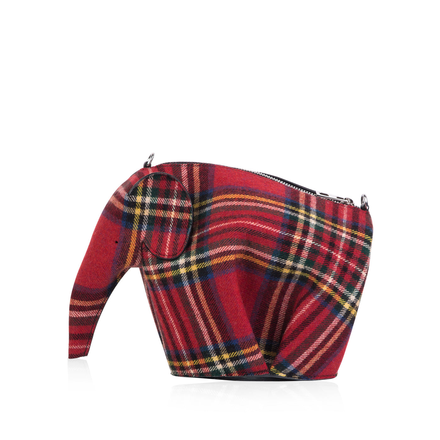 This Loewe Elephant Bag is an adorable accessory. Made from wool with a quirky tartan print with a lovely Scottish feel, featuring the five colours, red, yellow, white, green and blue. The bag is perfectly crafted into an elephant silhouette. The bag comes with an removable and adjustable leather strap which can be attached to the bag hooks on either side. Grab this unique one fast! Style with black clothing to enhance this bag's individuality.