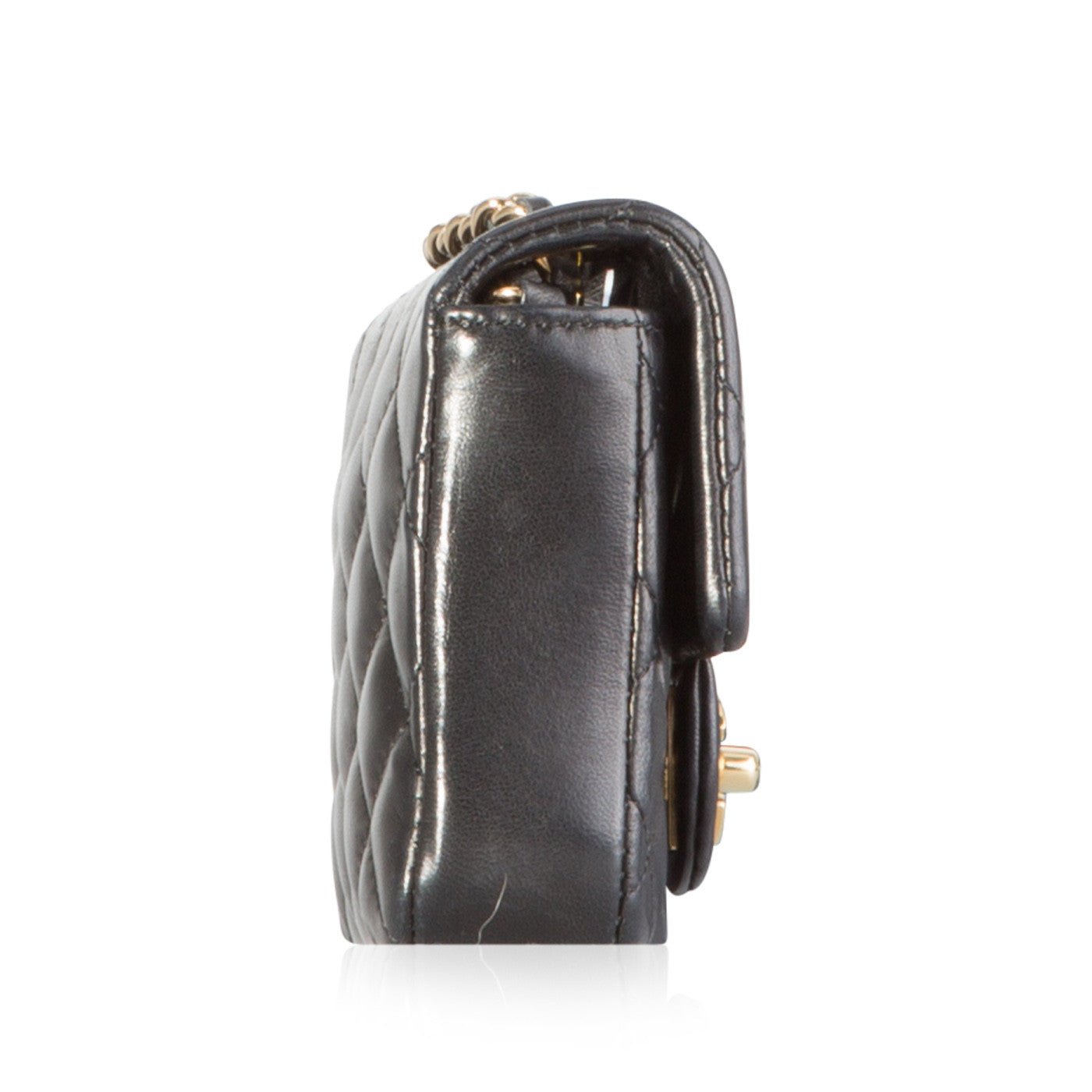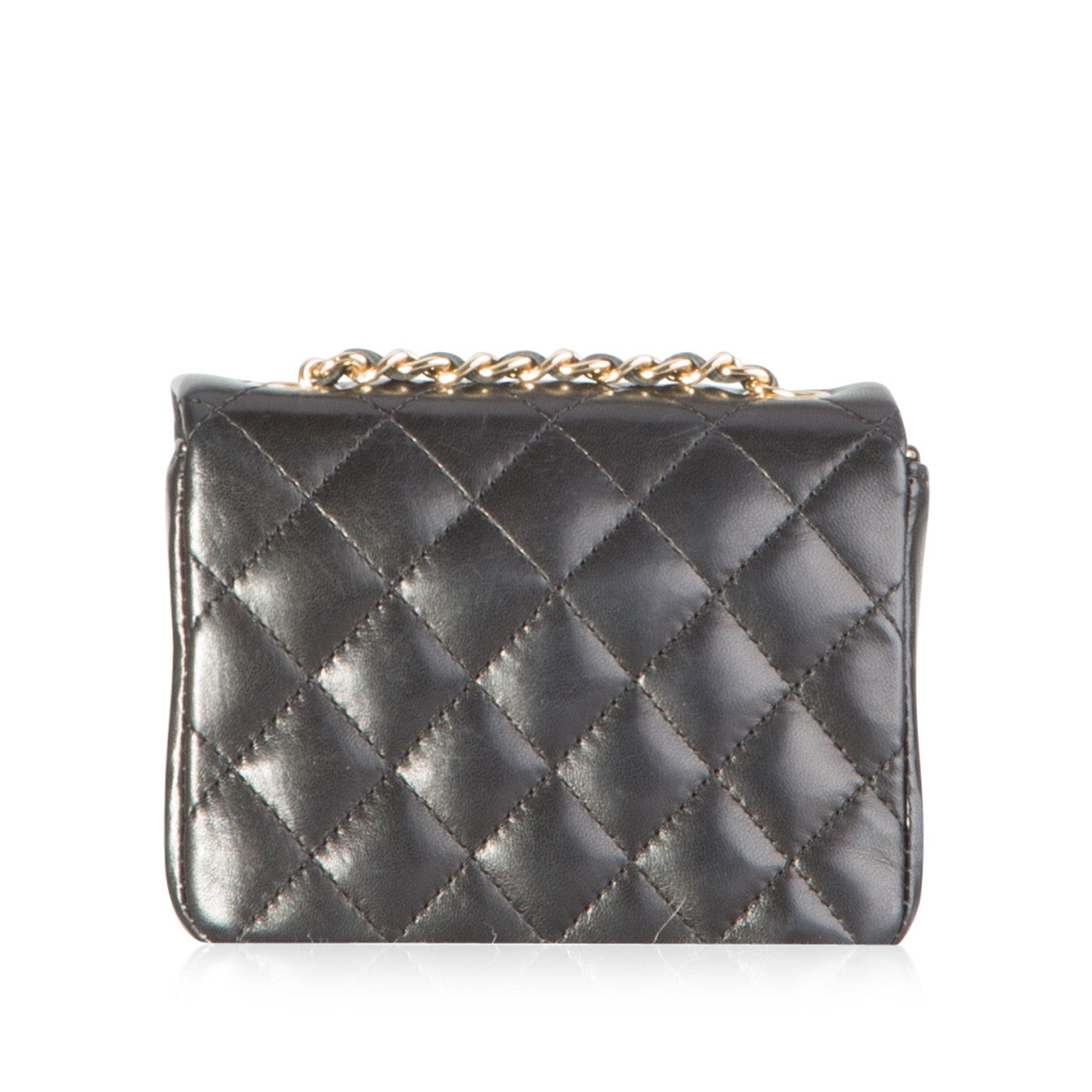 The smallest version of the iconic Classic Flap, the extra mini features the classic quilt, interwoven chain and leather shoulder strap. Can be worn as a cross body, shoulder bag or even as a clutch bag.