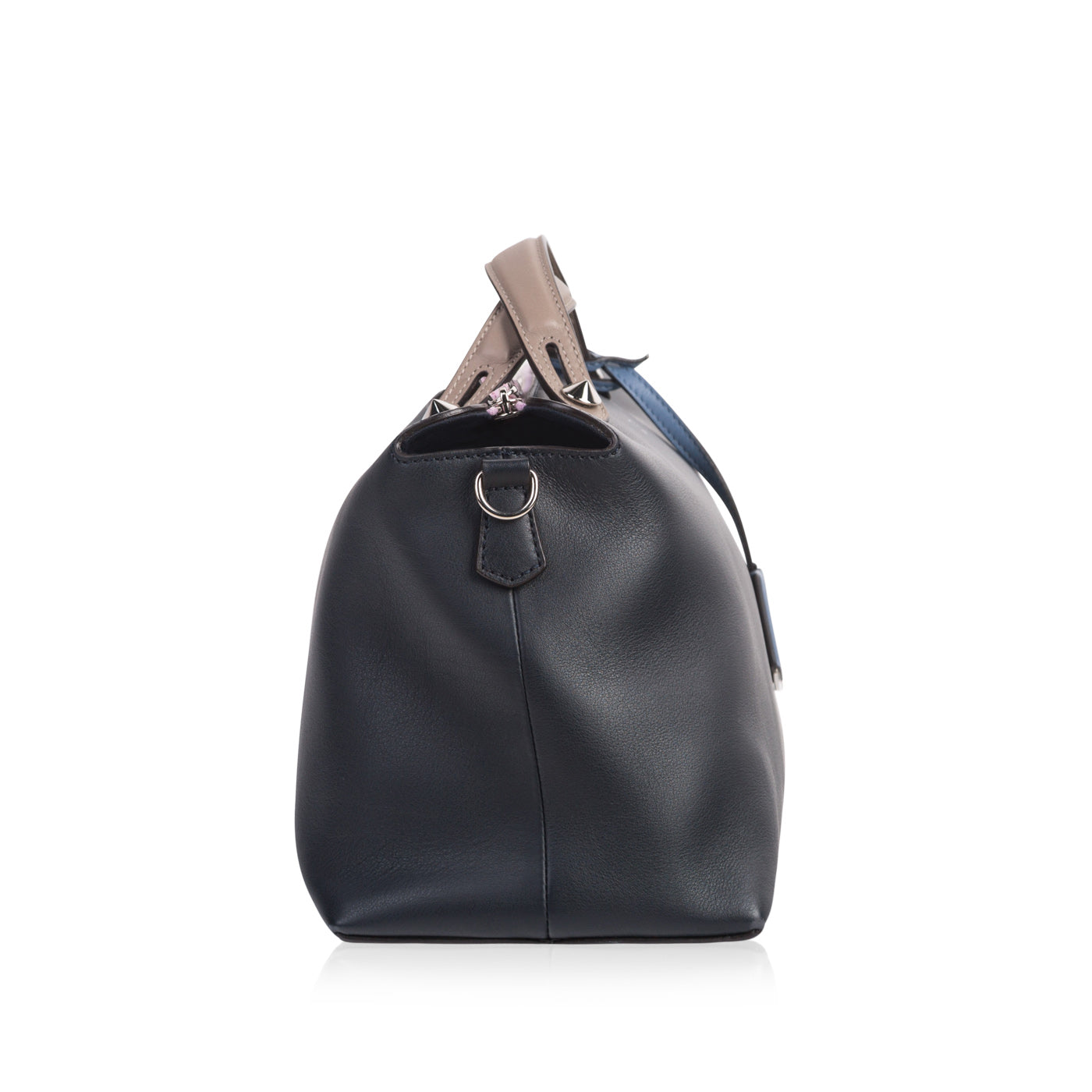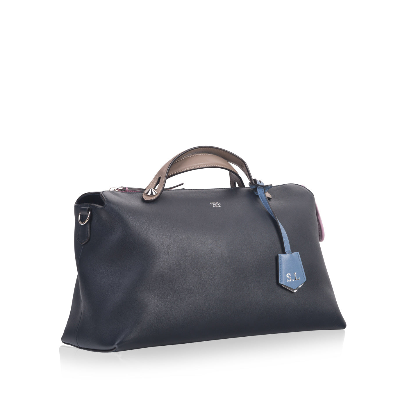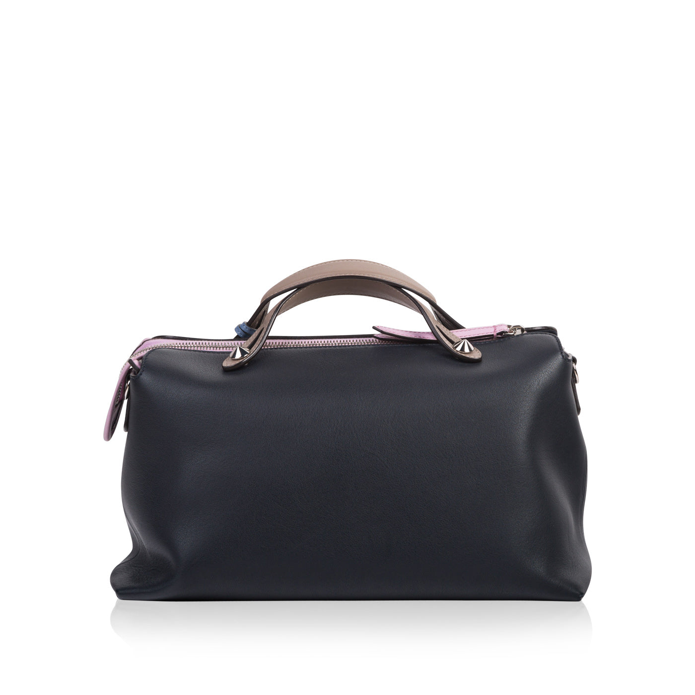 Fendi presents its By the Way bag - a perfect option for a woman with a love for subtle colour, looking for practicality, and style. With in a smooth leather navy body, pink zip close, nude top handles, and light blue Fendi tag - the By the Way offers the best of both worlds when it comes to function and fashion. It's fun but sophisticated appearance makes it easy to accessorise with any casual look. Featuring silver-tone hardware, a black, leather detachable shoulder strap, two spacious compartments, and a large interior pocket, you can easily carry all your every day essentials while making subtle statement.