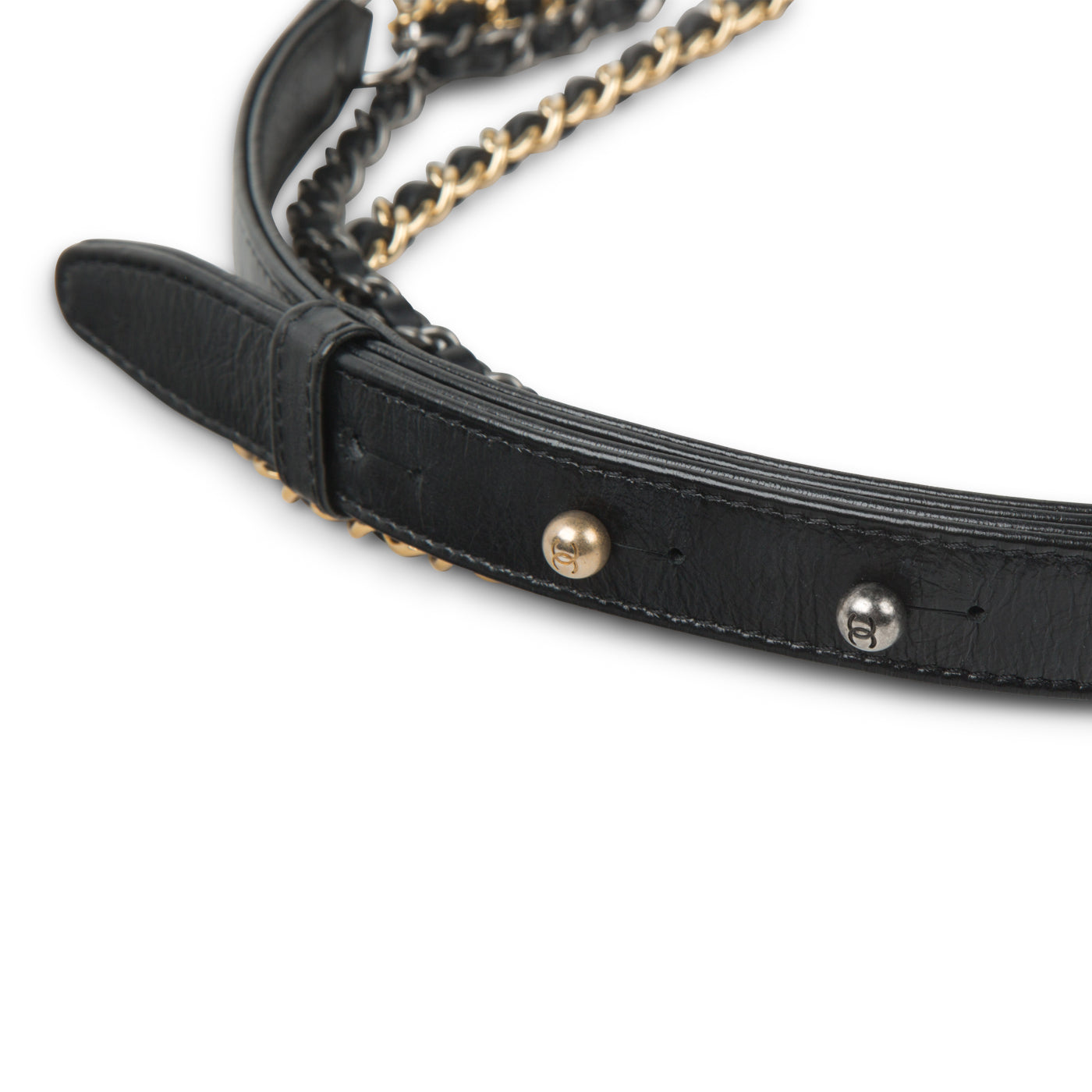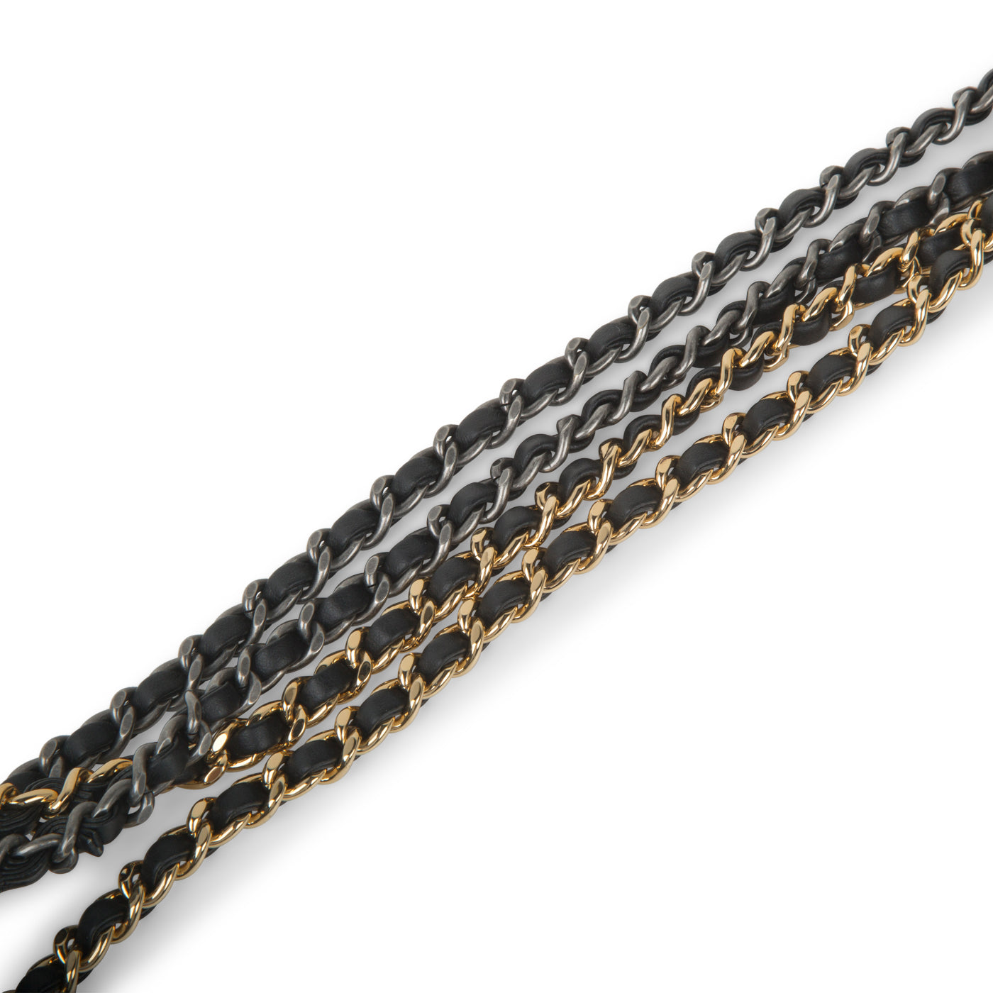 - Gold-tone, silver-tone and ruthenium interwoven chain / leather straps