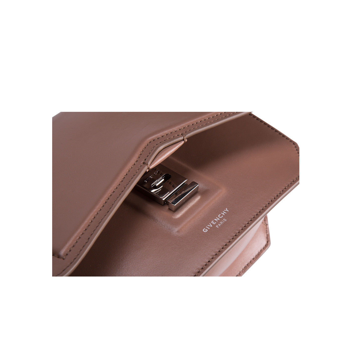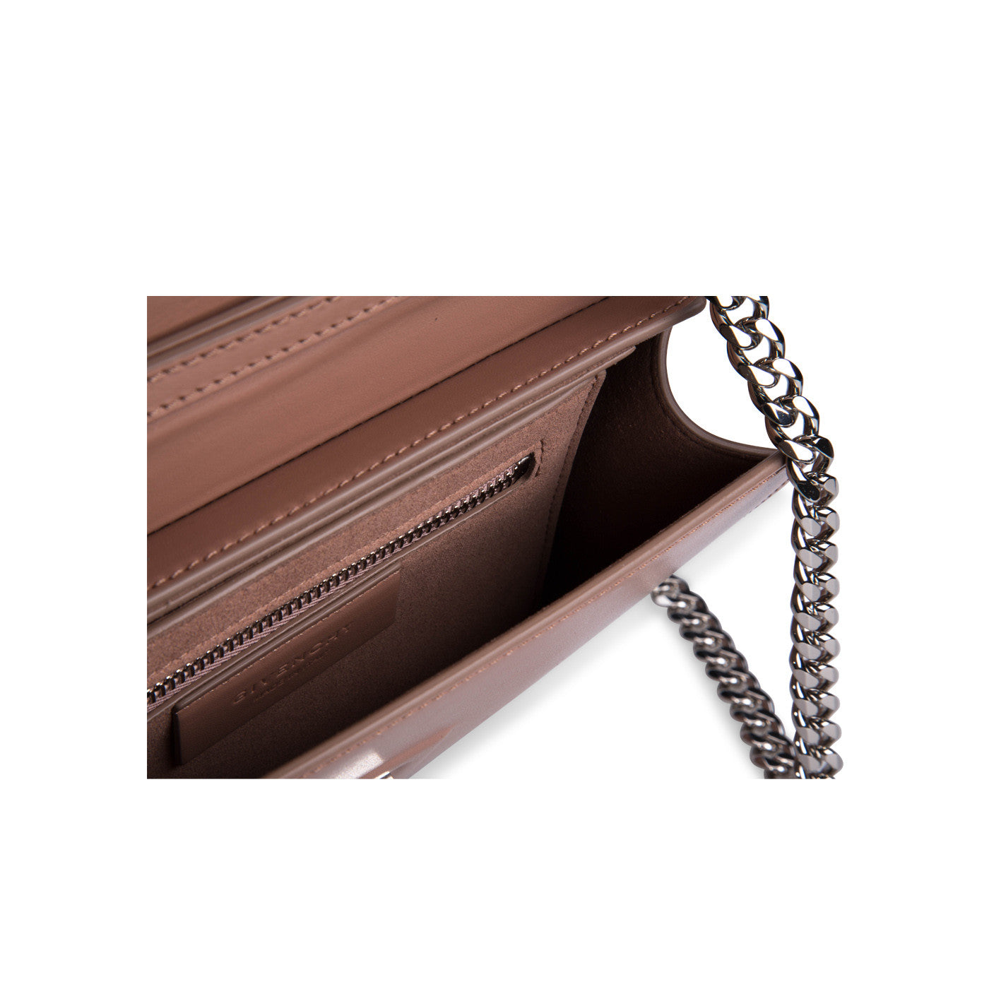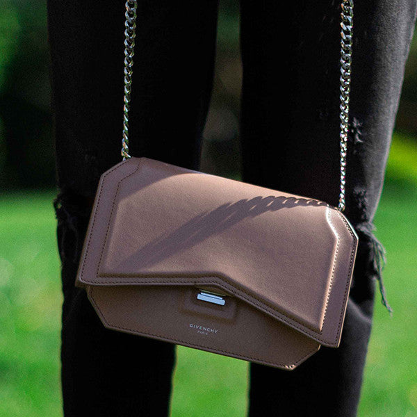 Famous for their geometric shapes, Givenchy's 'Bow Cut' shoulder bag is designed with an angular, bow-inspired silhouette. The strap is detachable through the buckle and loops under the bag's top flap, allowing you to wear this edgy piece as a sleek clutch. The pale hues used for this piece make it the perfect accessory for your SS17 wardrobe.