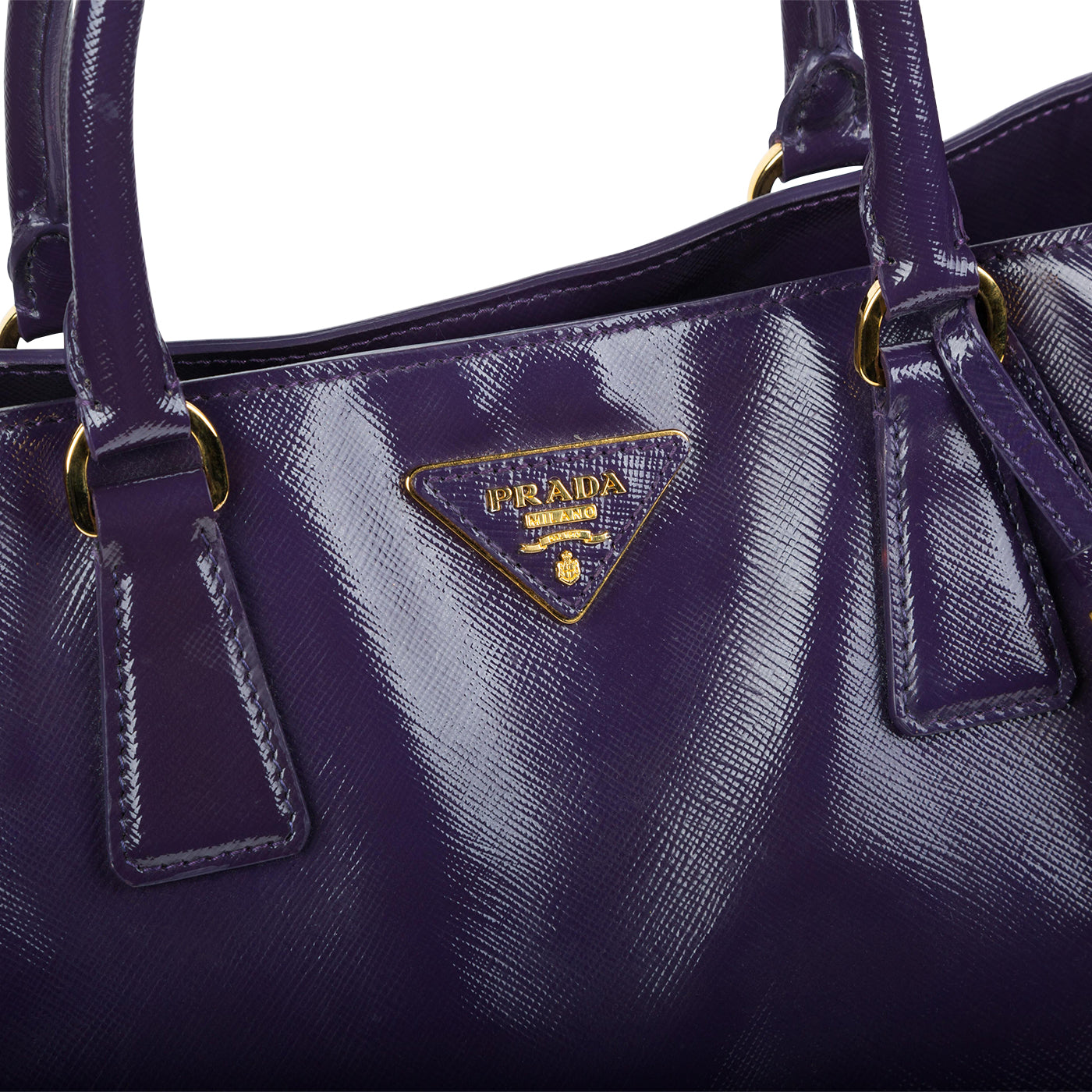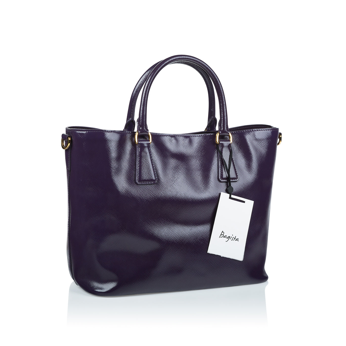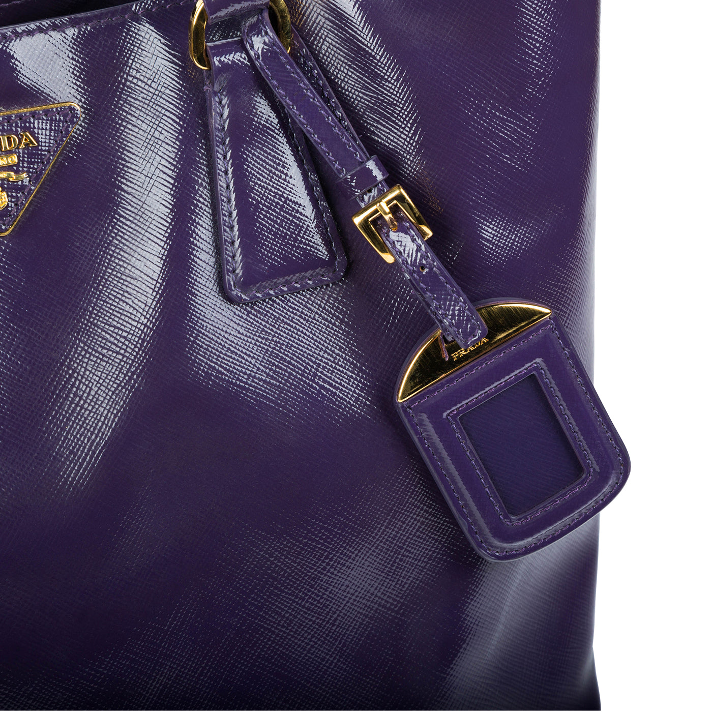 Stylish Prada Saffiano leather tote bag in dark purple. Featuring double top handles, single adjustable and detachable shoulder strap and the Prada metal triangle logo on the front. The spacious interior compartment gives enough space for all of your essentials.