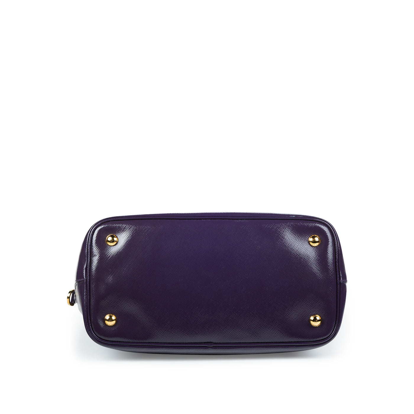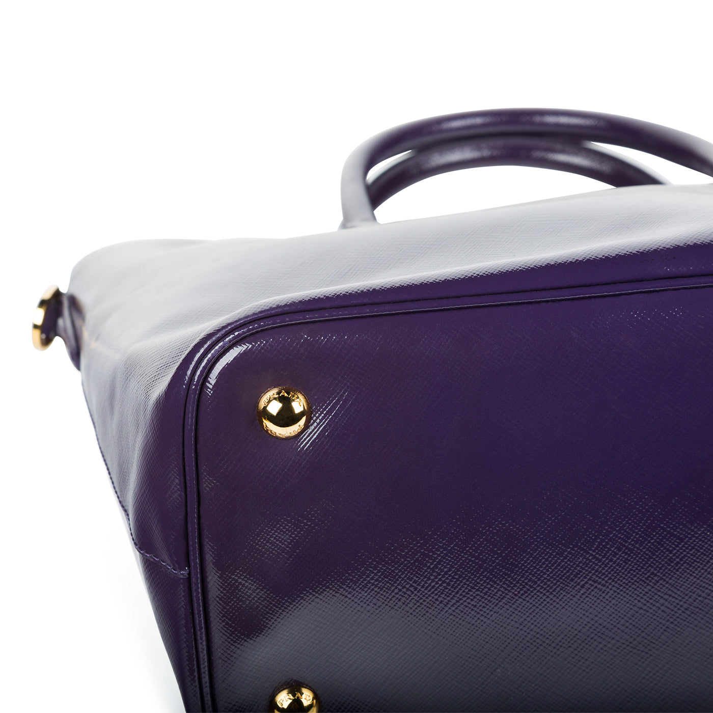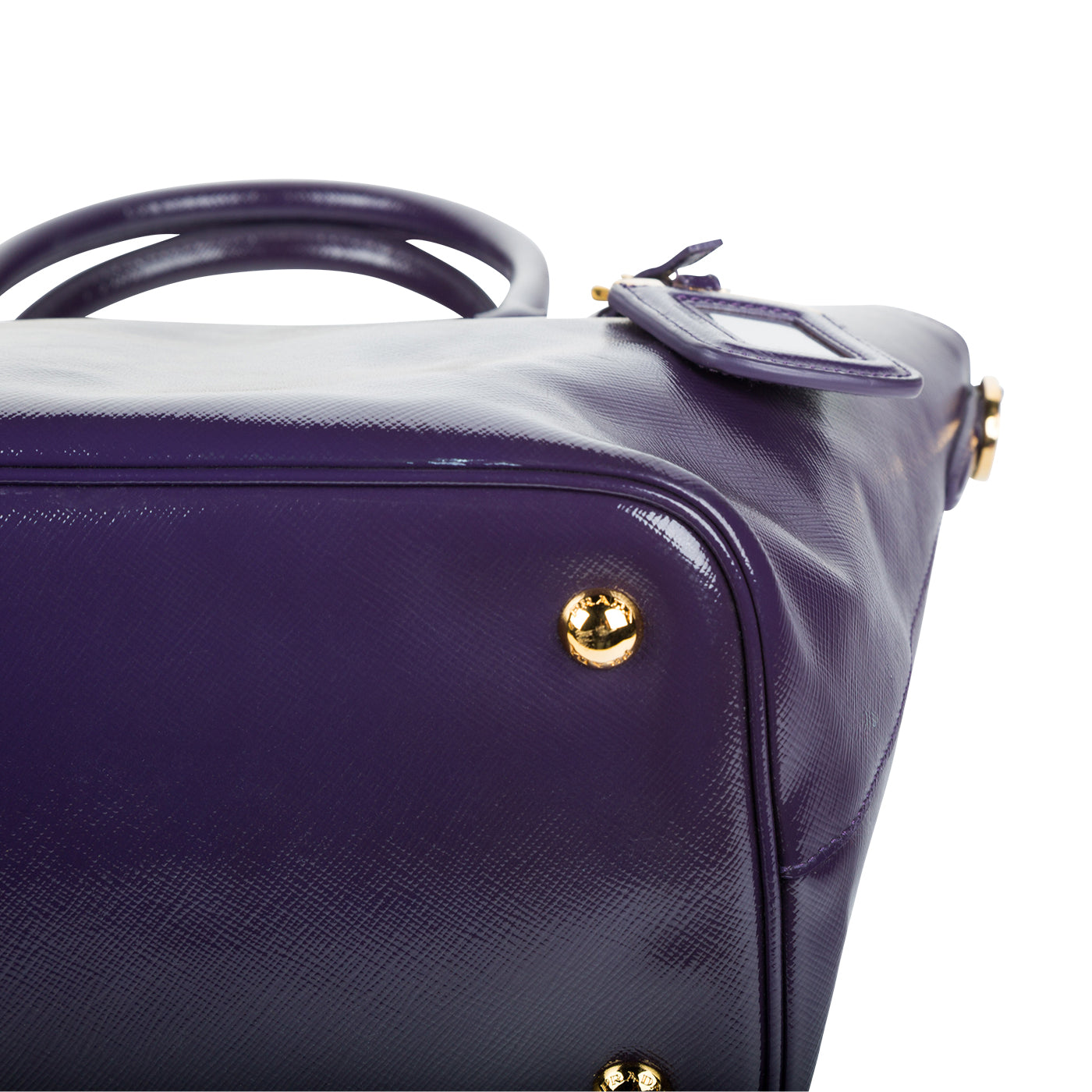 Stylish Prada Saffiano leather tote bag in dark purple. Featuring double top handles, single adjustable and detachable shoulder strap and the Prada metal triangle logo on the front. The spacious interior compartment gives enough space for all of your essentials.