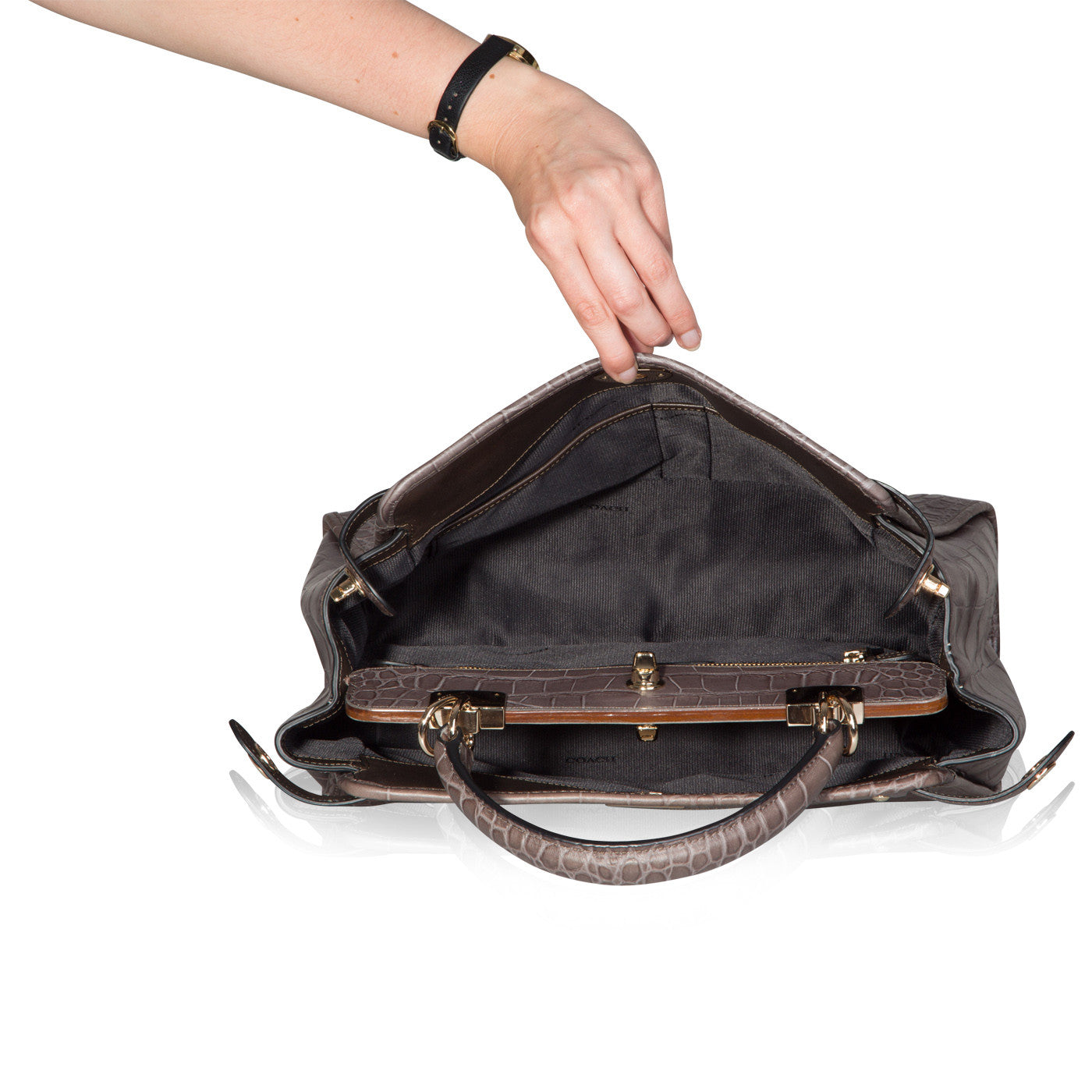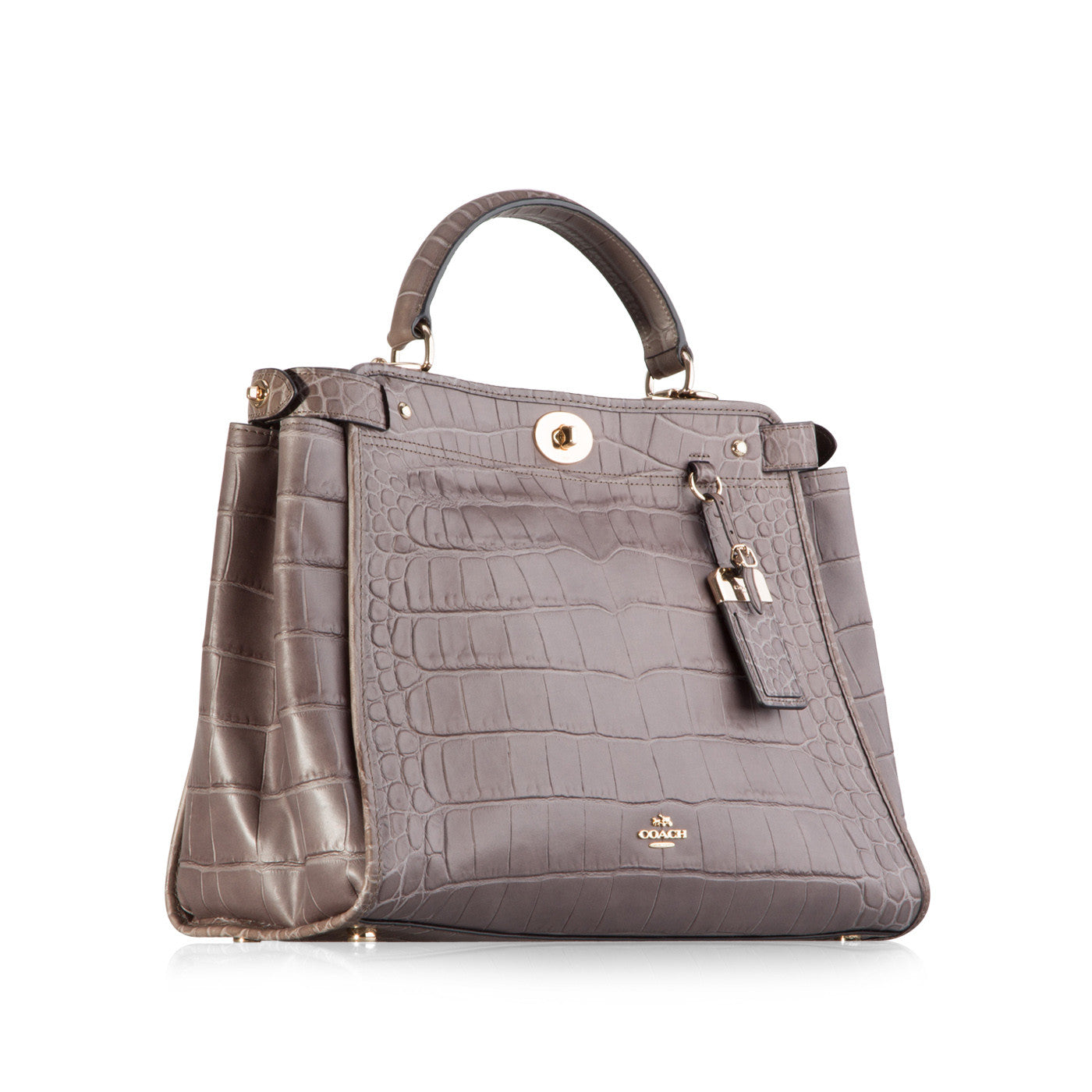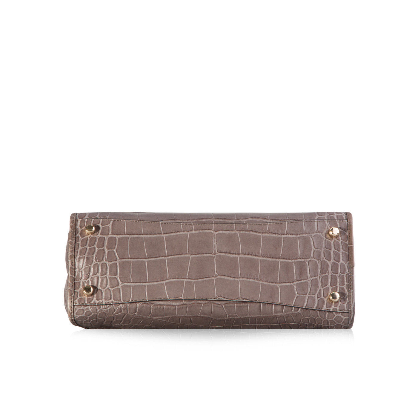 Quietly luxurious in leather with highly textured crocodile embossing, the Gramercy satchel combines a feminine, structured shape with modern polish.