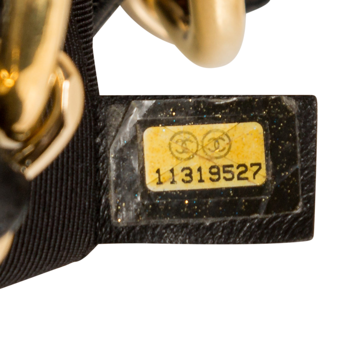 - Chanel embossed leather logo tag