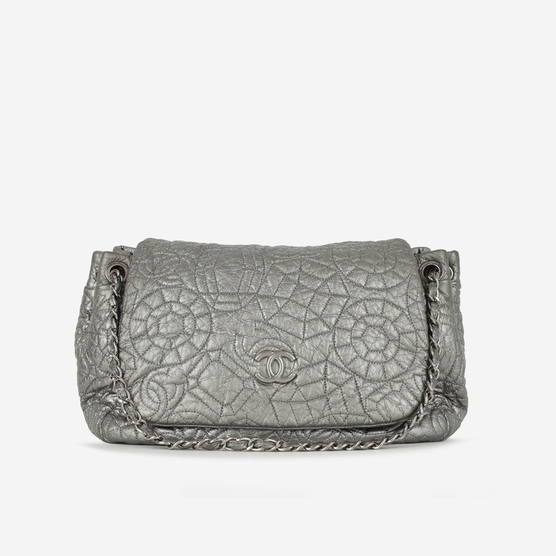 Redefines luxury with a bold, modern twist on a classic design. This statement piece combines the iconic Chanel flap bag silhouette with an edgy, contemporary vinyl finish, offering a perfect balance of high-fashion appeal and everyday practicality.