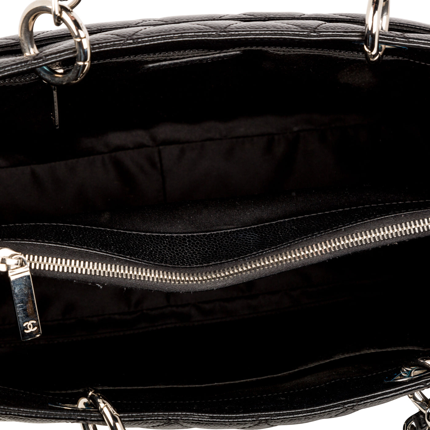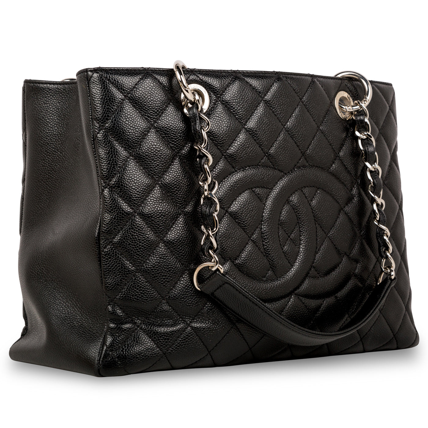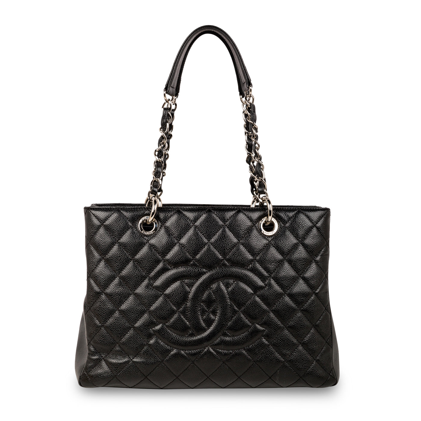 Chanel presents one of its most exclusive and coveted handbags; the Grand Shopping Tote. The bag is presented in durable caviar leather and features the brand’s iconic quilted pattern alongside a large CC stitched logo. Its spacious interior features two open compartments separated by a middle zip pocket. A timeless piece that will never go out of style, the GST remains one of the most in-demand Chanel bags - despite unfortunately being discontinued in 2015. A classic handbag from the brand, the GST is that bag you'll use for any and every occasion. Going to work? Running errands? Dinner party with friends? Travelling? The GST is the ideal companion to have by your side. Sleek, stylish and sophisticated, the GST is a bag you'll have forever and one that you'll never fall out of love with. A well-worthy investment and a true must-have in any luxury handbag collection.