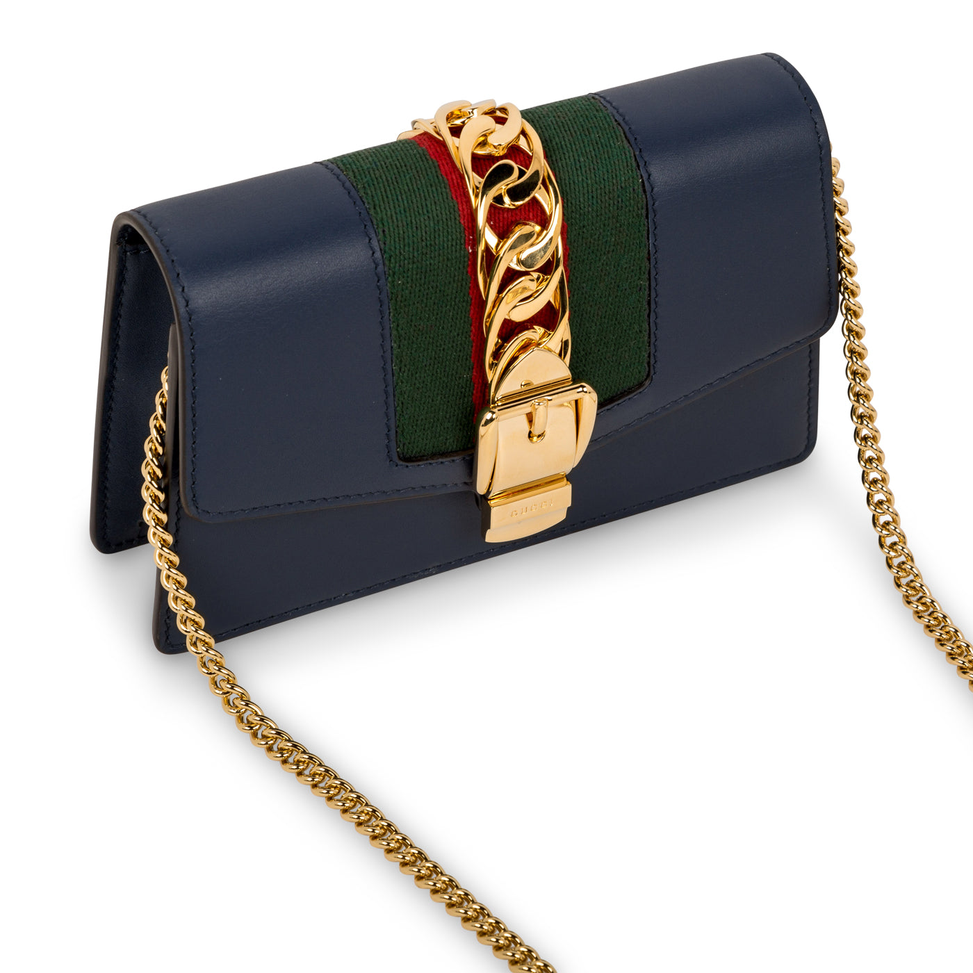 The Gucci Sylvie is one of those bags that became a classic the moment it landed in stores. The red hue is complimented by the brand's signature red and green striped ribbon handle and also features a removable leather shoulder strap ideal for cross-body usage. This stunning bag is an absolute necessity, especially during holiday season. With a gold buckle chain prominently depicted on the front flap, the Sylvie is luxurious, glamorous and the perfect compliment to any neutral-toned or monochromatic outfit. Whether you dress the Sylvie up or down, you can be sure this bright, bold piece is the ideal accessory for any occasion. Sleek, stylish, sophisticated, but youthful and playful at the same time, the Sylvie is a well-worthy addition to any luxury handbag collection.