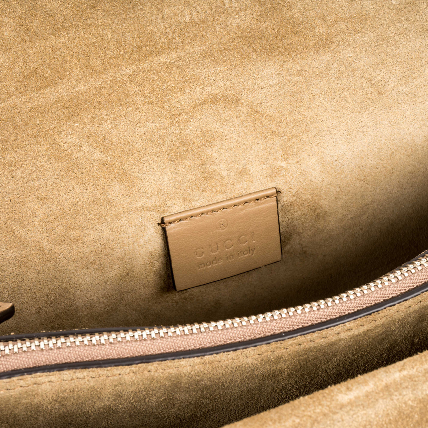 - Gucci embossed leather logo tag