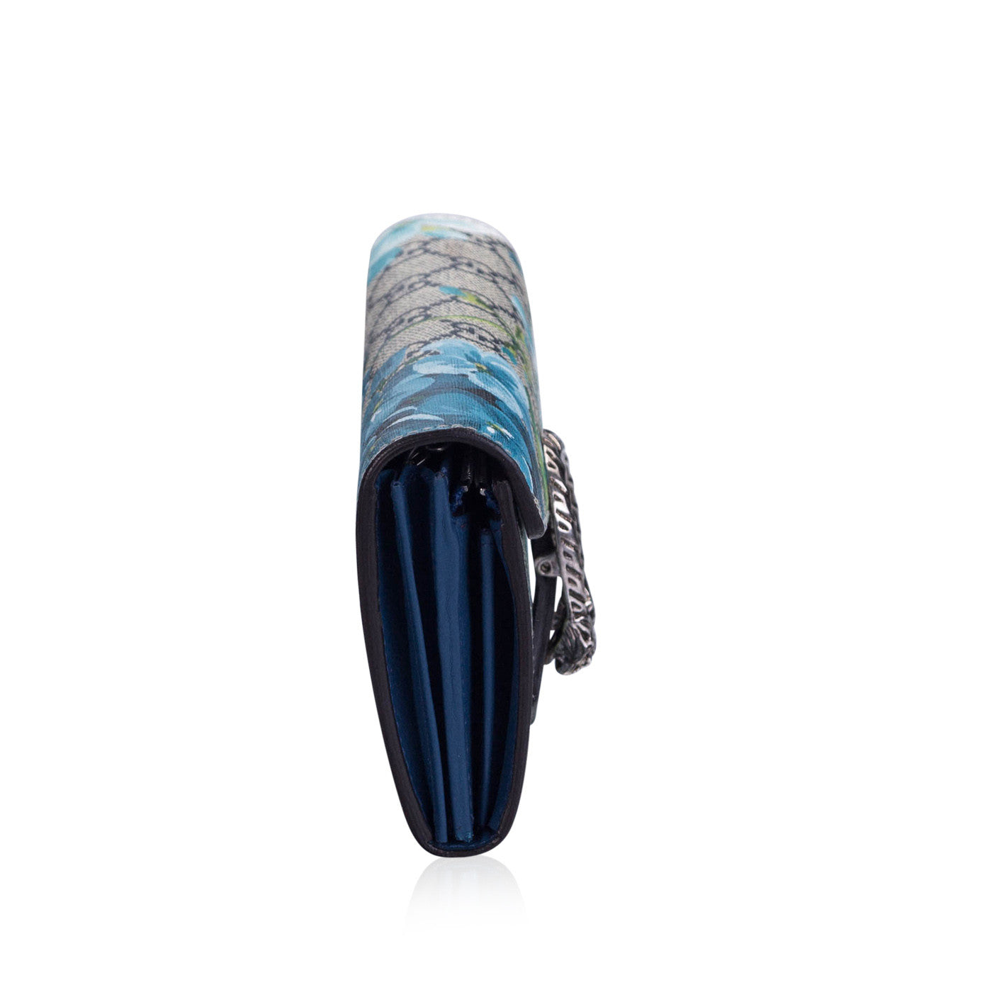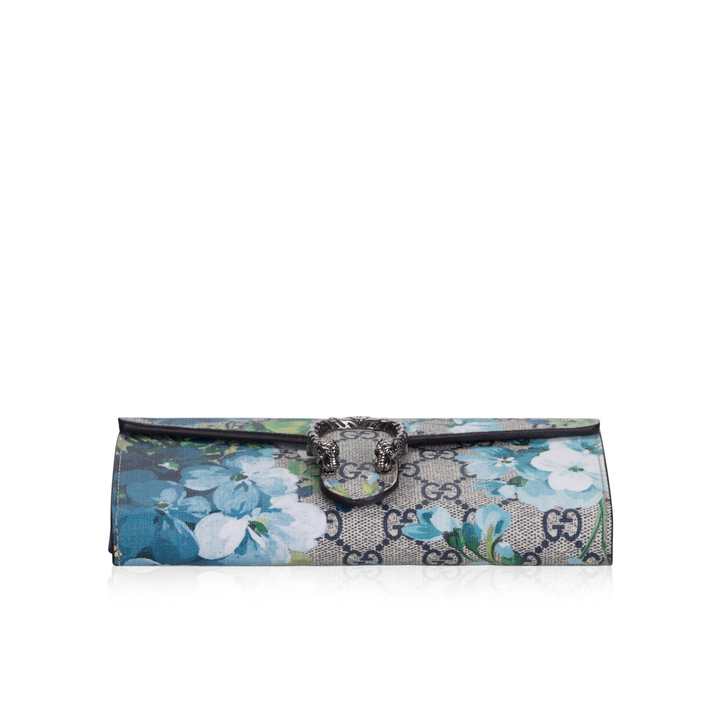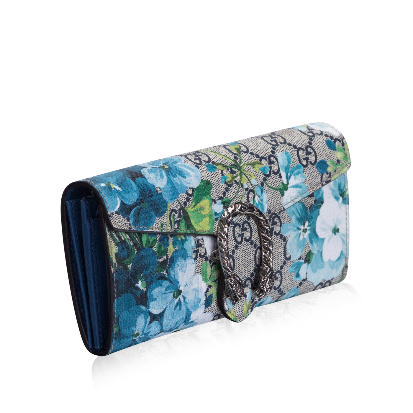 This Gucci mini chain bag is the perfect summer accessory. It features a stunning iconic GG blooms printed canvas exterior, with antique silver hardware. The tiger headed closure is inspired by the Greek God Dionysus, which features heavily throughout their current accessories collection. With a detachable chain strap, it can be worn as a clutch alongside your spring or summer dresses for an easy chic look.