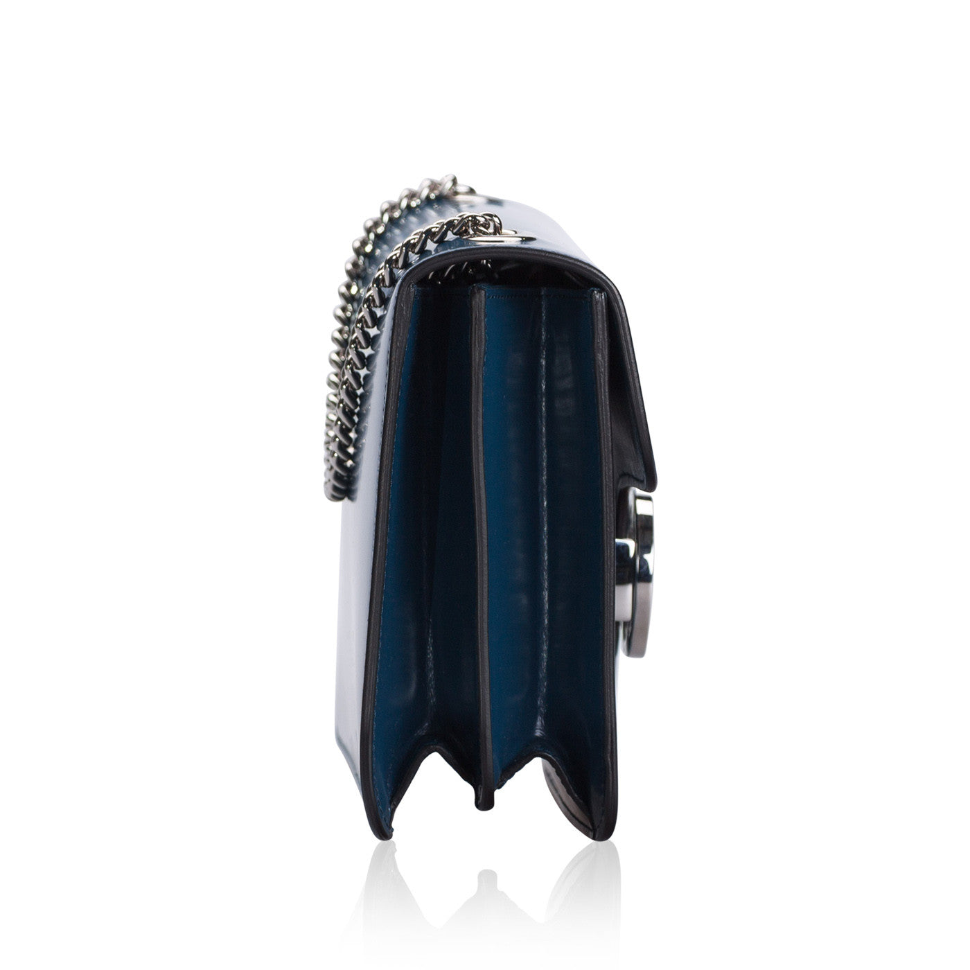 The mini shoulder-bag is the perfect addition to anyone's wardrobe for absolutely any season - it's shouty, yet elegant interlocking GG closure beautifully contrasts the smooth and supple Turquoise patent leather - which is exquisitely finished with masterfully hand-painted edges and noticeably manual stitching.